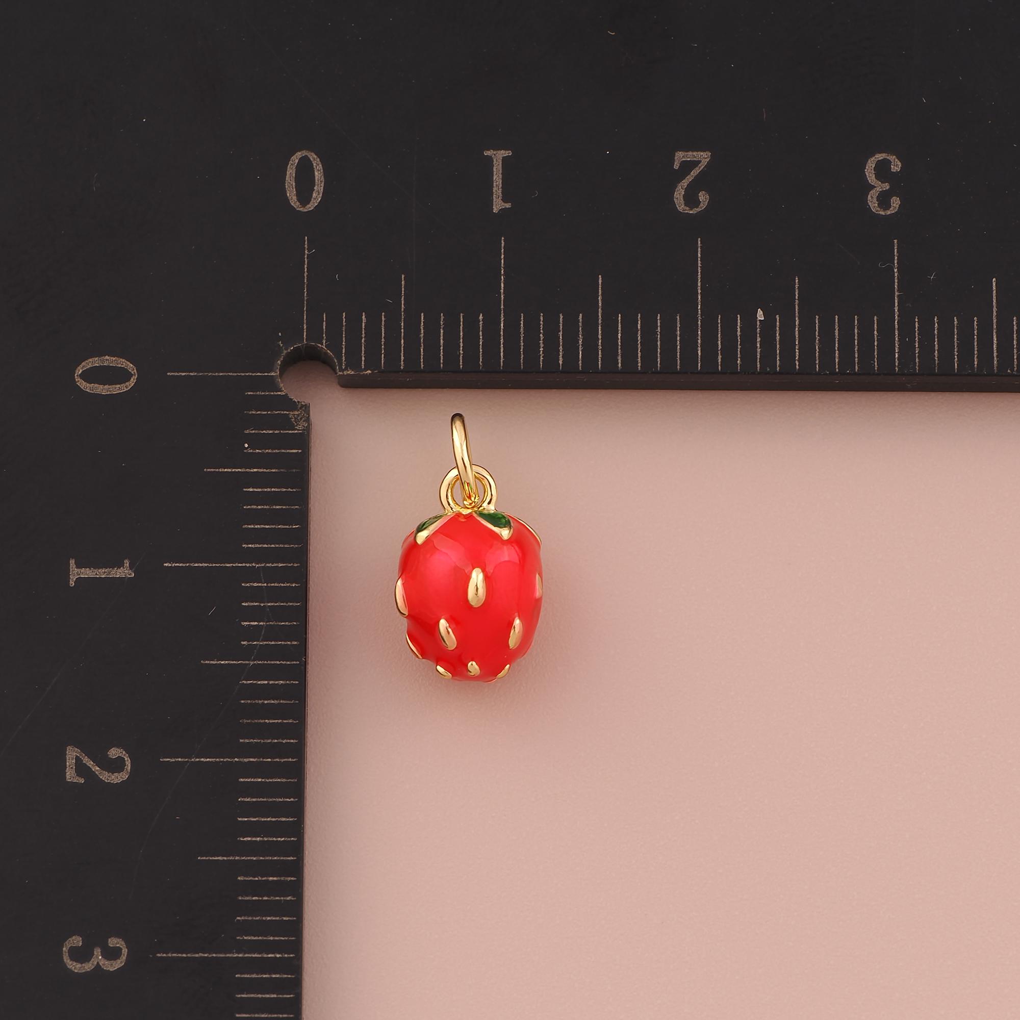 18K Gold Strawberry Charms,Enamel Minimalist Charms Pendants,Fruit Charm for DIY Jewelry Making Supply