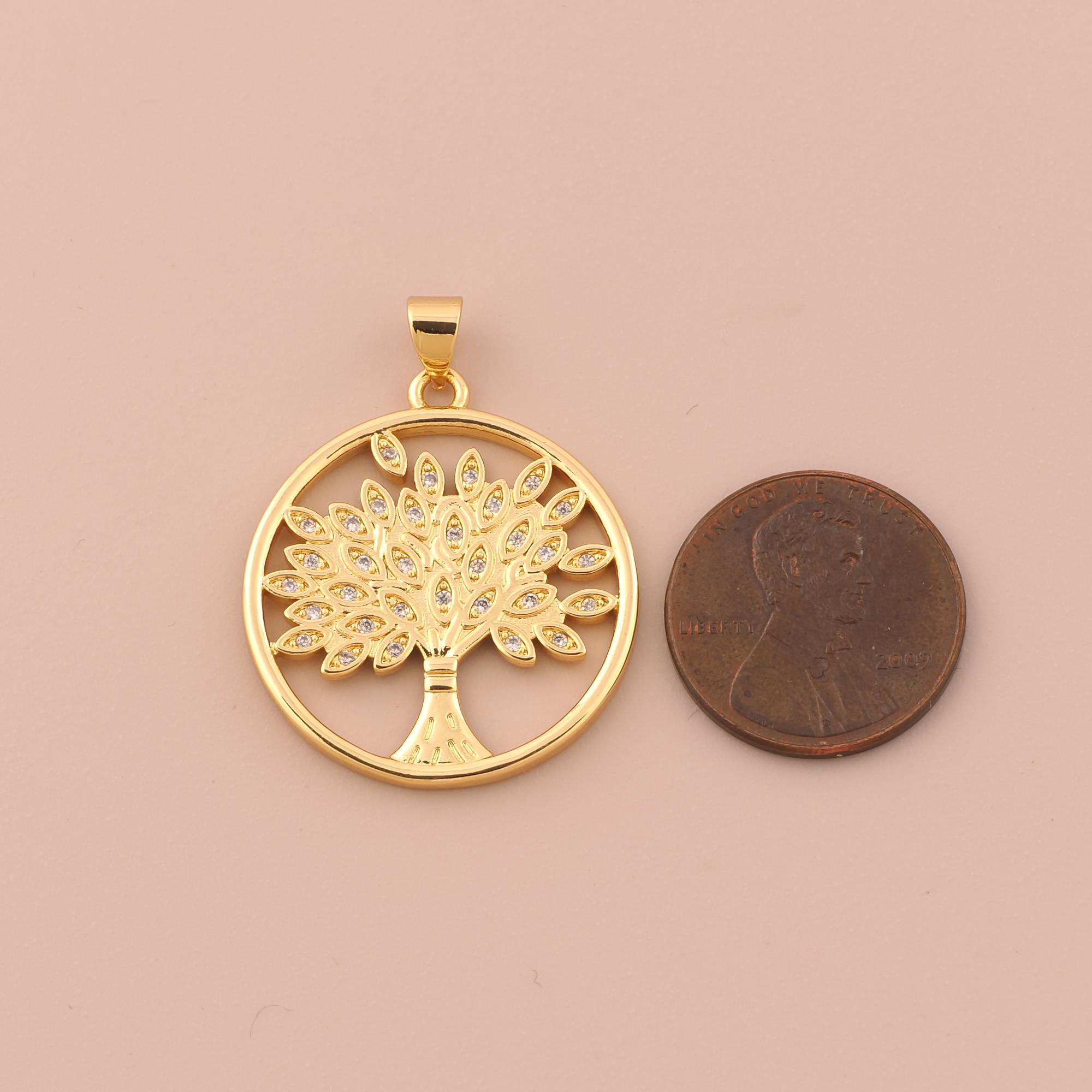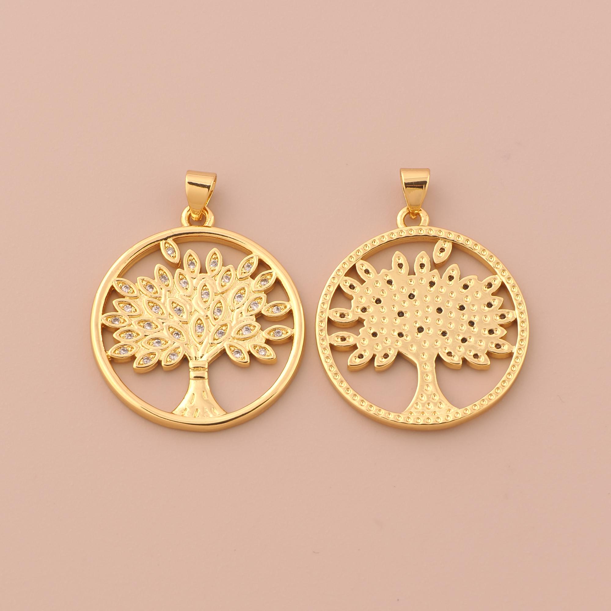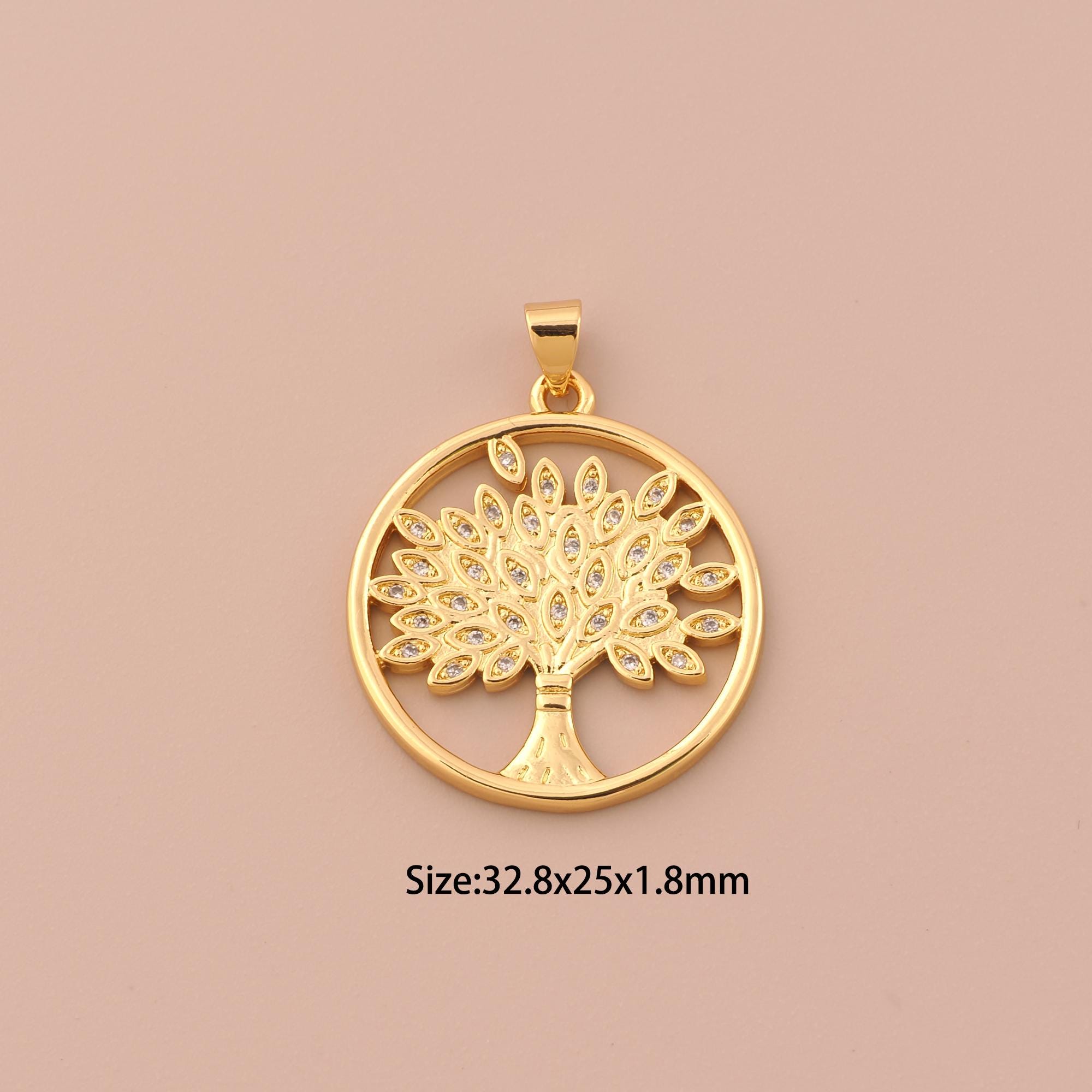 18K Gold Tree of Life Charms,CZ Pave Tree Charms Pendants,Tree of Life Charm for DIY Jewelry Making Supply