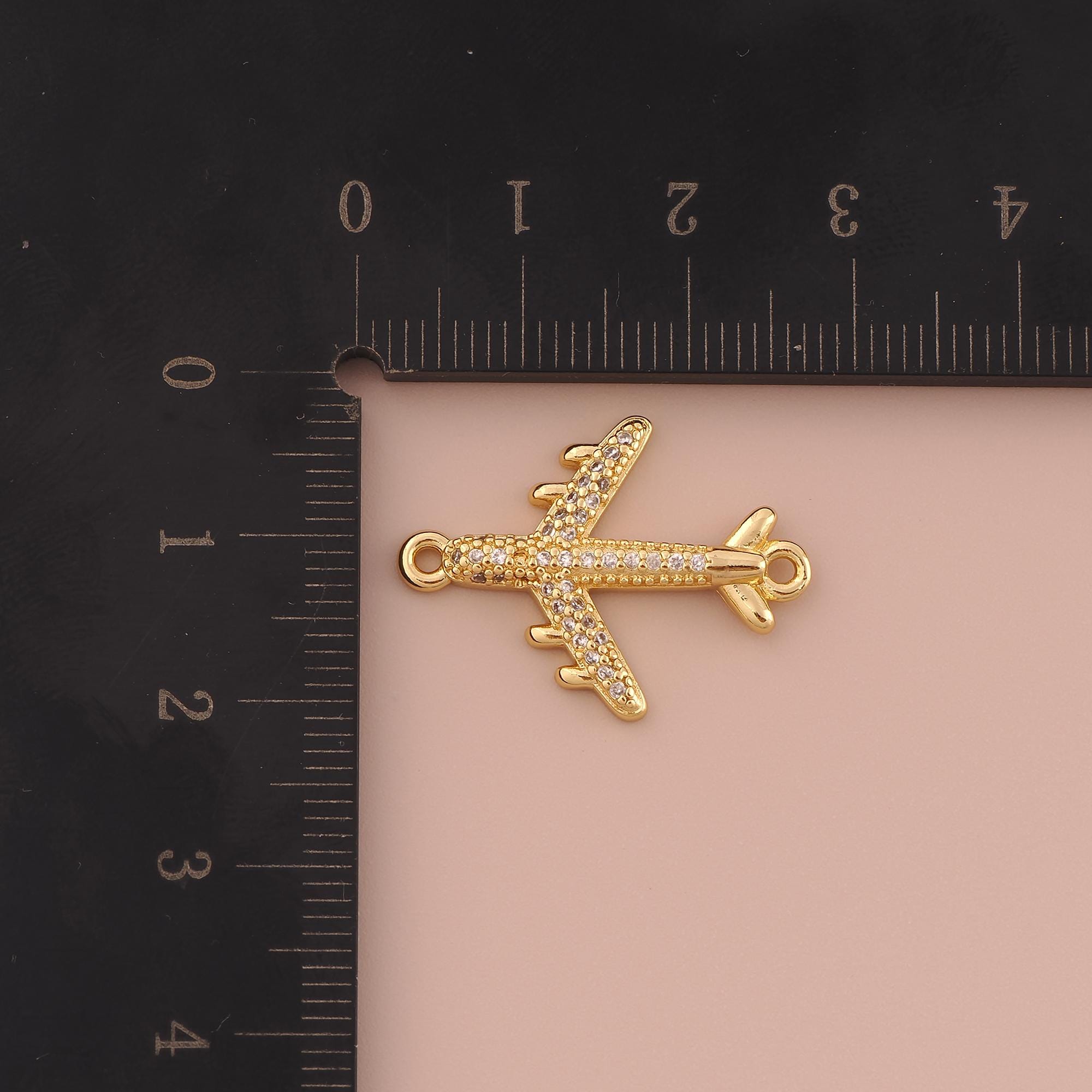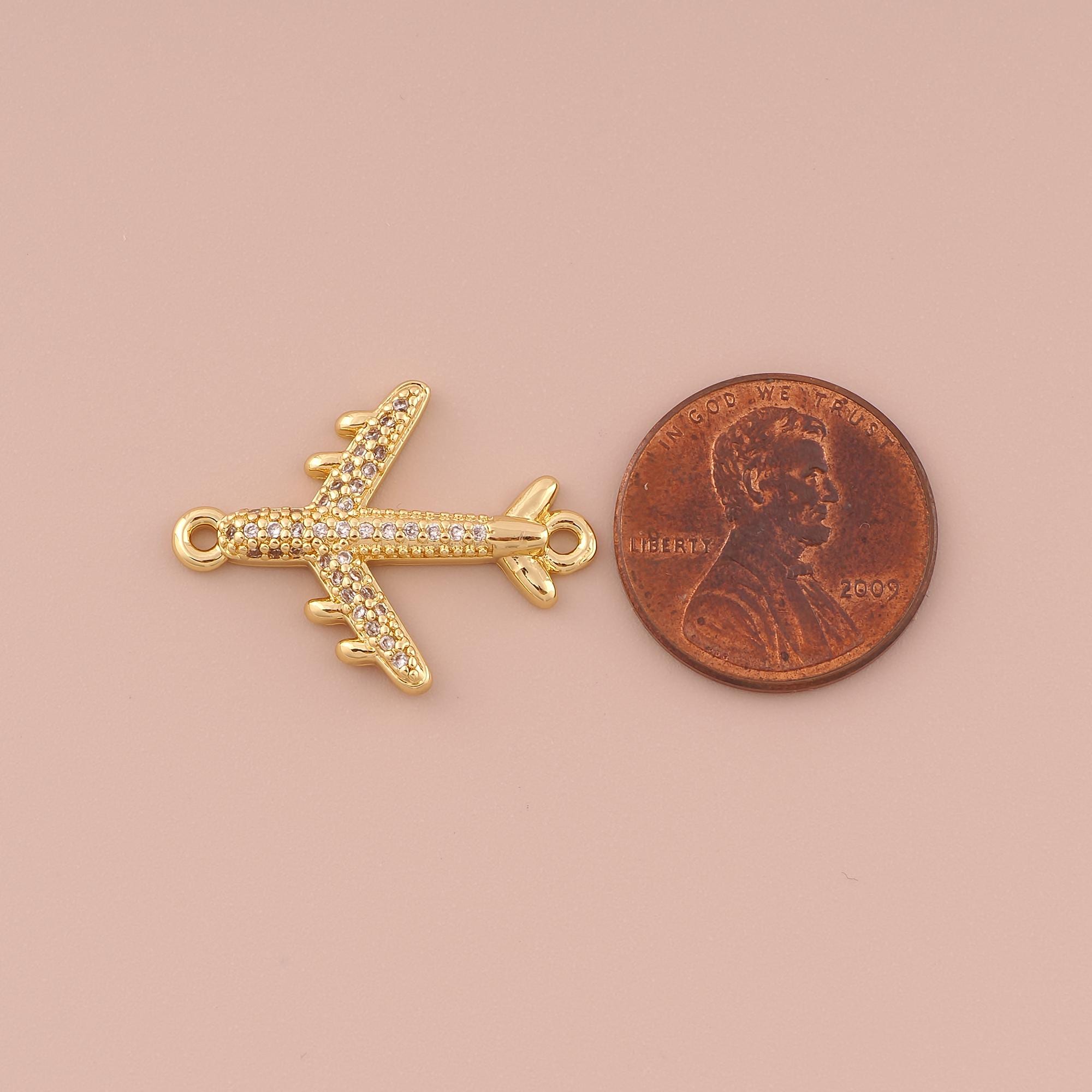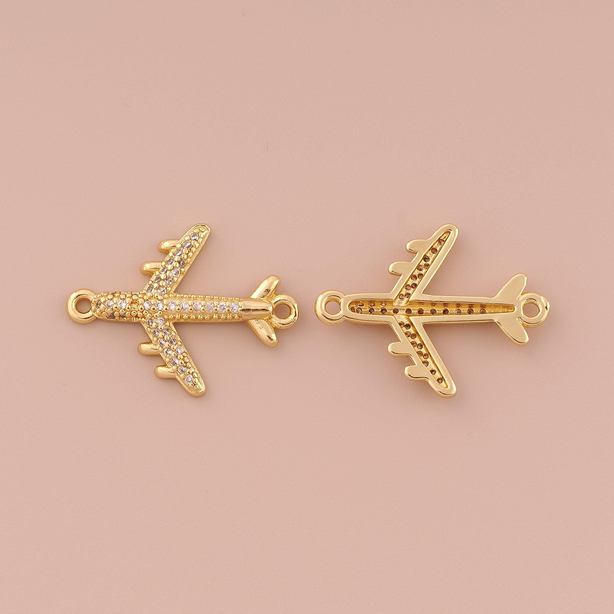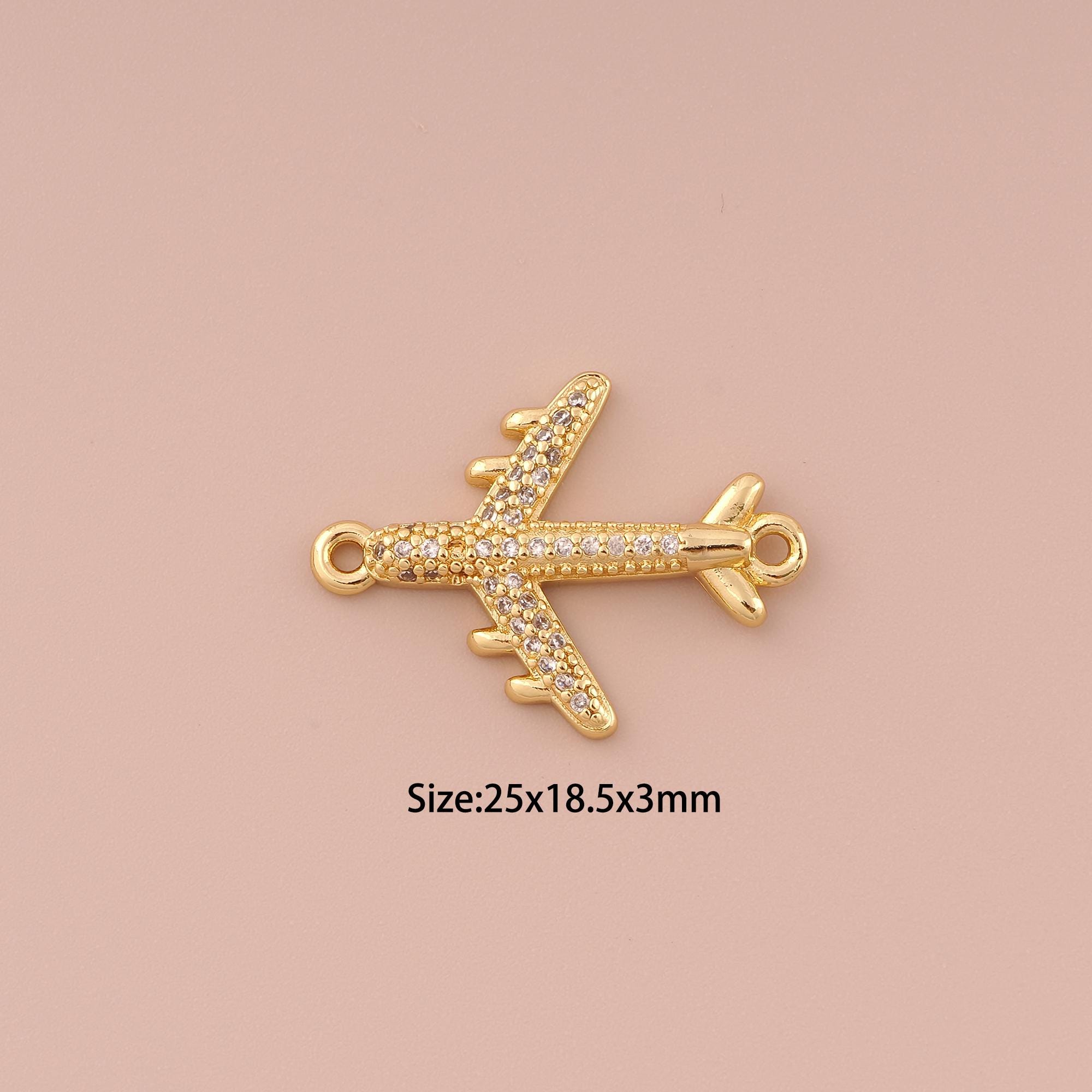 18K Gold Airplane Connector,CZ Pave Minimalist Connector Charms,Airplane Connector for DIY Jewelry Making Supply
