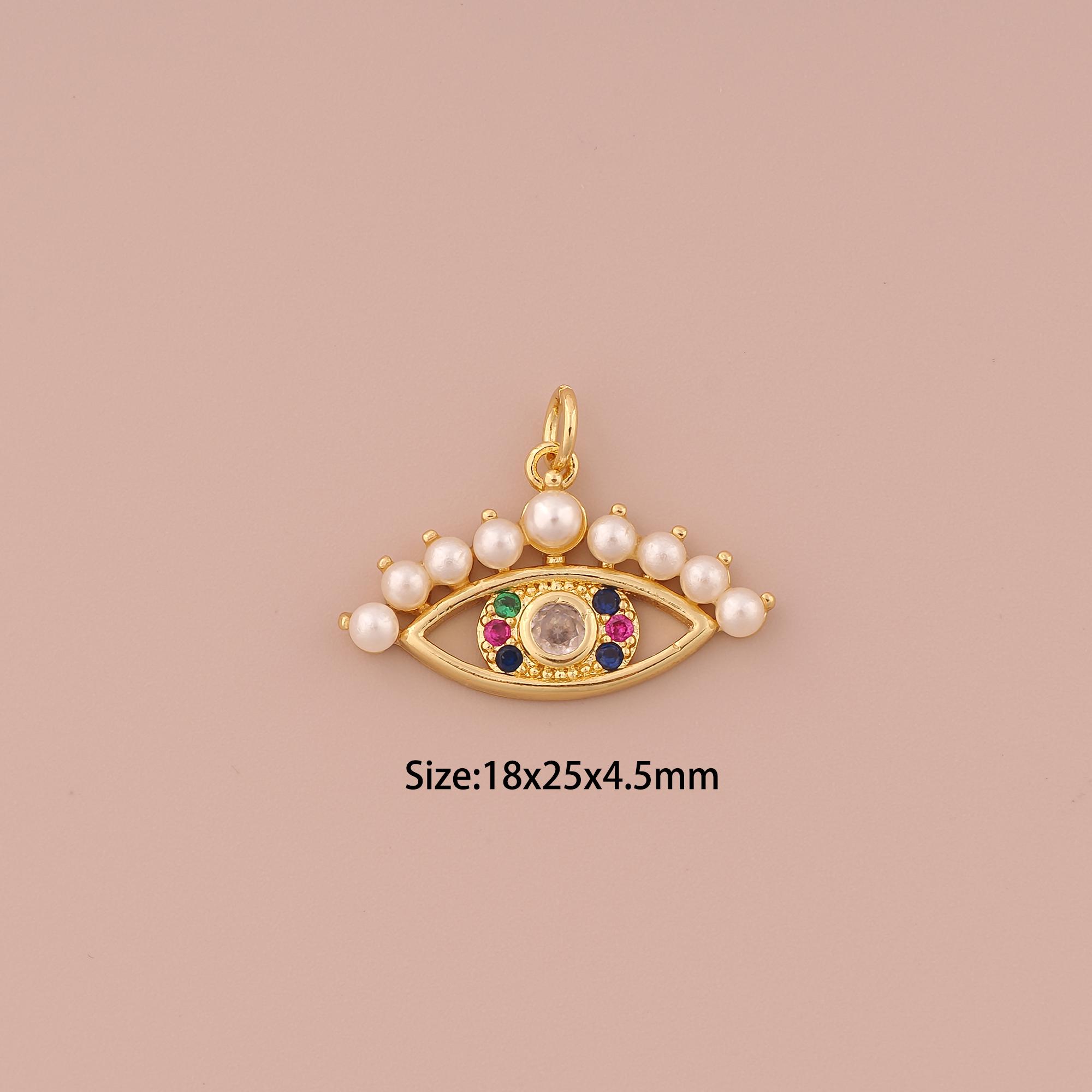 18K Gold Evil Eye Charms,CZ Pave Minimalist Charms Pendants,Devil Eye Charm for DIY Jewelry Making Supply