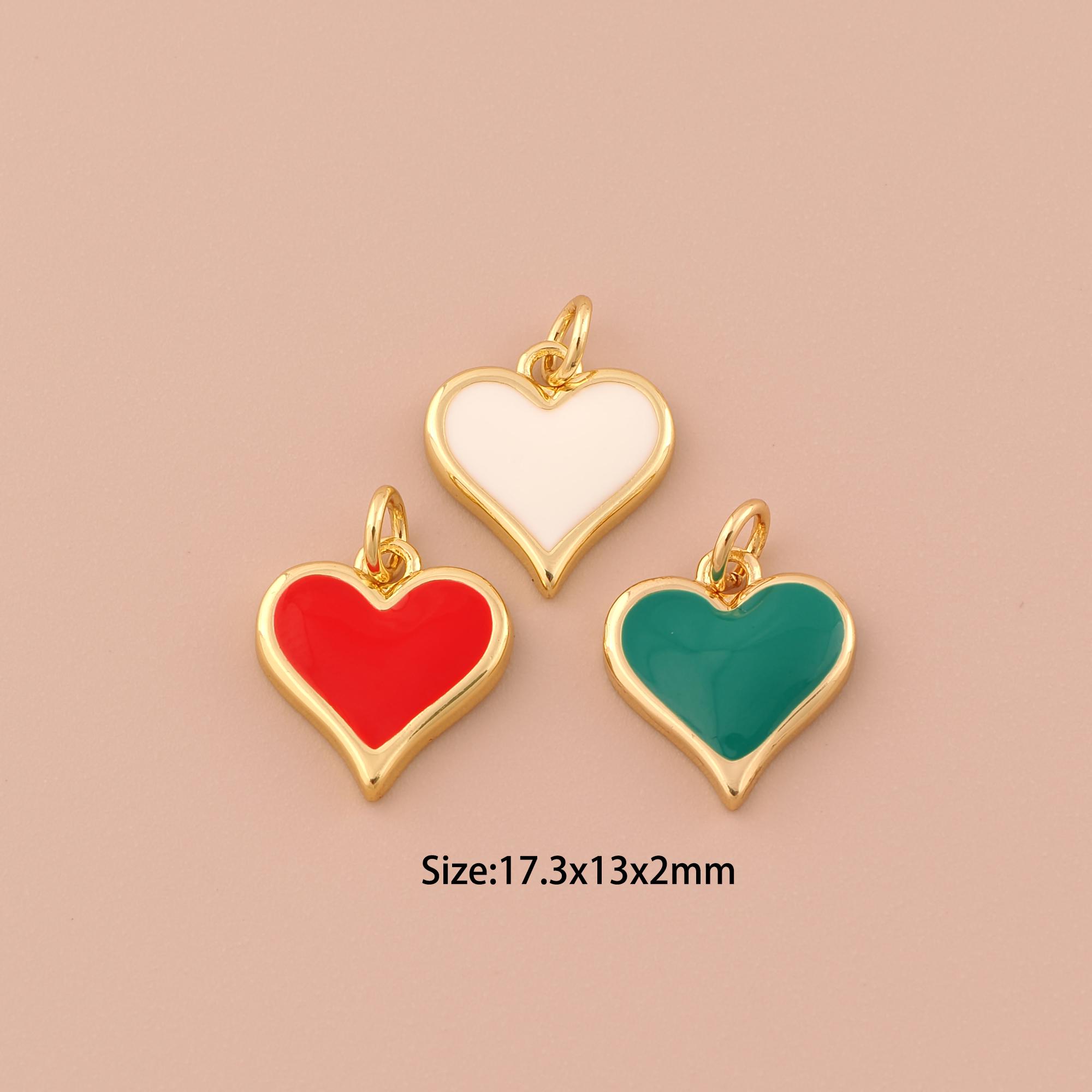 18K Gold Heart Charms,Minimalist Charms Pendants,Enamel Heart Charm for DIY Jewelry Making Supply