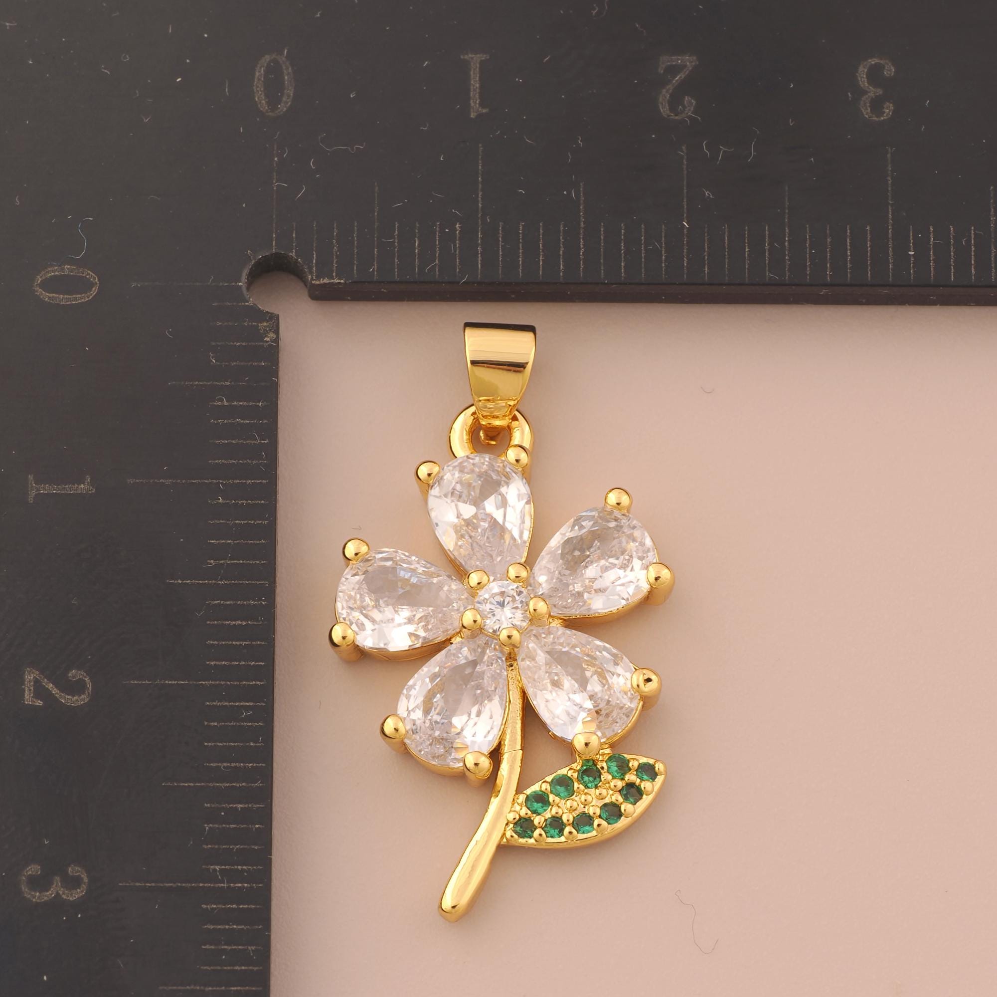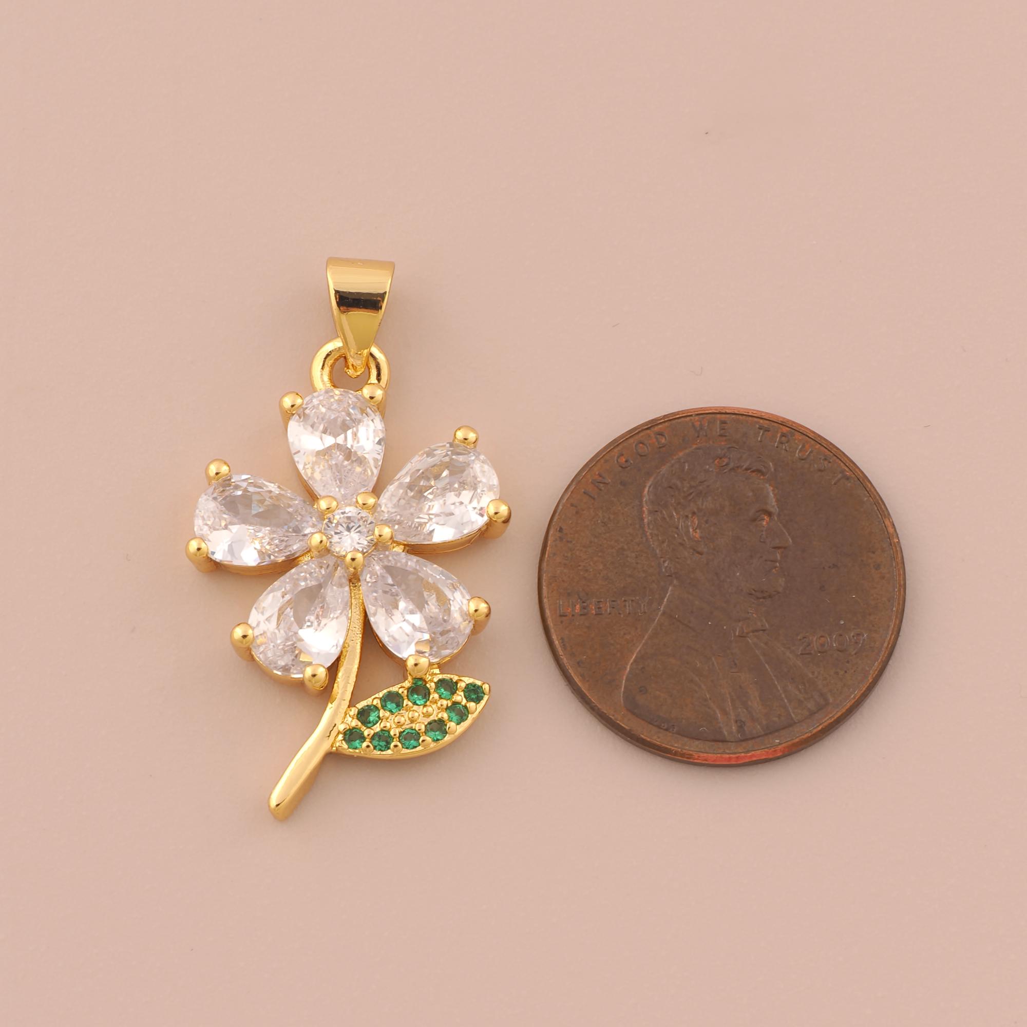 18K Gold Flower Charms,CZ Pave Plant Charms Pendants,Flower Charm for DIY Jewelry Making Supply