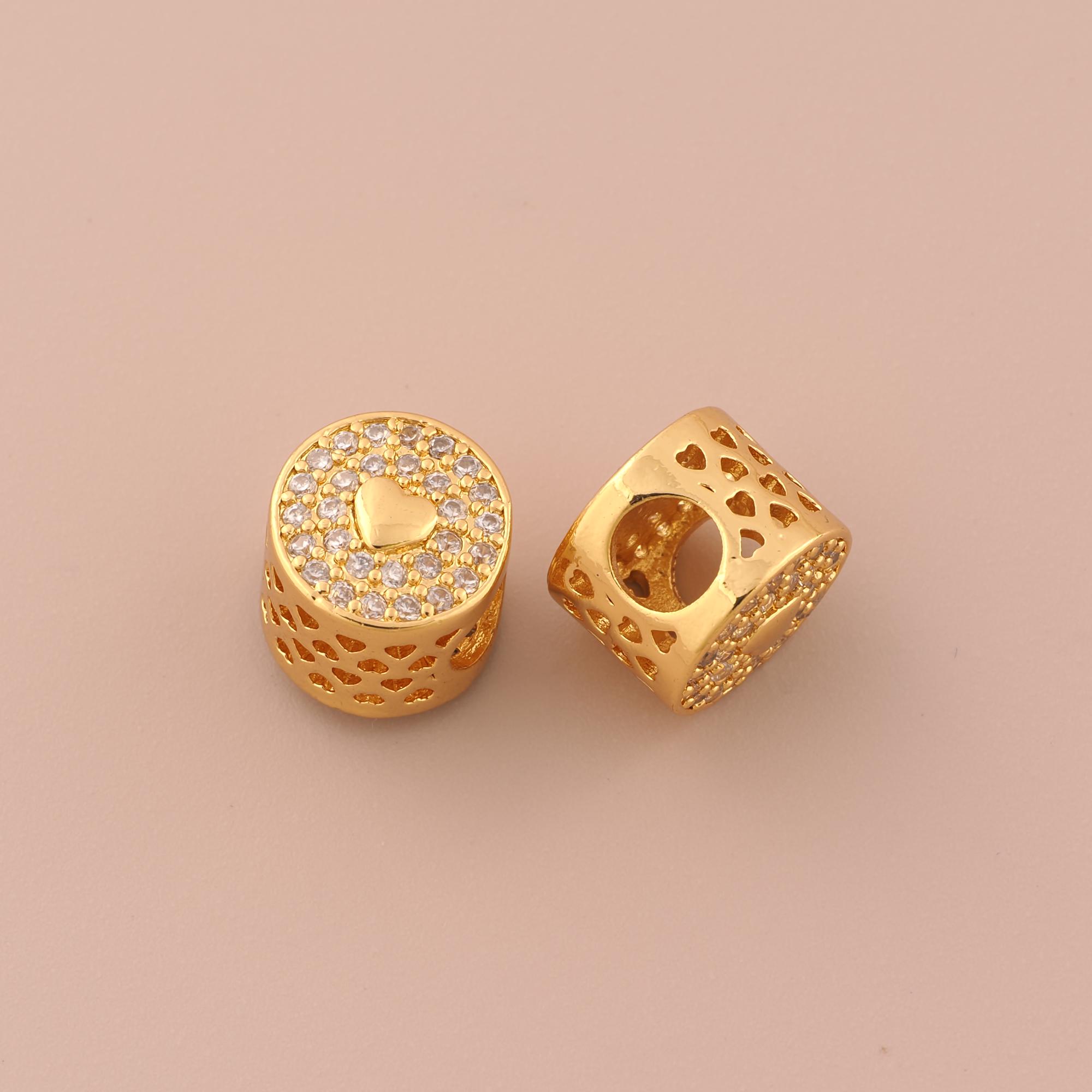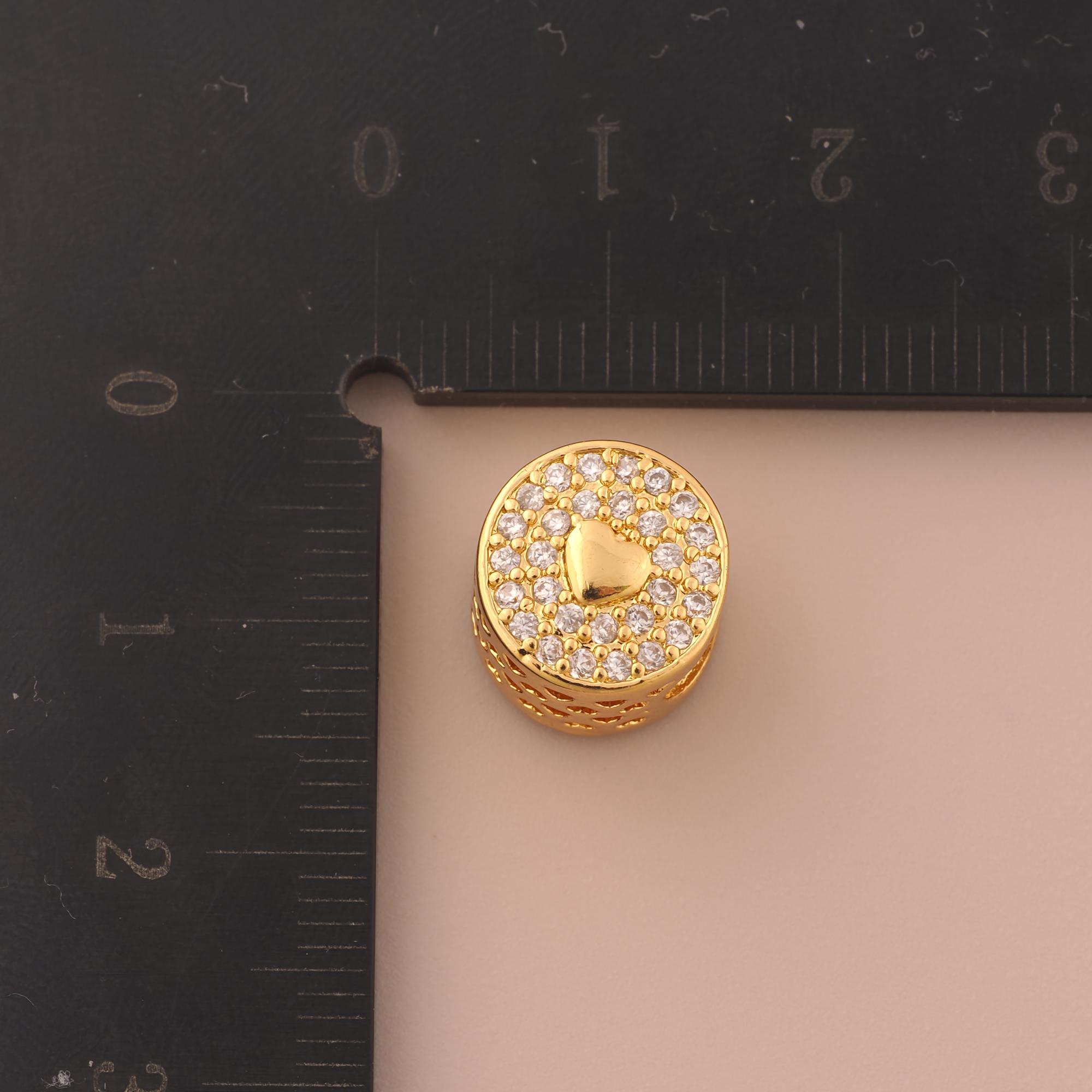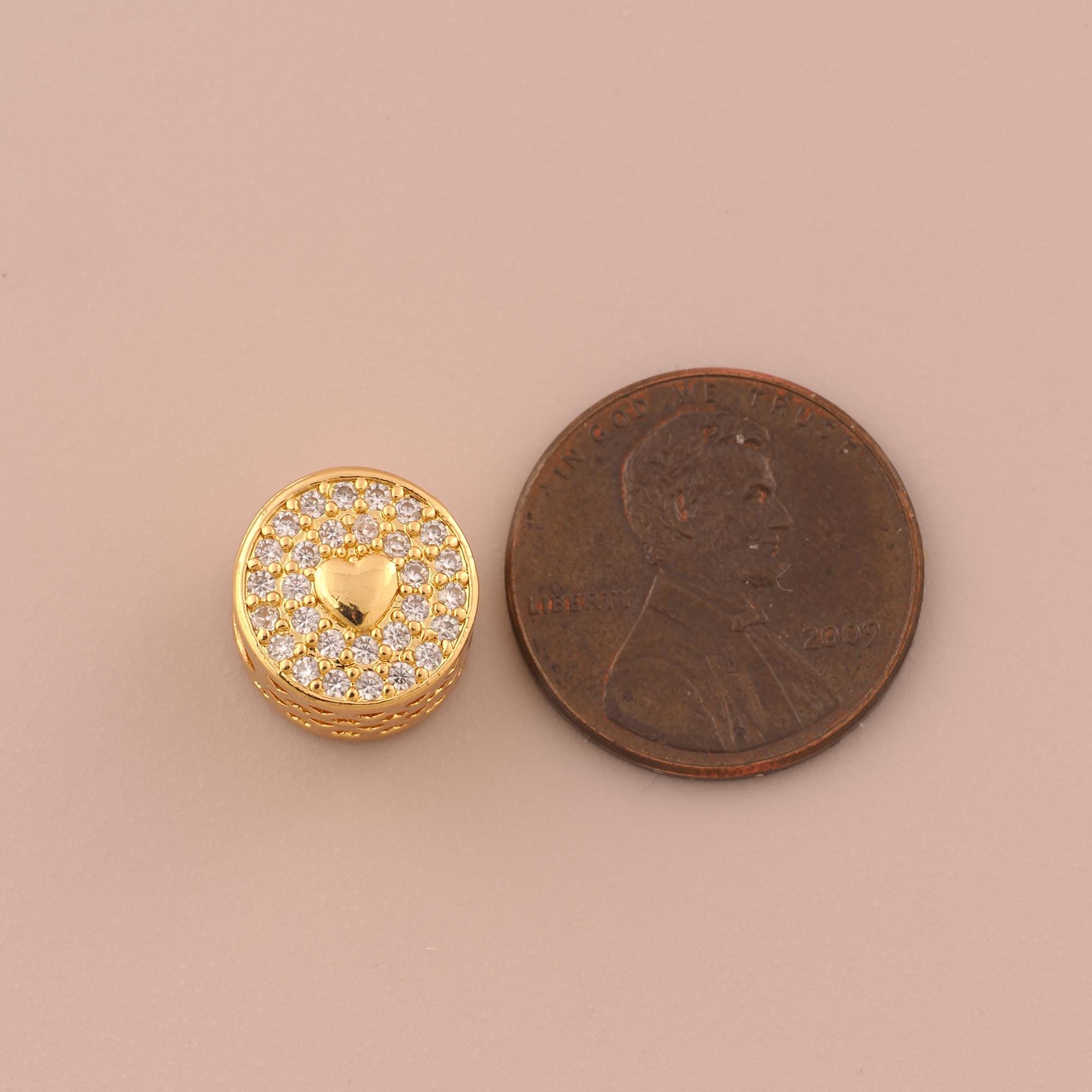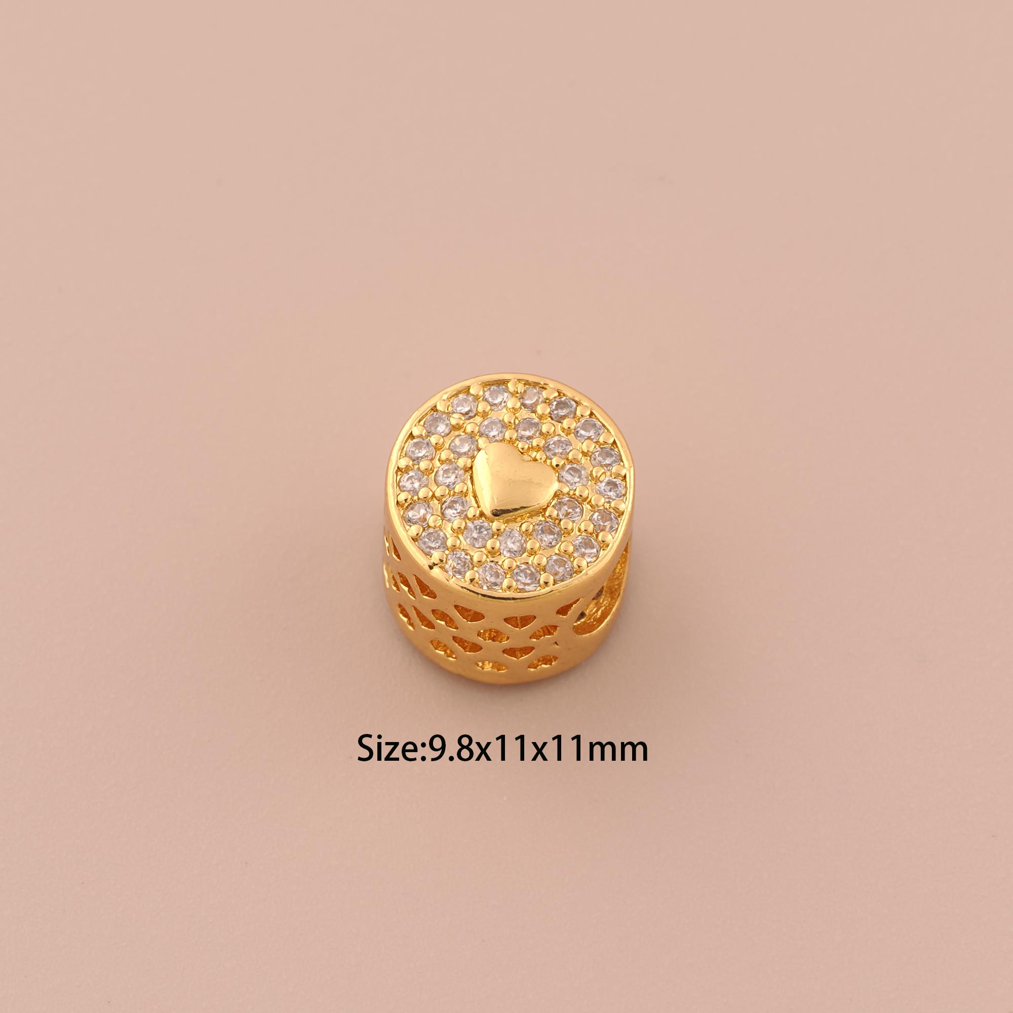 18K Gold Heart Spacer Bead,CZ Pave Round Bead,Round Bead for DIY Jewelry Making Supply