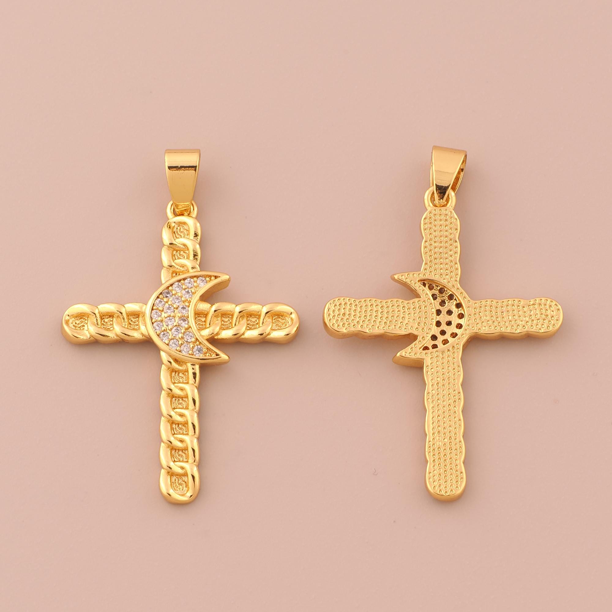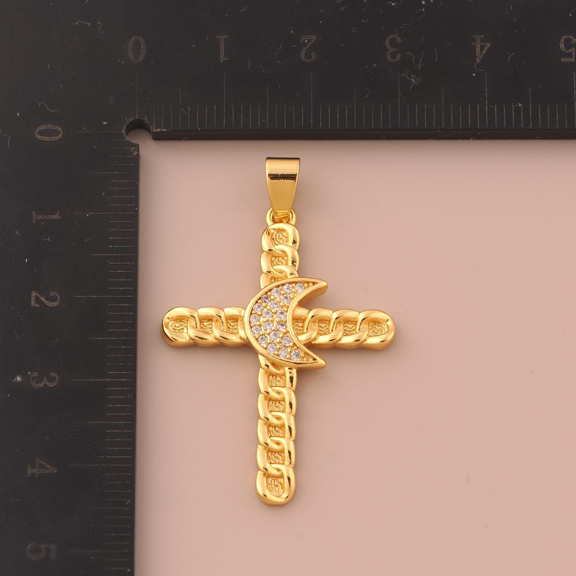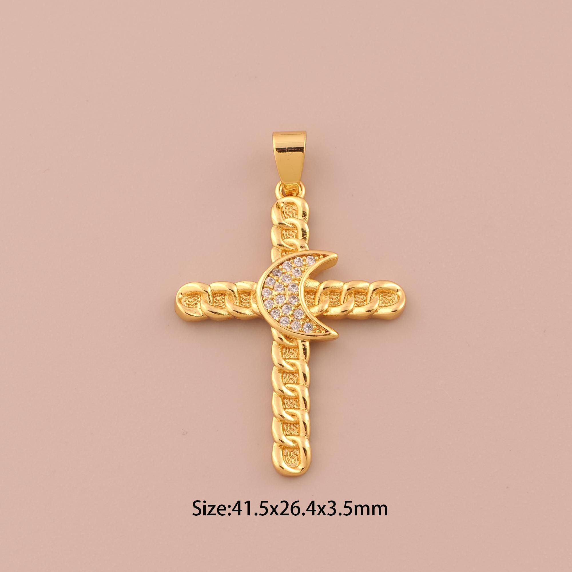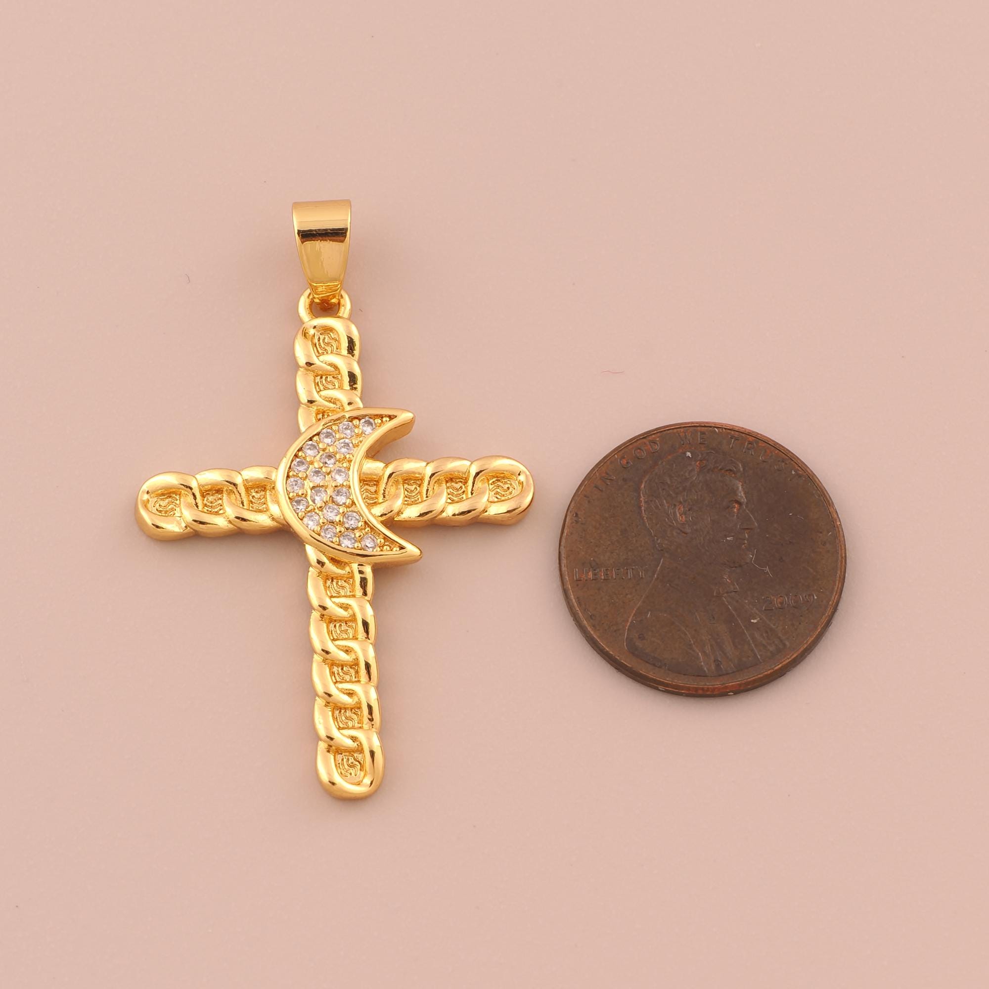 18K Gold Moon Charms,CZ Pave Cross Charms Pendants,Religious Charm for DIY Jewelry Making Supply