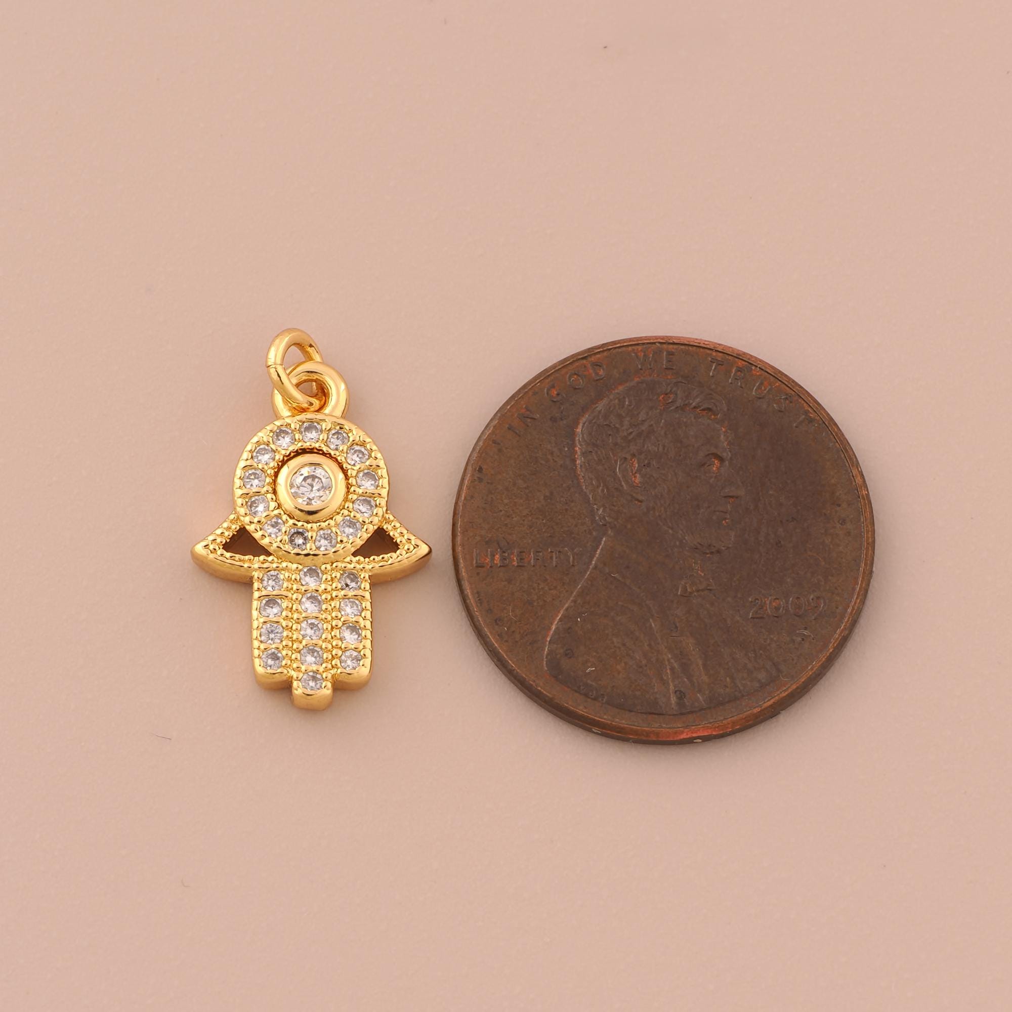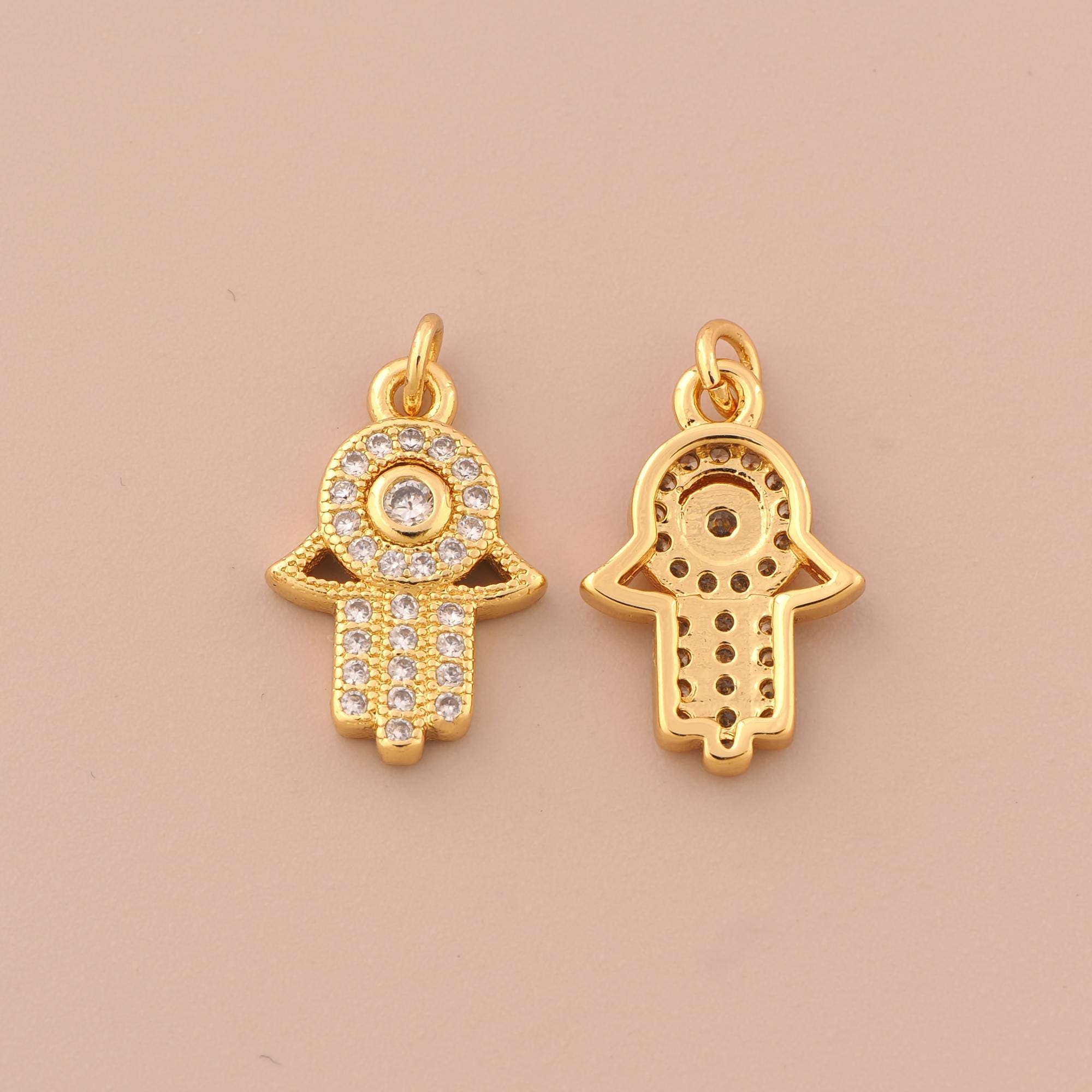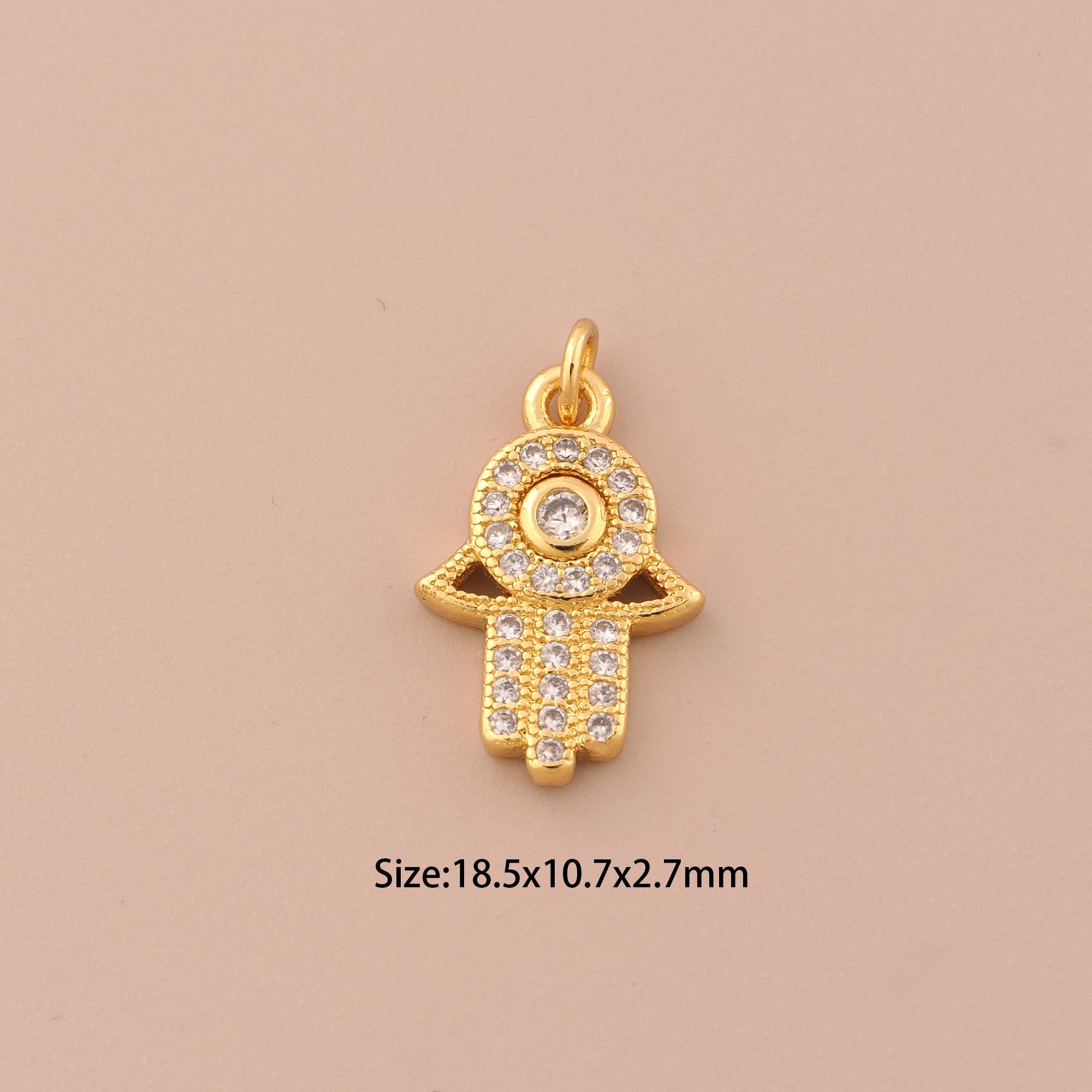 18K Gold Hamsa Charms,CZ Pave Fatima Charms Pendants,Fatima Charm for DIY Jewelry Making Supply