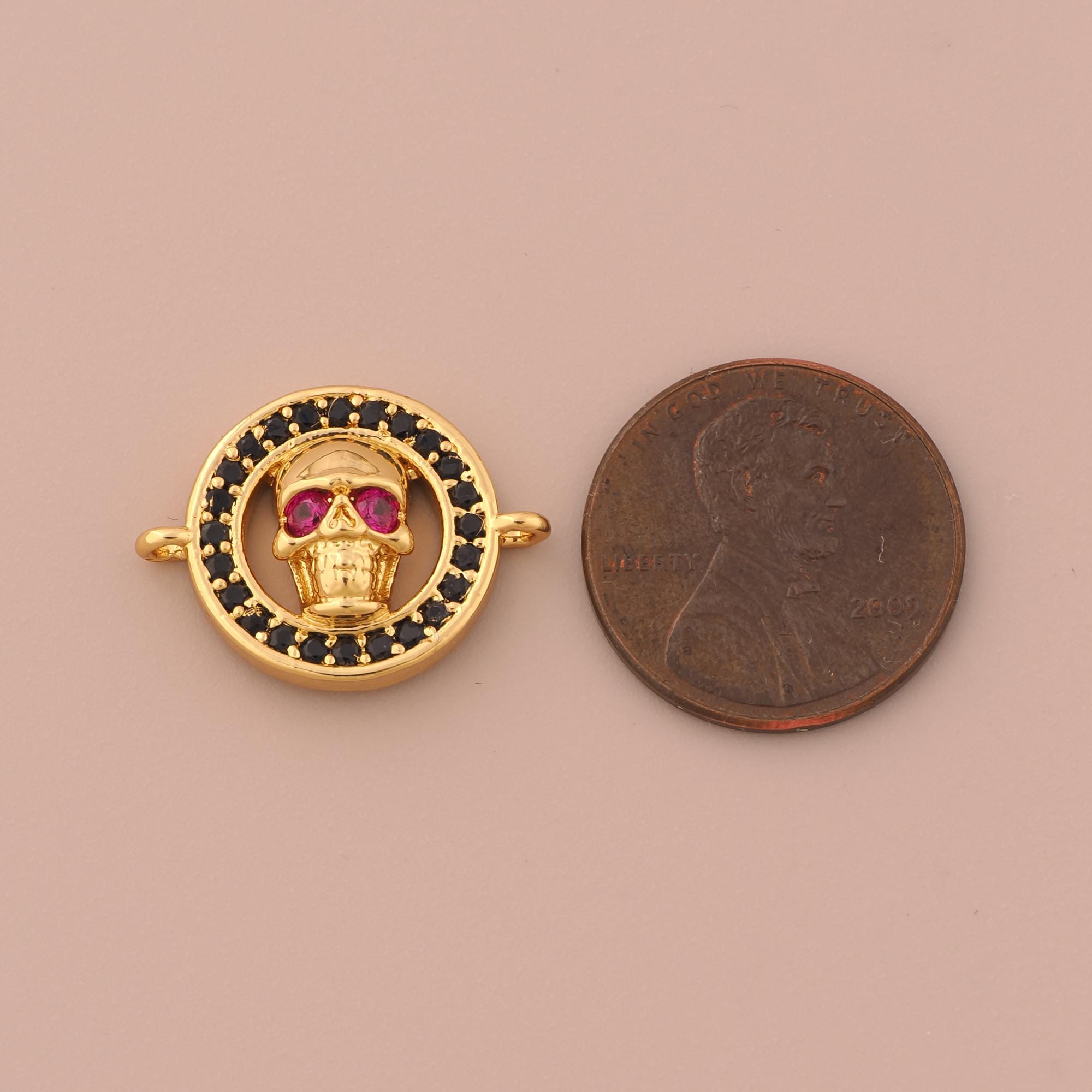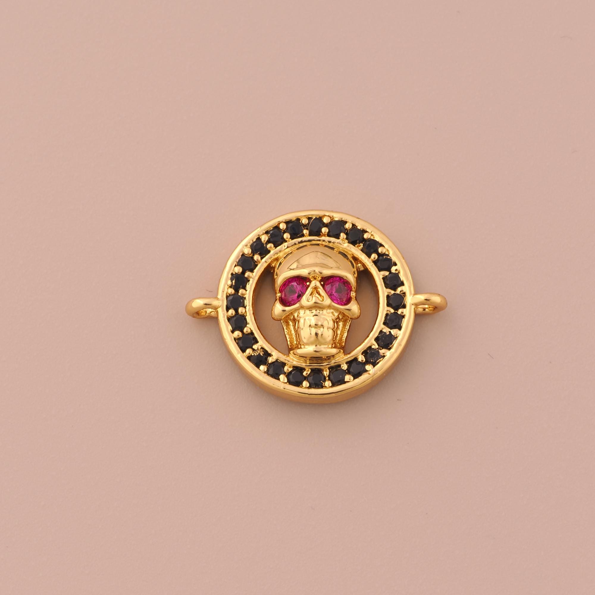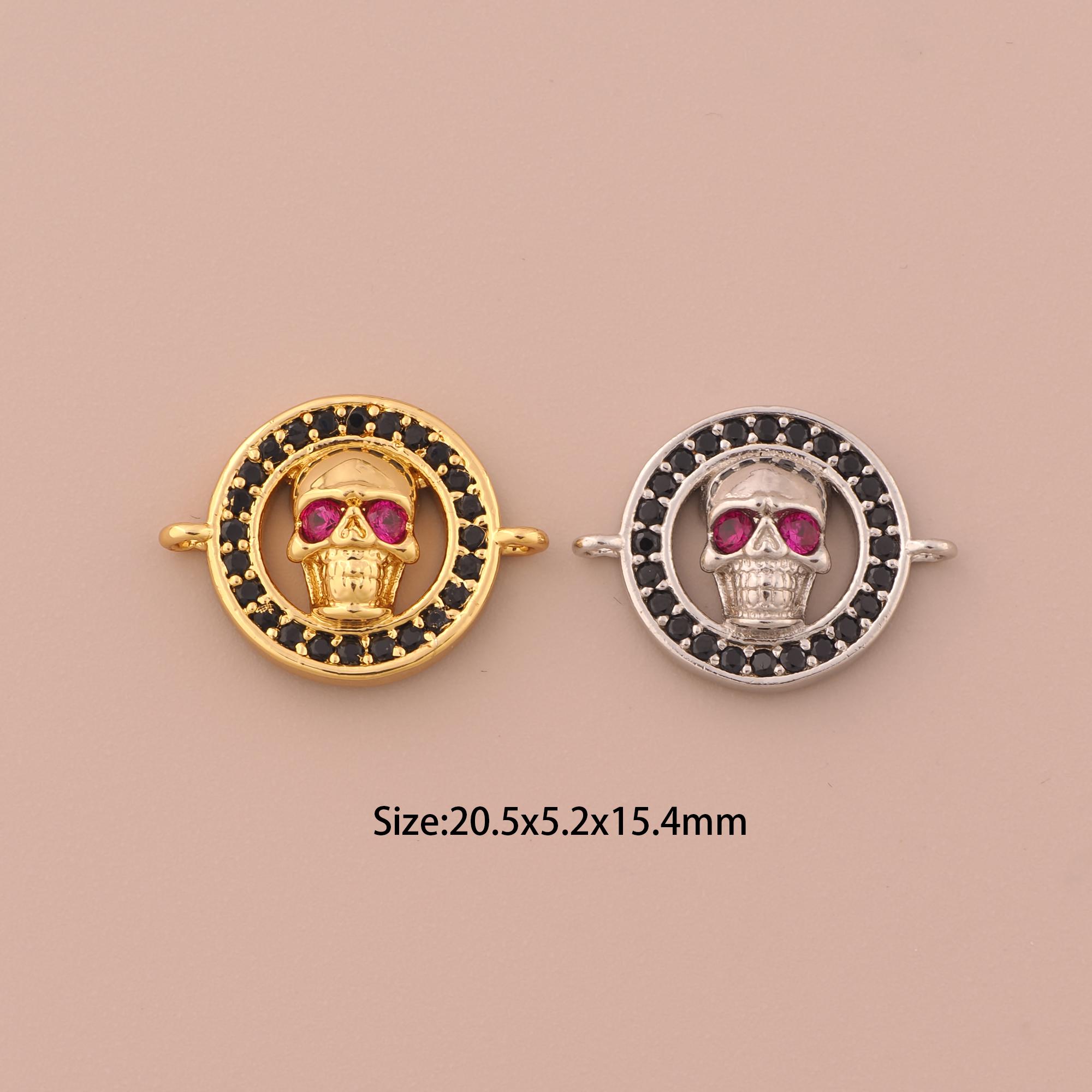 18K Gold Skull Connector,CZ Pave Round Connector Charms,Skull Connector for DIY Jewelry Making Supply