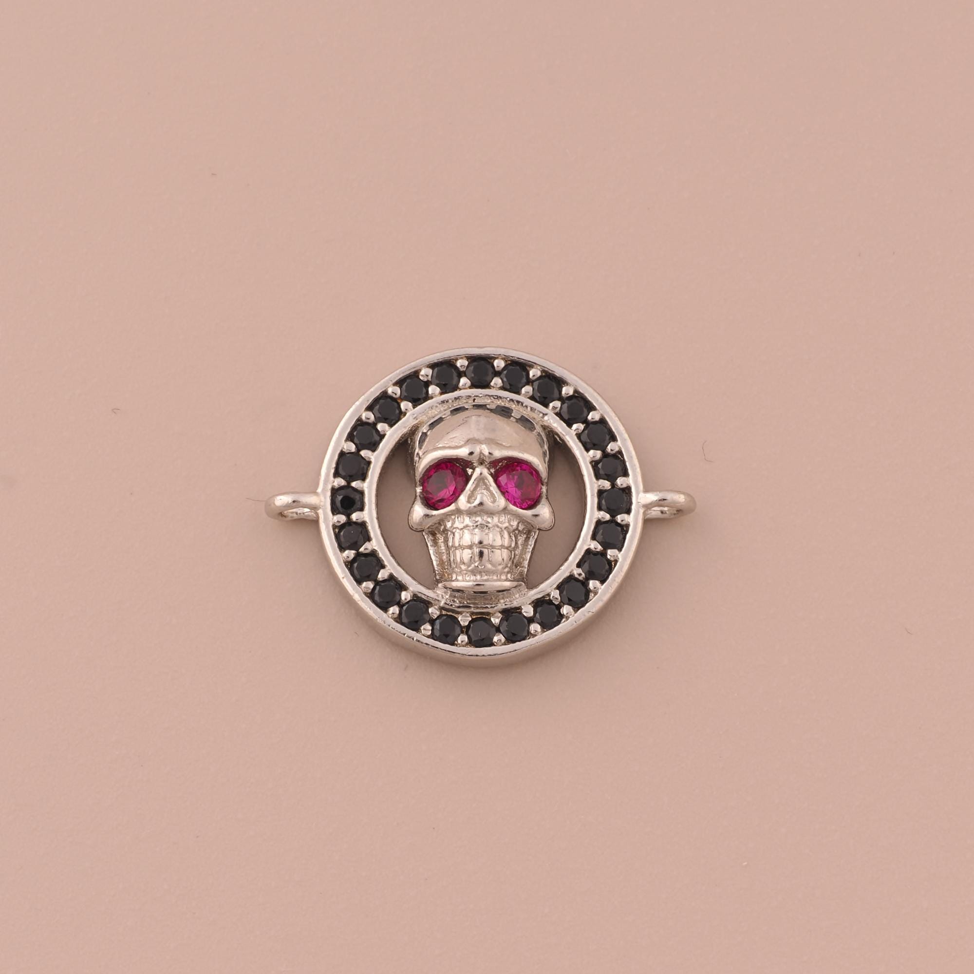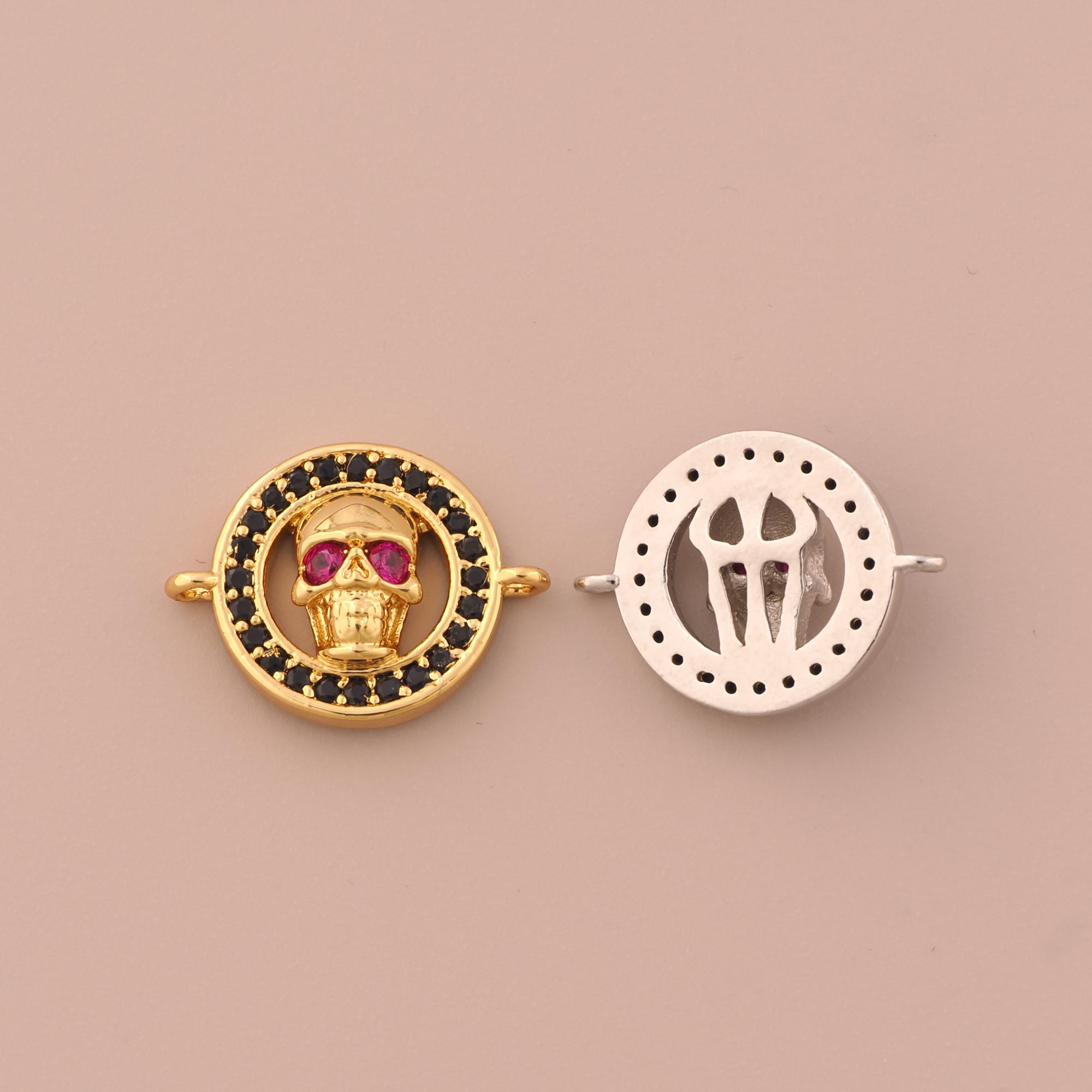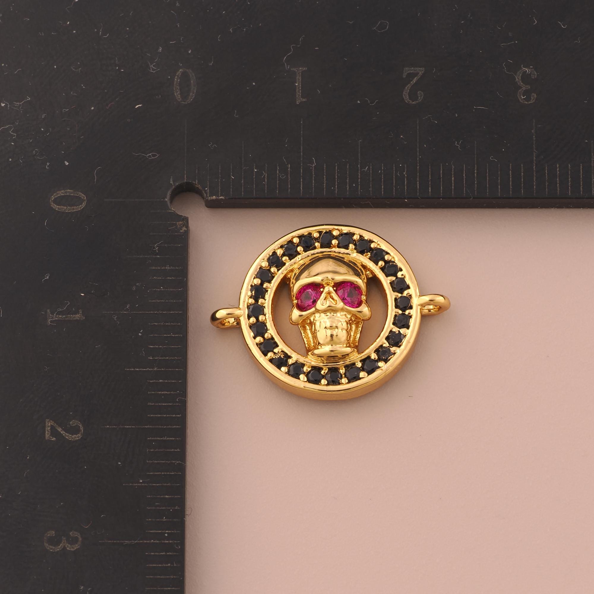 18K Gold Skull Connector,CZ Pave Round Connector Charms,Skull Connector for DIY Jewelry Making Supply