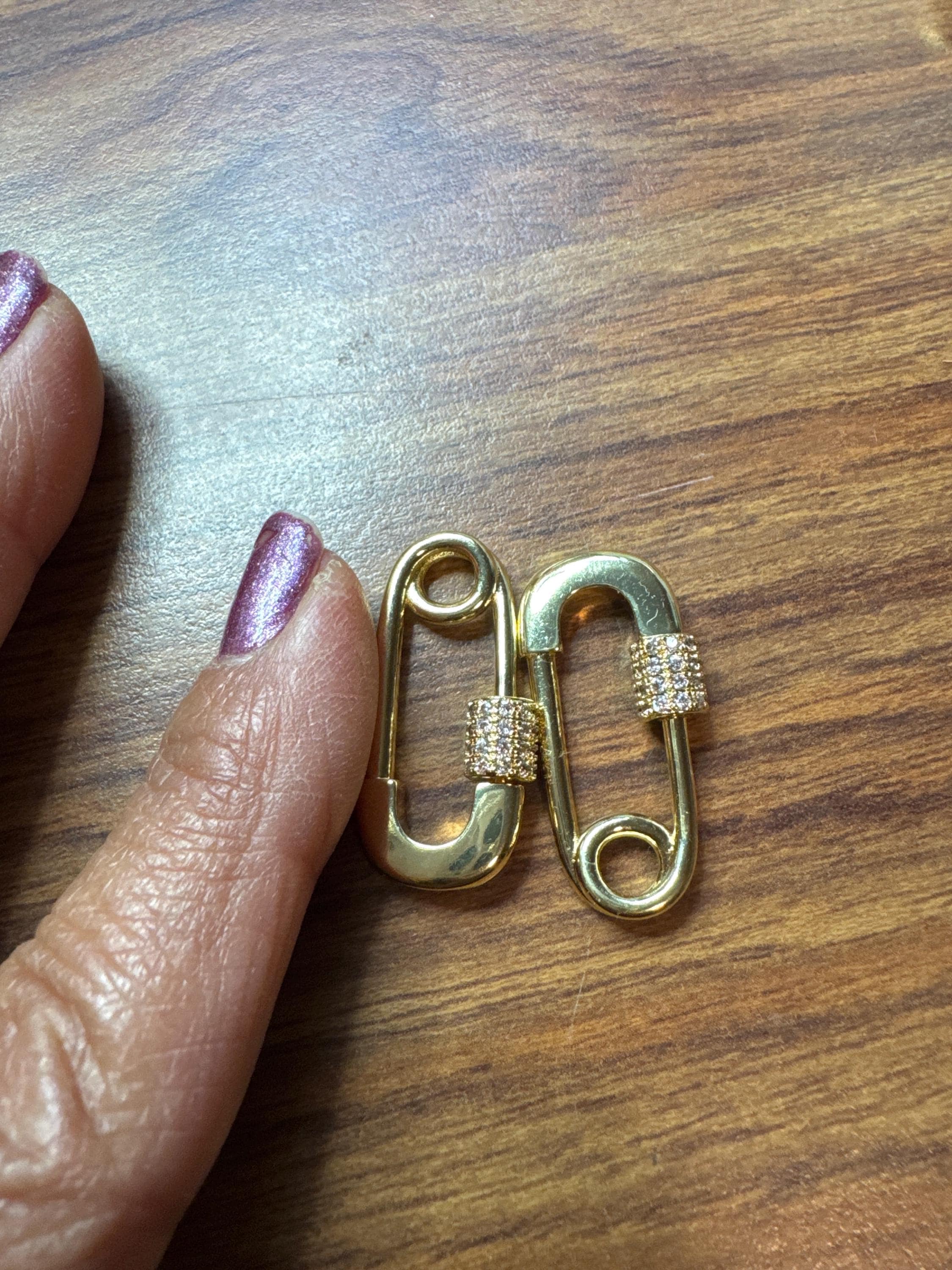 18K Gold Carabiner Clasp,CZ Pave Paper Cilp Clasp,Paper Cilp Carabiner Clasp for DIY Jewelry Making Supply