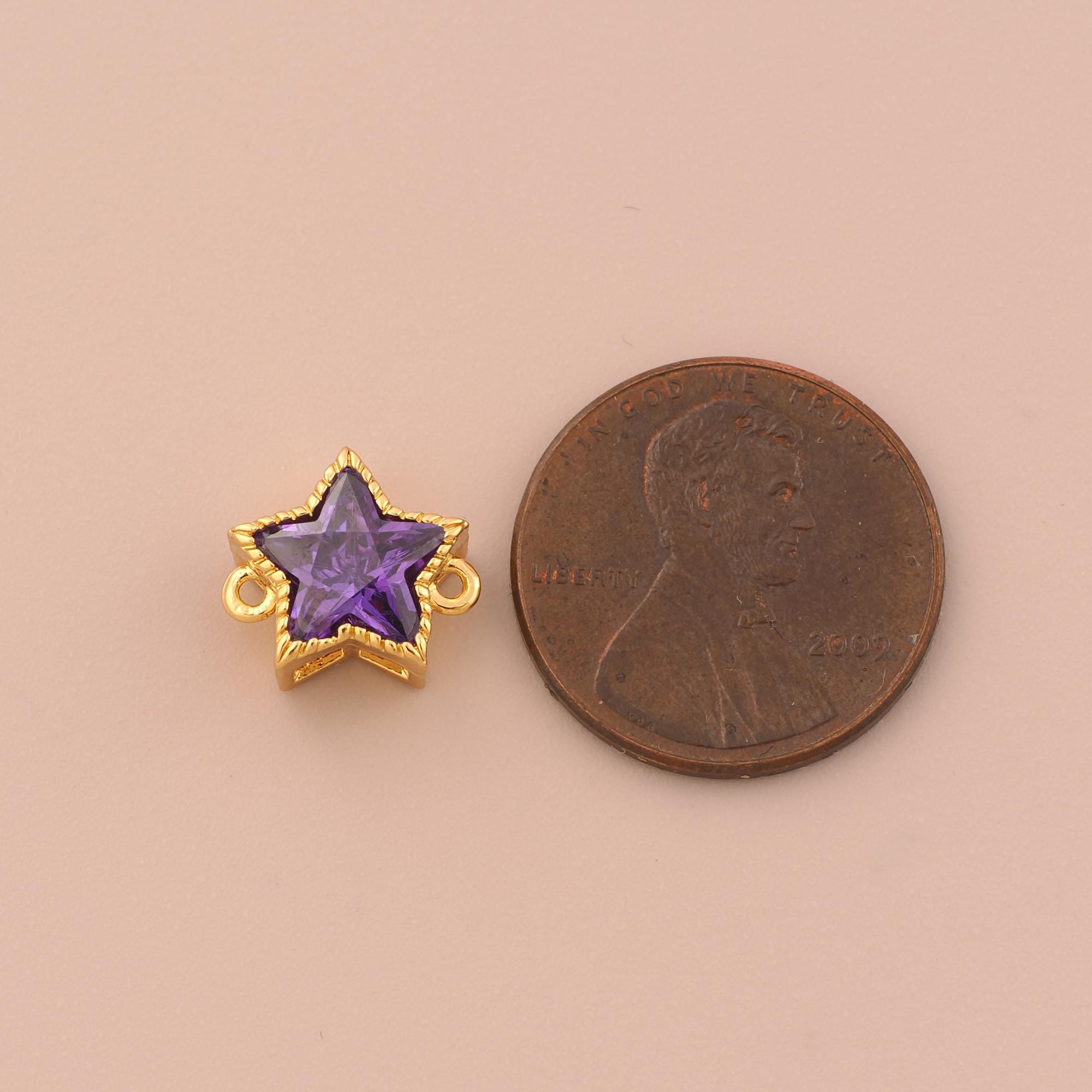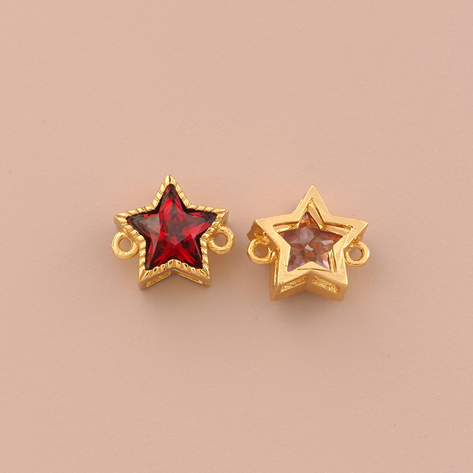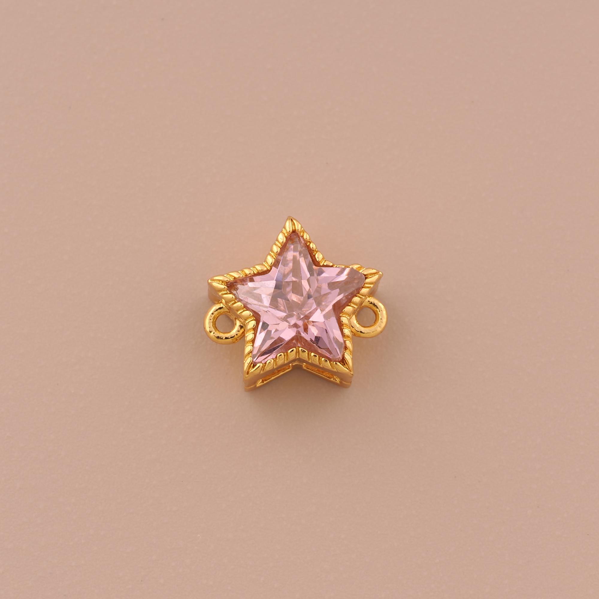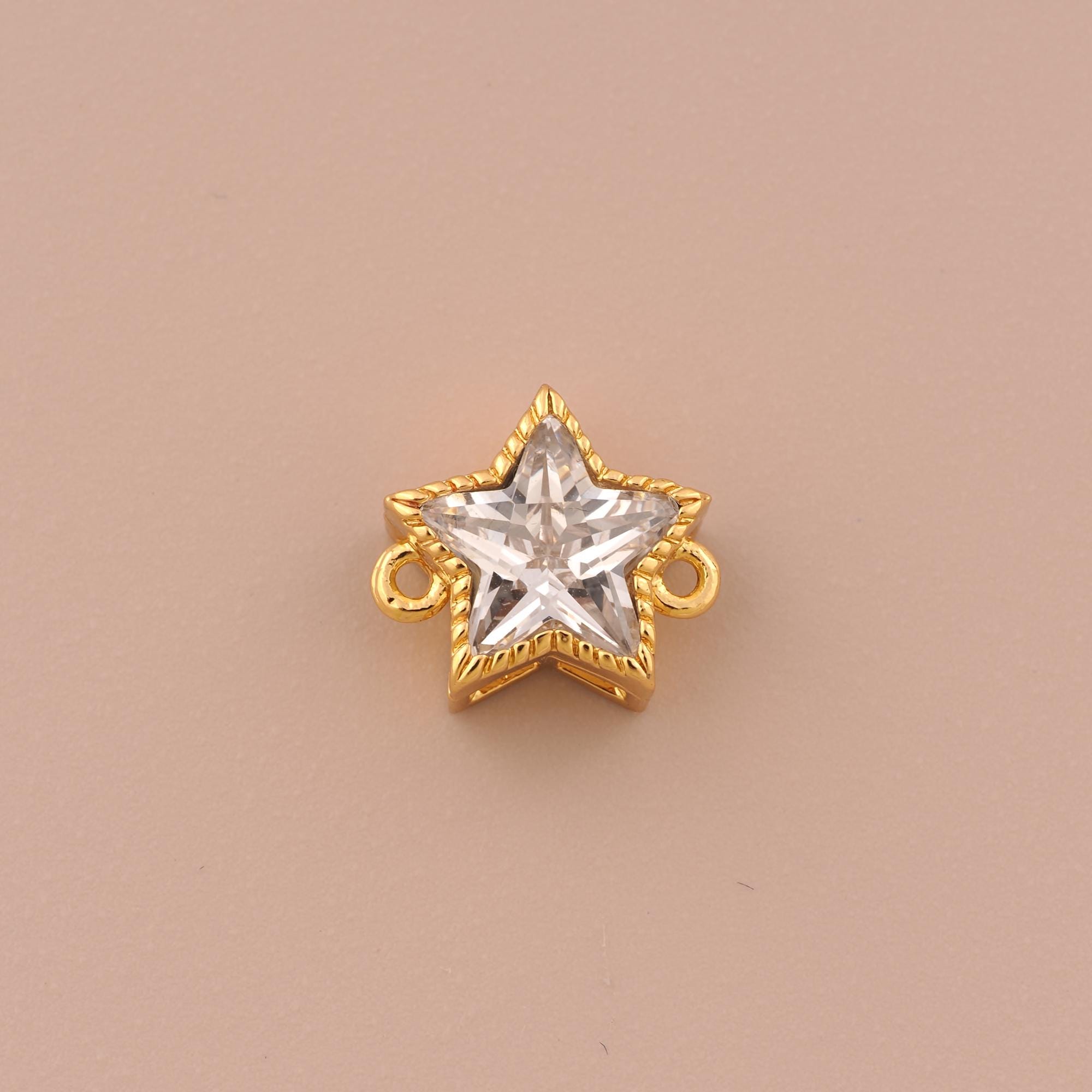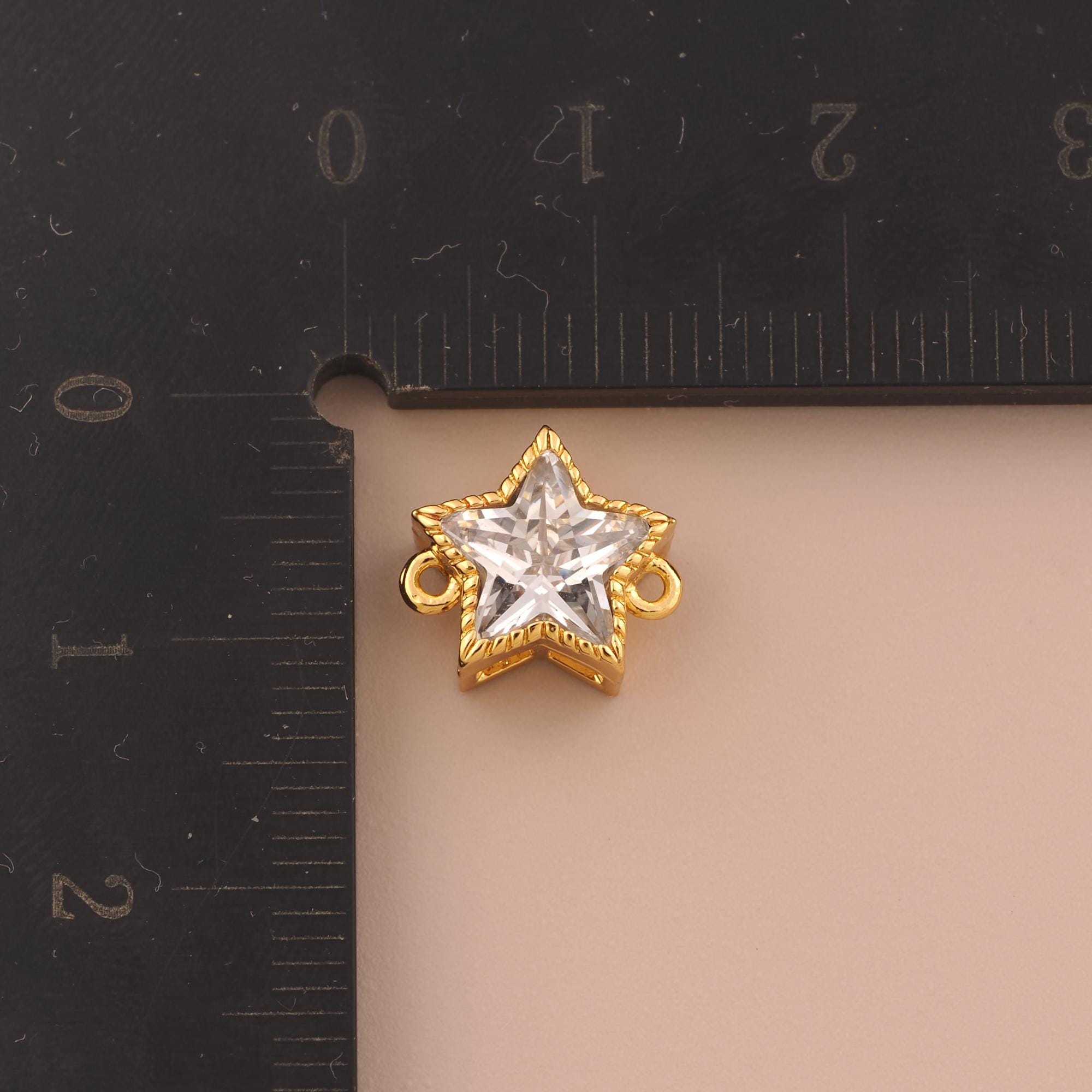 18K Gold Star Connector,CZ Pave Heart Connector Charms,Star Connector for DIY Jewelry Making Supply