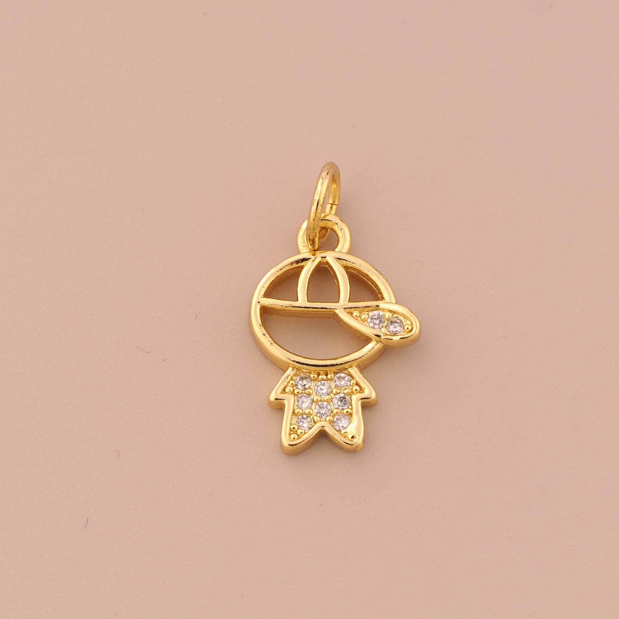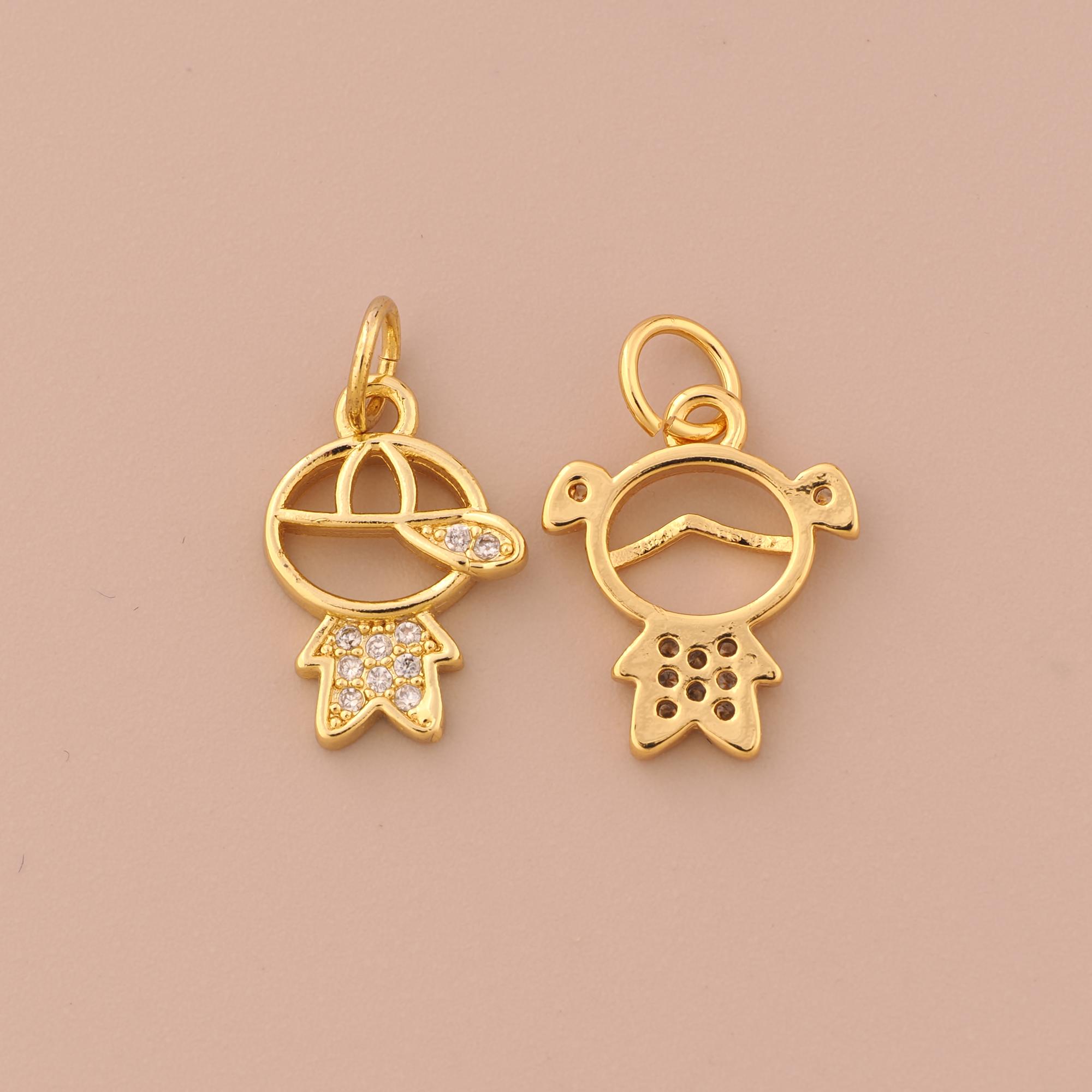 18K Gold Character Charms,CZ Pave Girl Charms Pendants,Boy Charm for DIY Jewelry Making Supply
