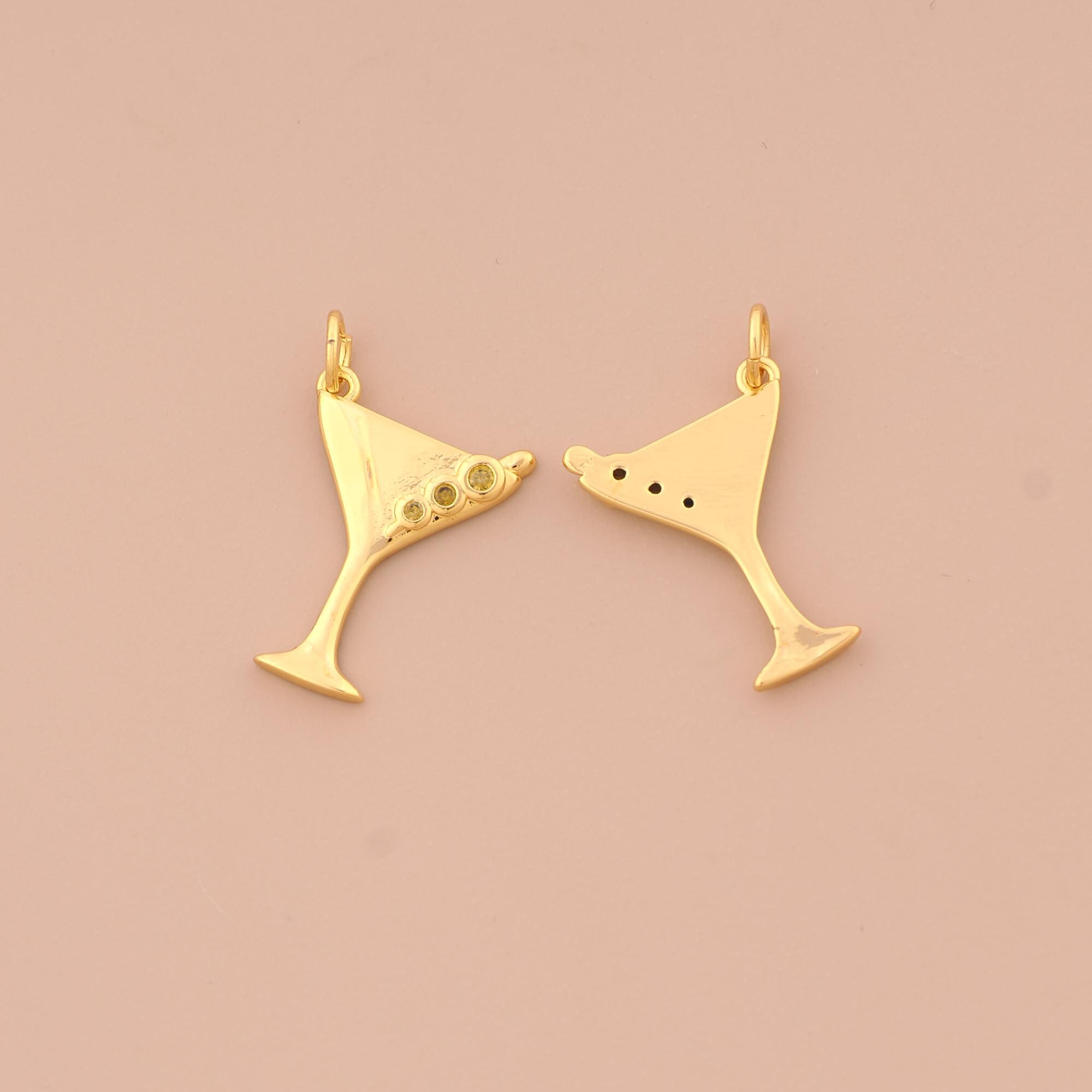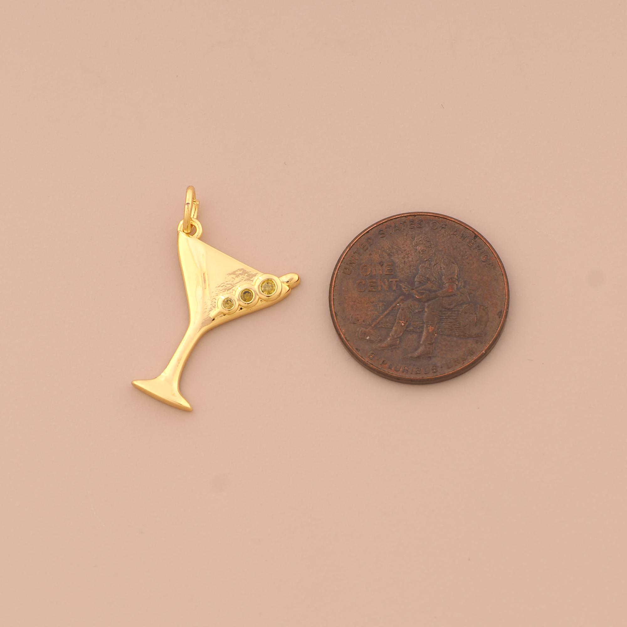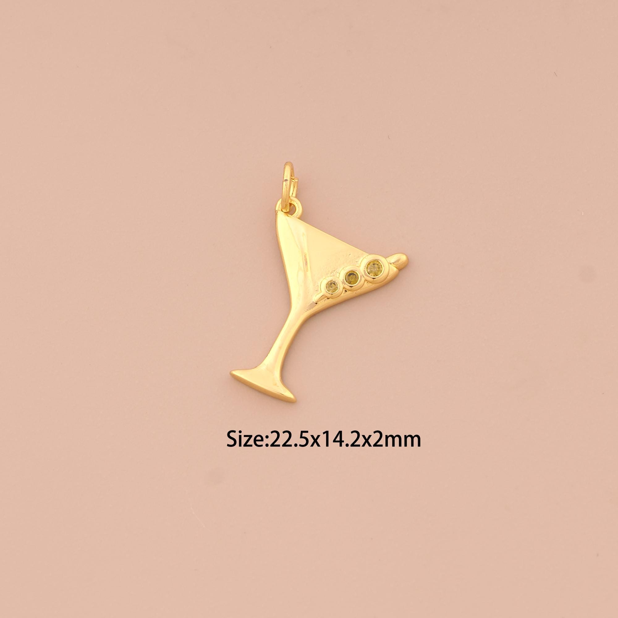 18K Gold Goblet Charms,CZ Pave Wine Glass Charms Pendants,Goblet Charm for DIY Jewelry Making Supply