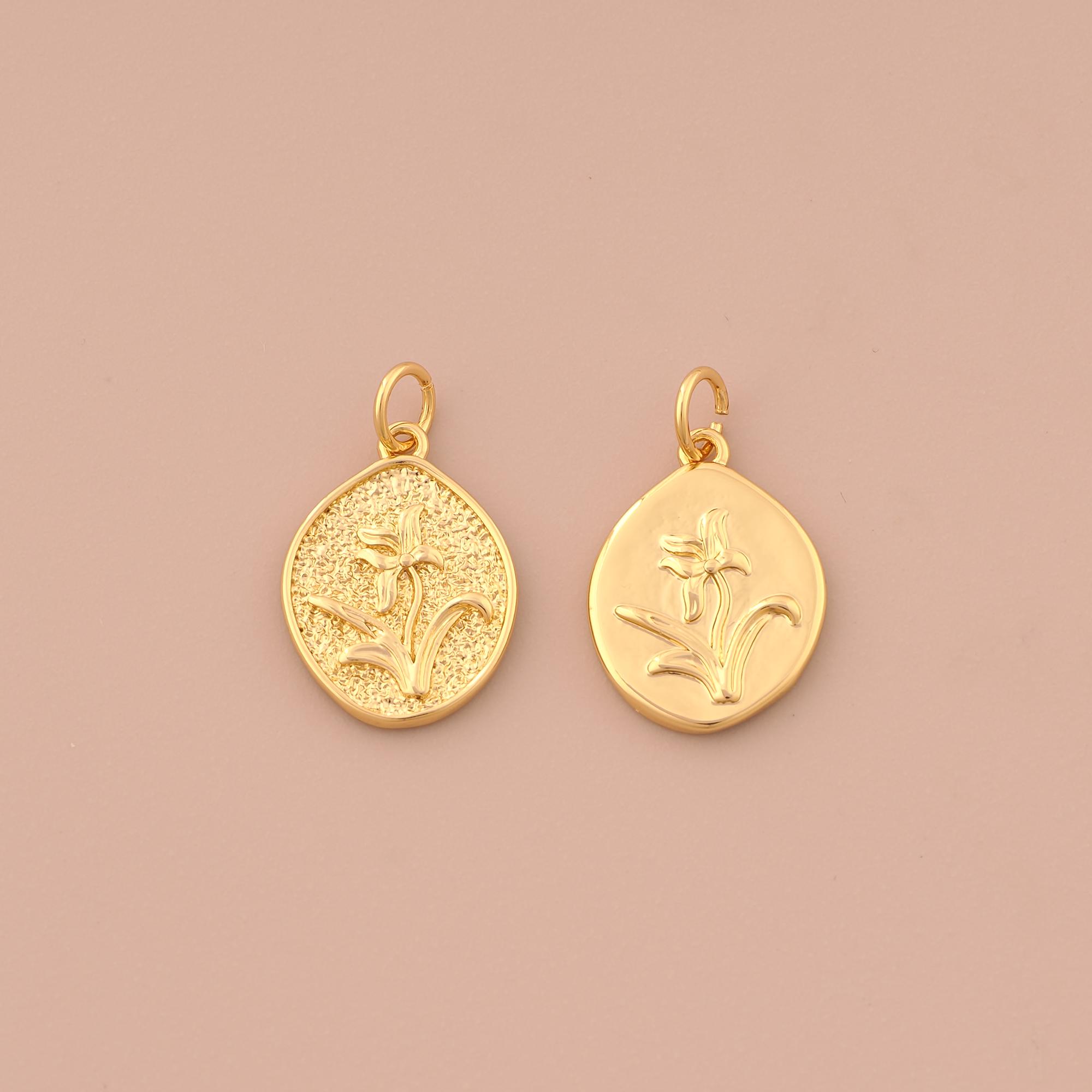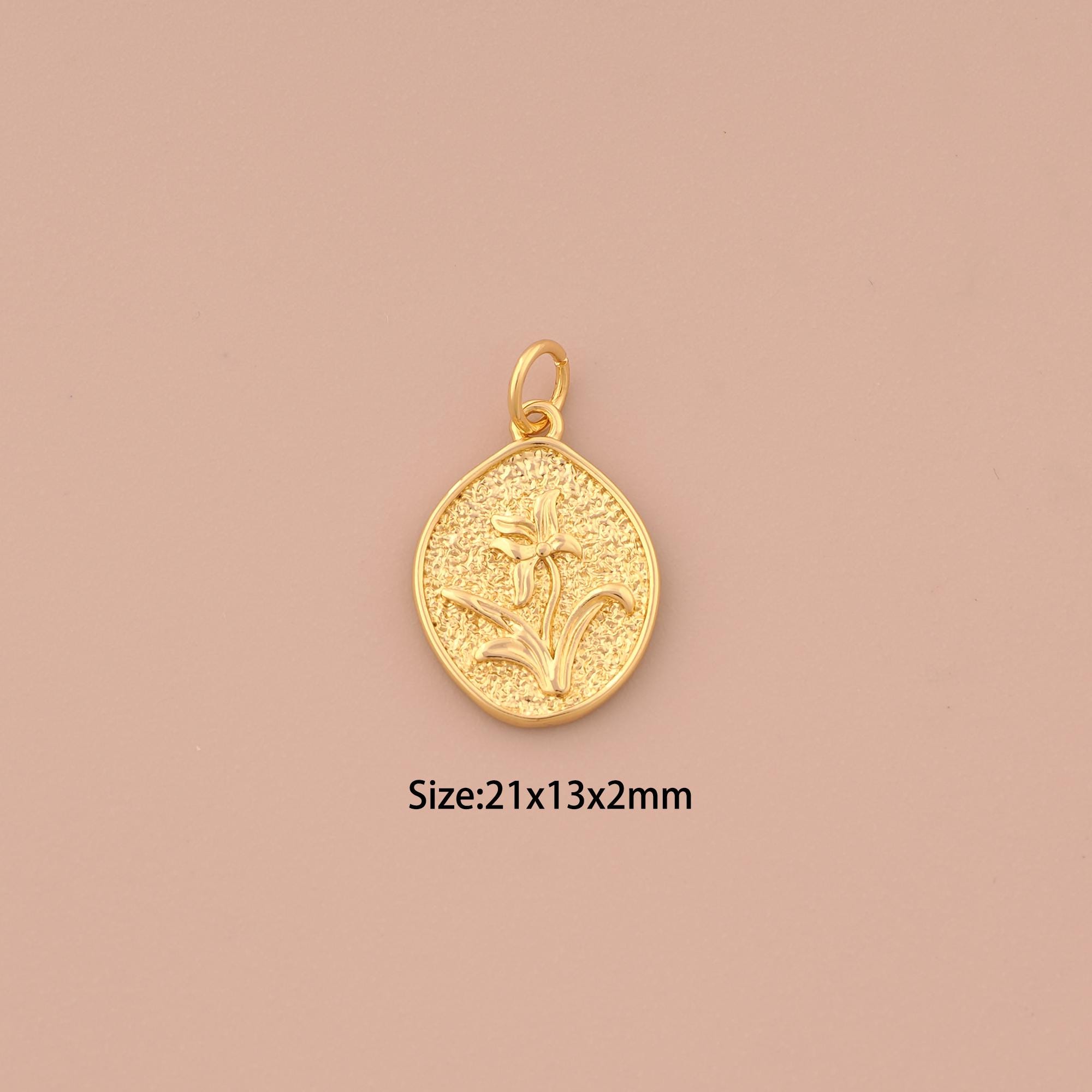 18K Gold Flower Charms,Flower Charms Pendants,Flower Charm for DIY Jewelry Making Supply