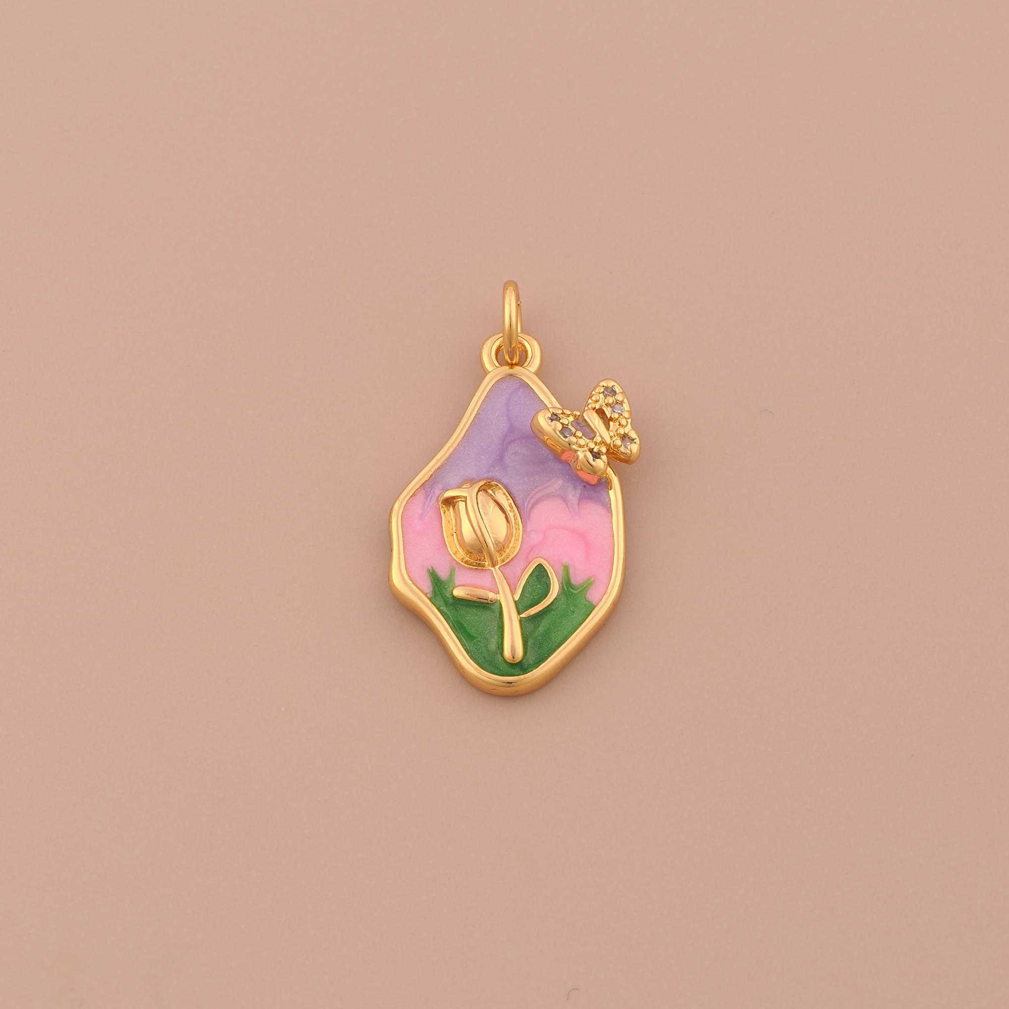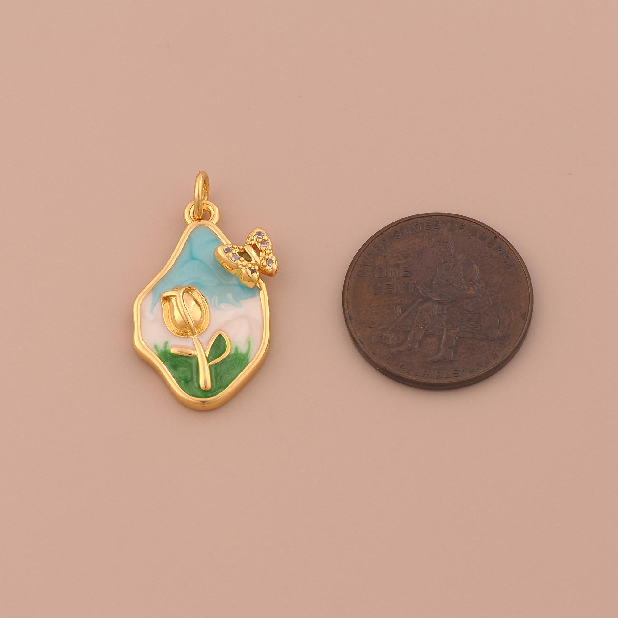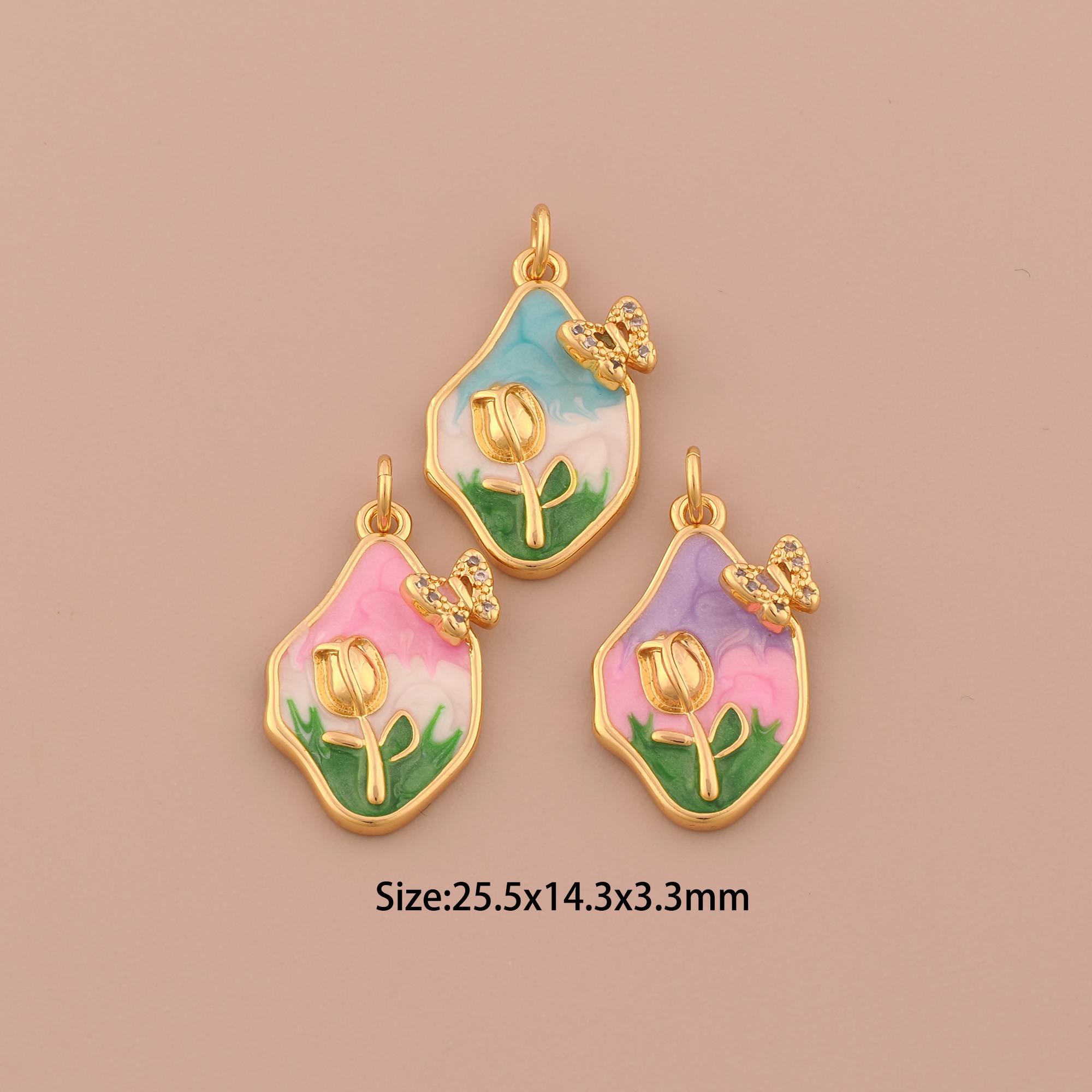 18K Gold Rose Charms,CZ Pave Flower Charms Pendants,Enamel Butterfly Charm for DIY Jewelry Making Supply