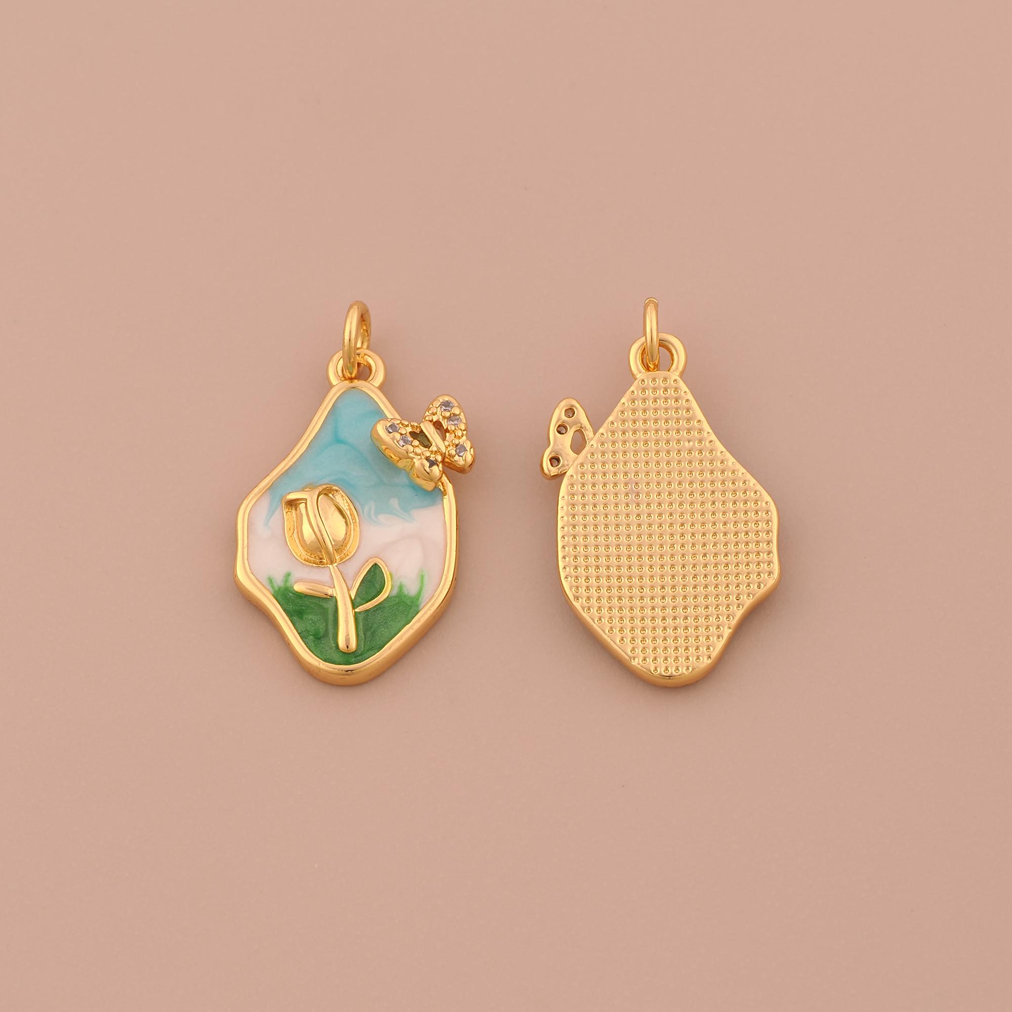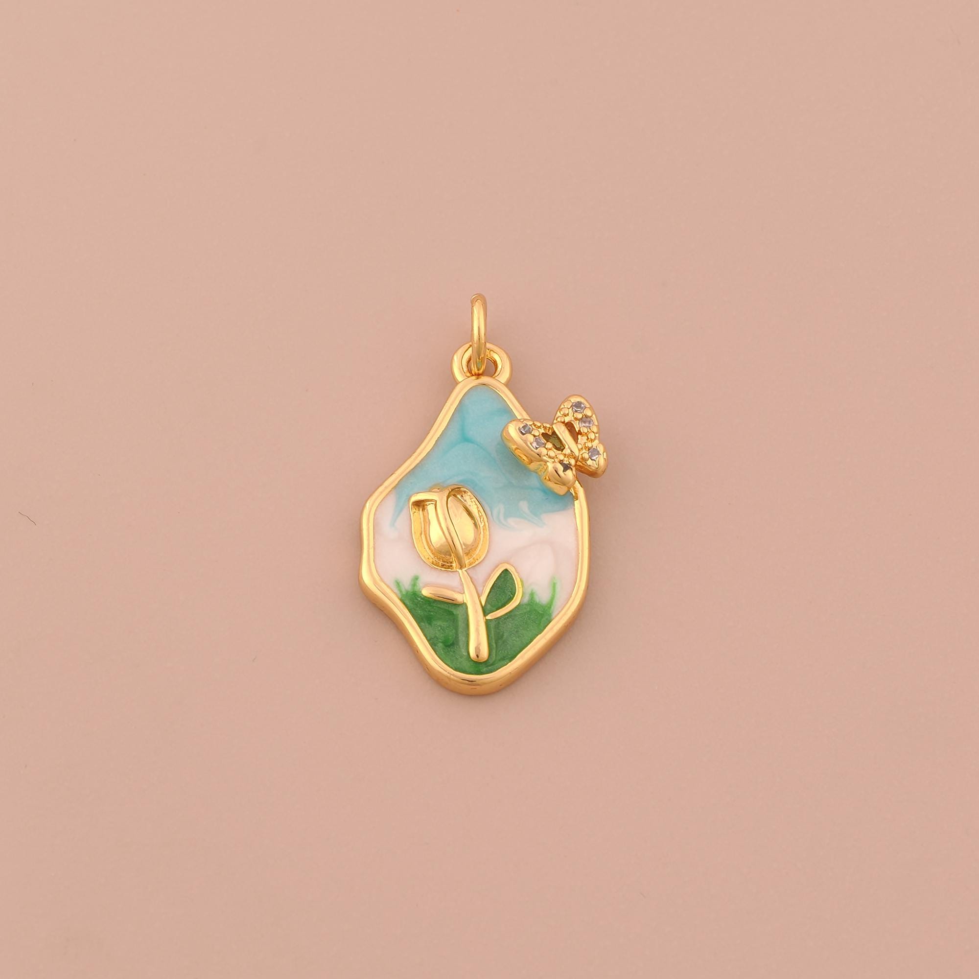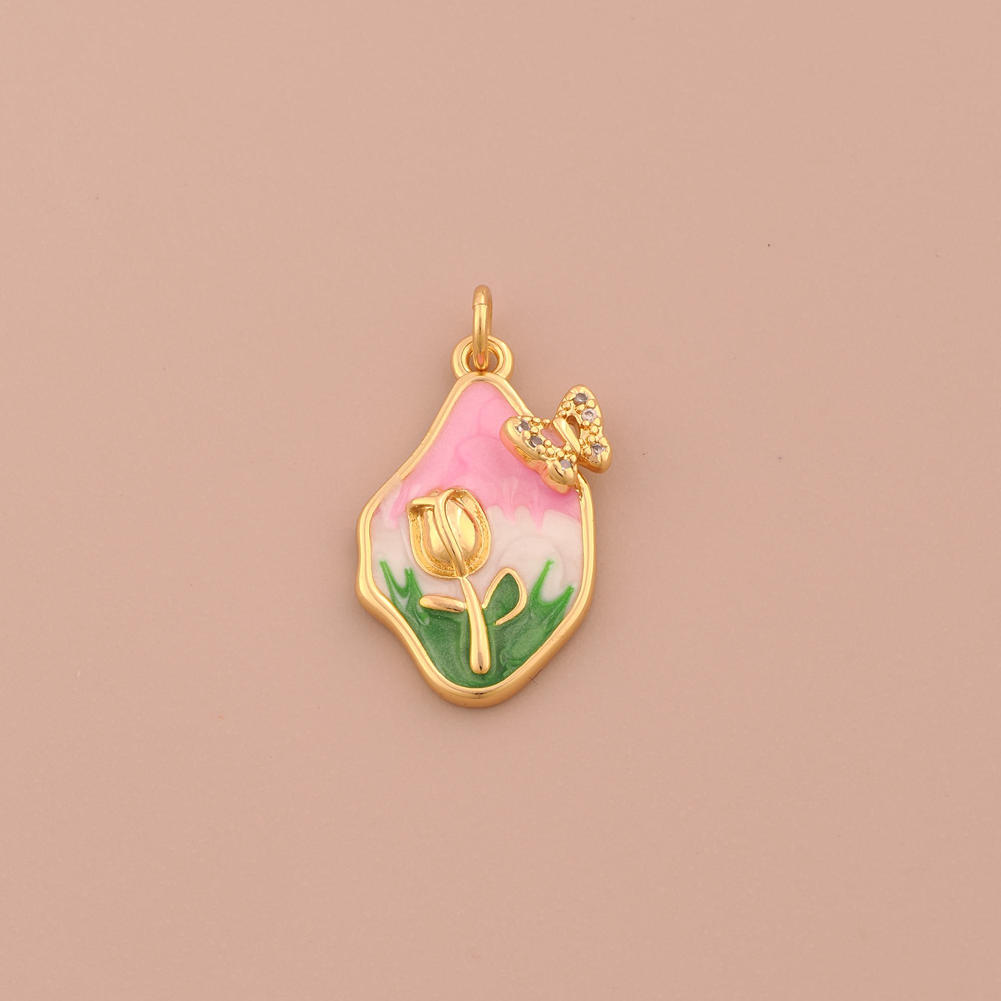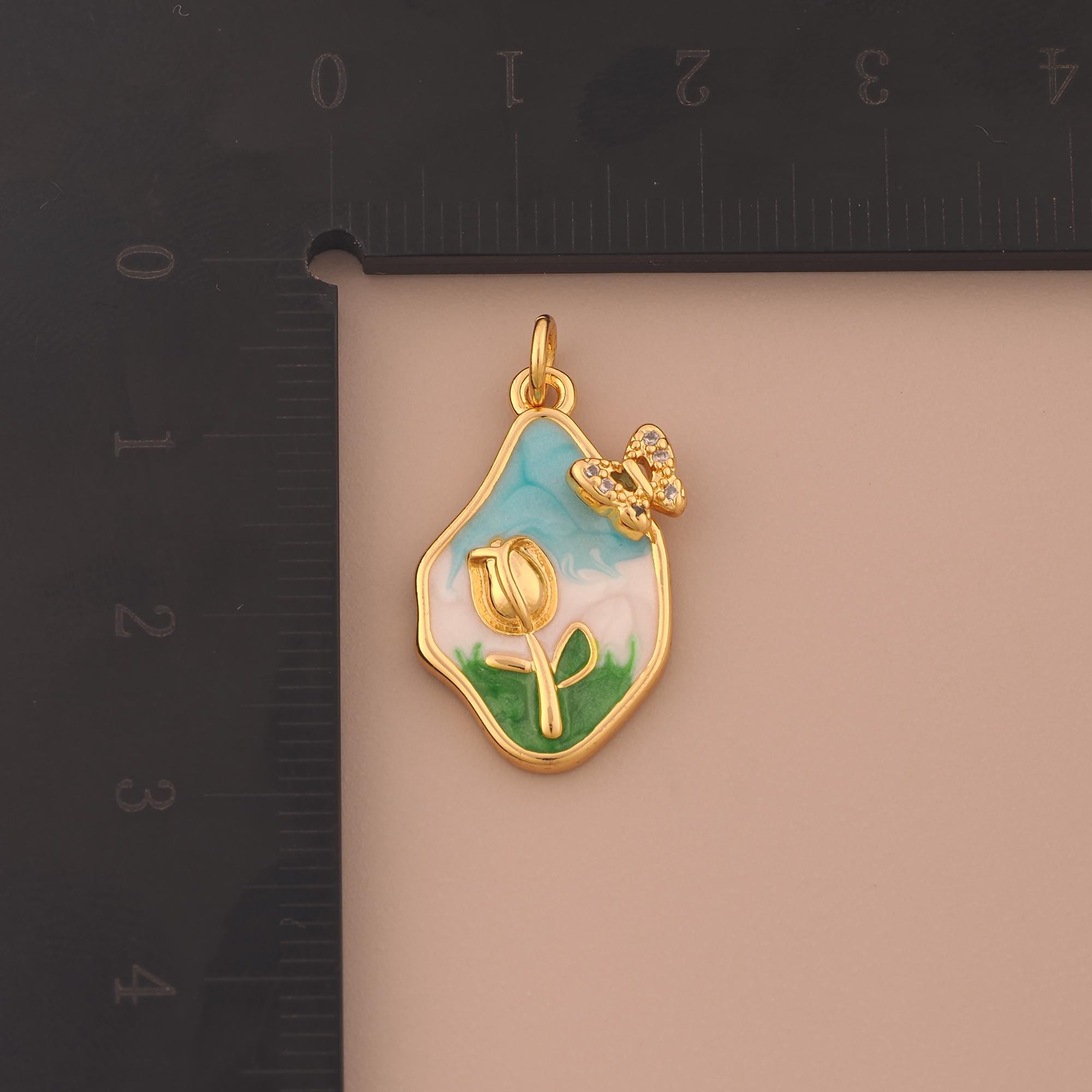 18K Gold Rose Charms,CZ Pave Flower Charms Pendants,Enamel Butterfly Charm for DIY Jewelry Making Supply