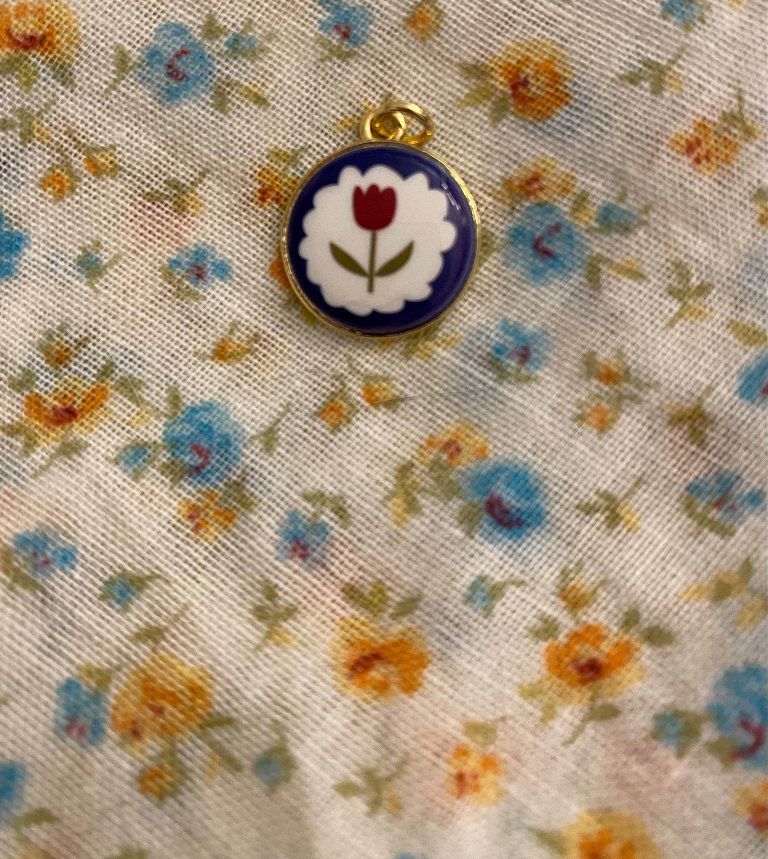 18K Gold Flower Charms,Enamel Round Charms Pendants,Flower Charm for DIY Jewelry Making Supply