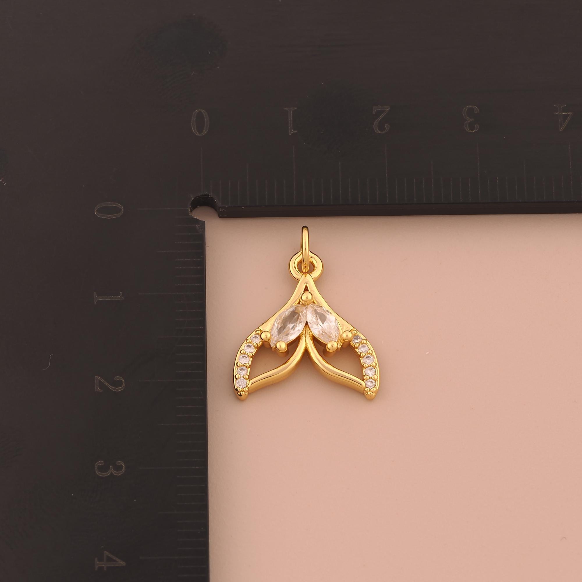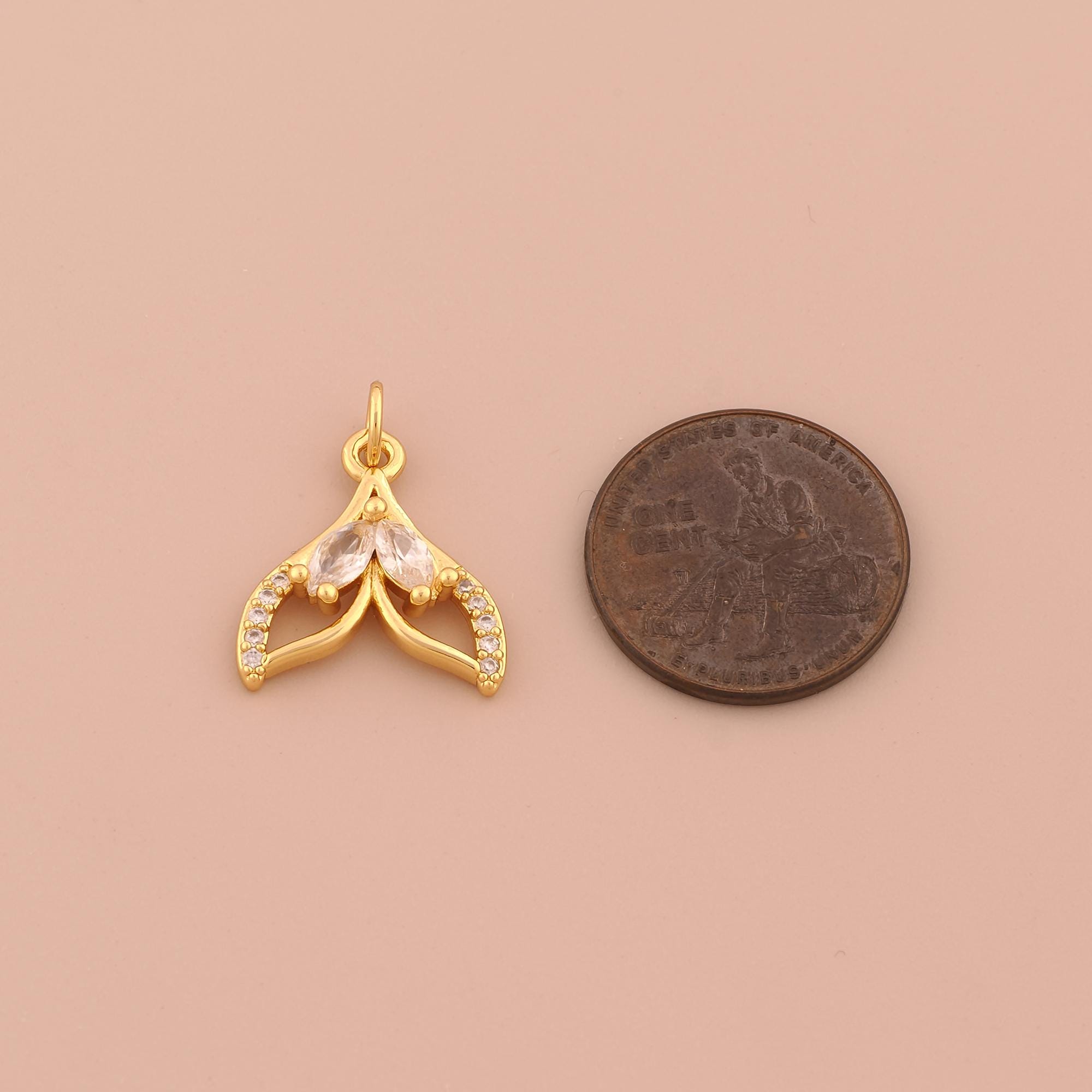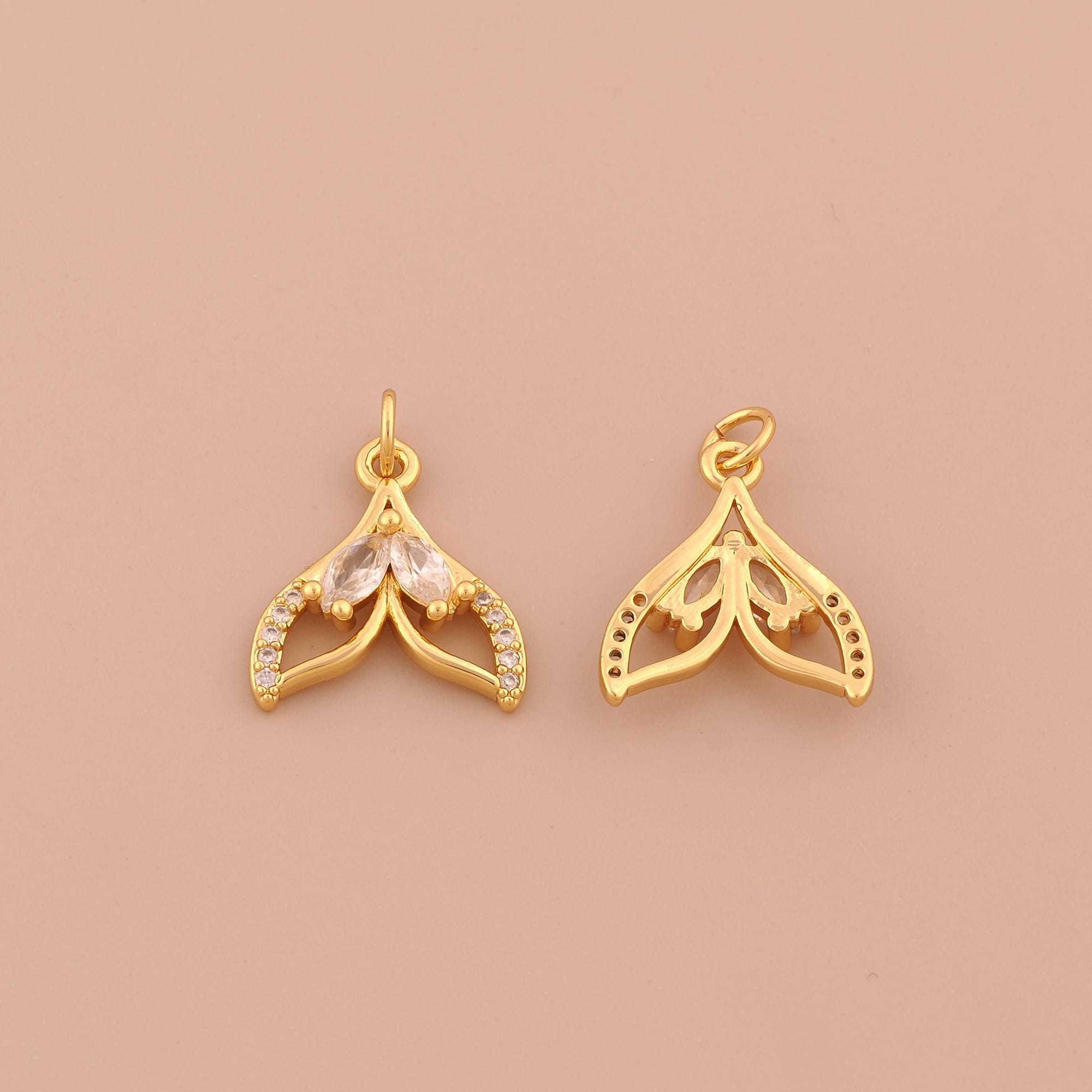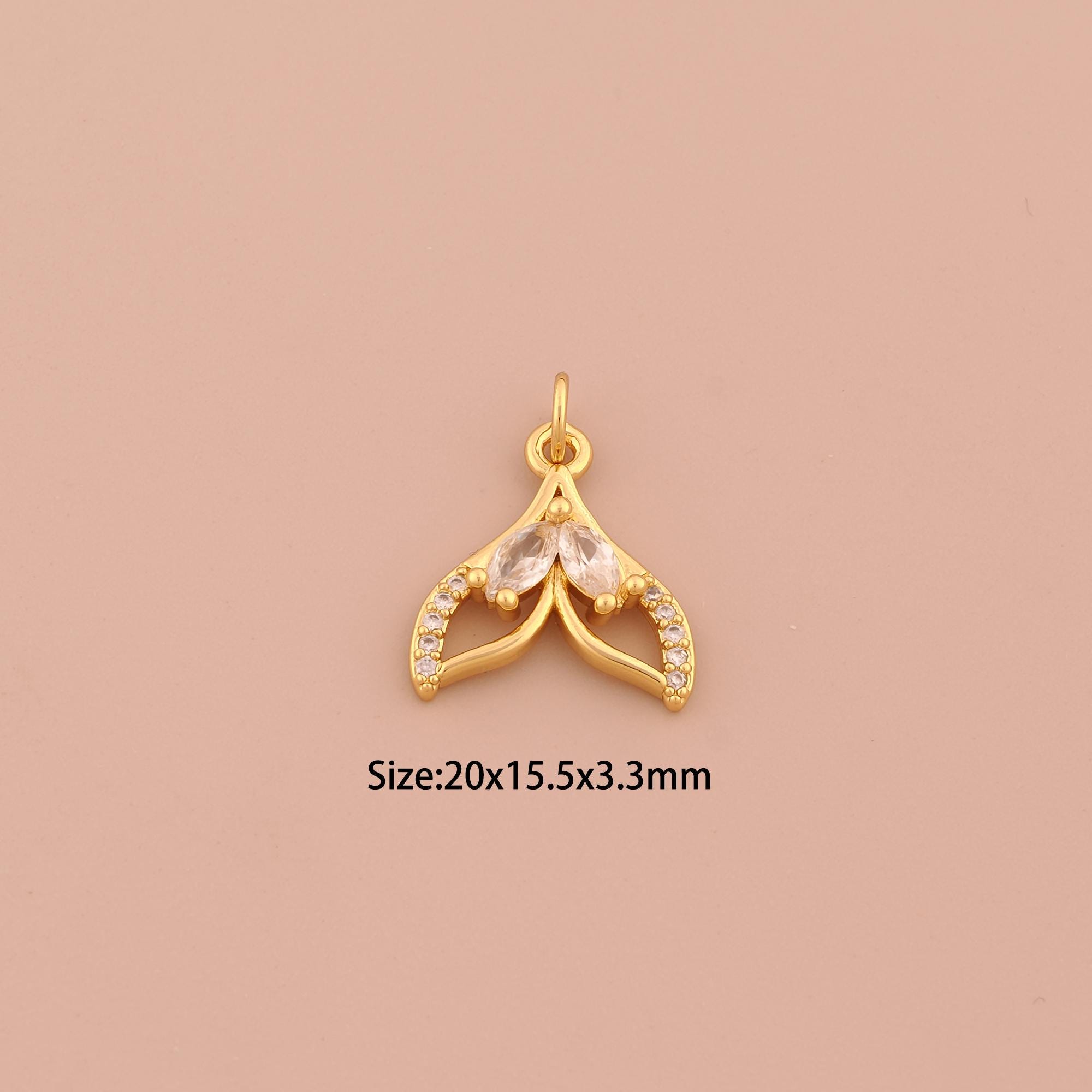 18K Gold Fishtail Charms,CZ Pave Fishtail Charms Pendants,Fishtail Charm for DIY Jewelry Making Supply