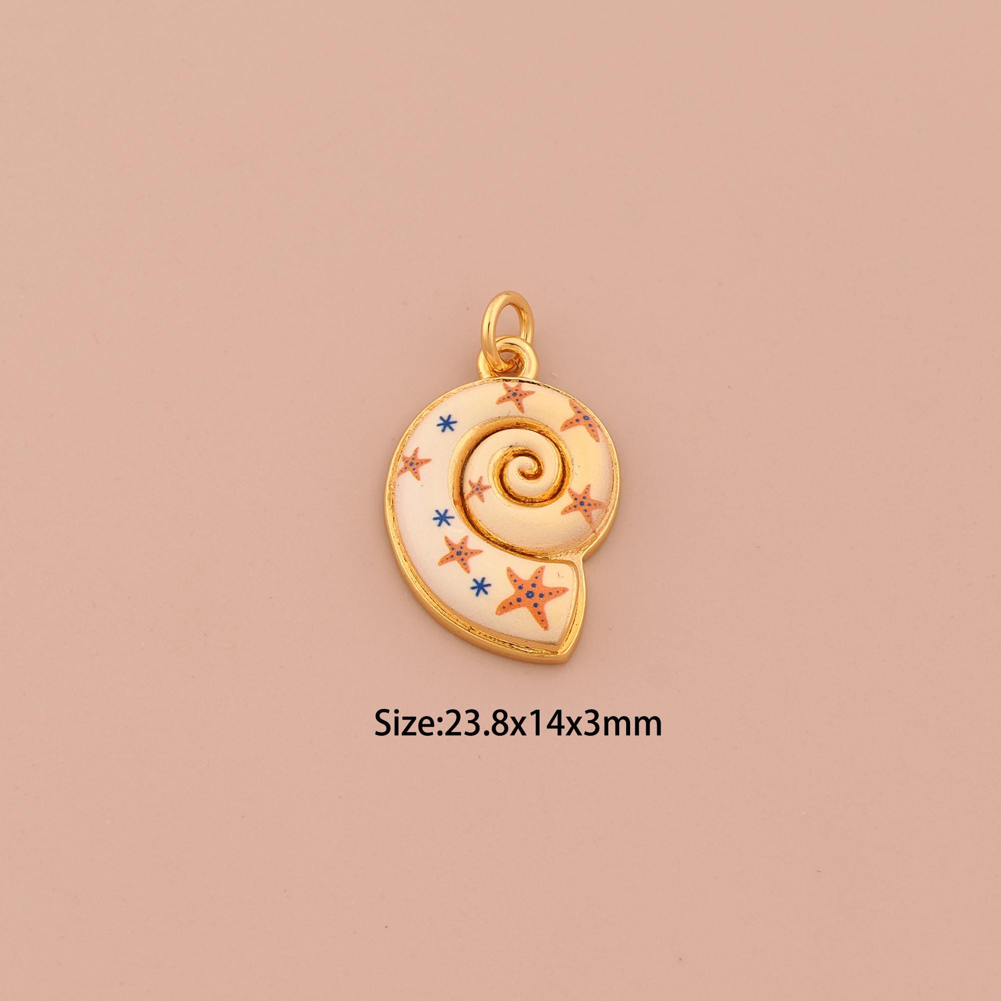 18K Gold Snail Shell Charms,Enamel Shell Charms Pendants,Starfish Charm for DIY Jewelry Making Supply