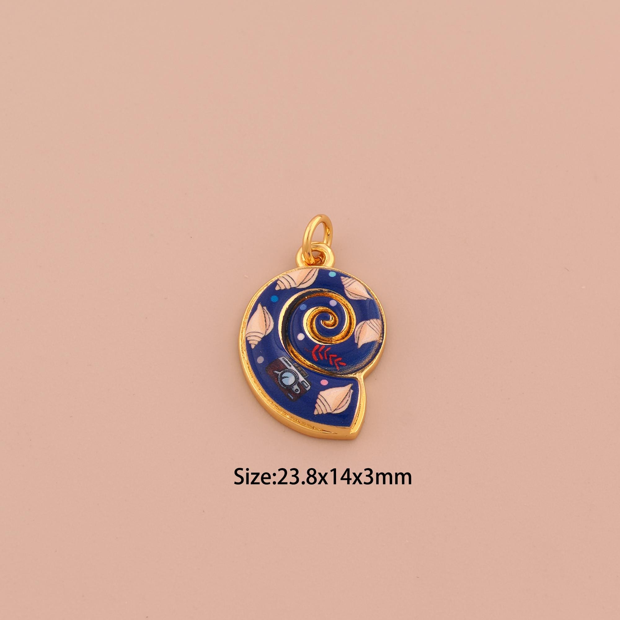 18K Gold Snail Shell Charms,Enamel Camera Charms Pendants,Conch Charm for DIY Jewelry Making Supply