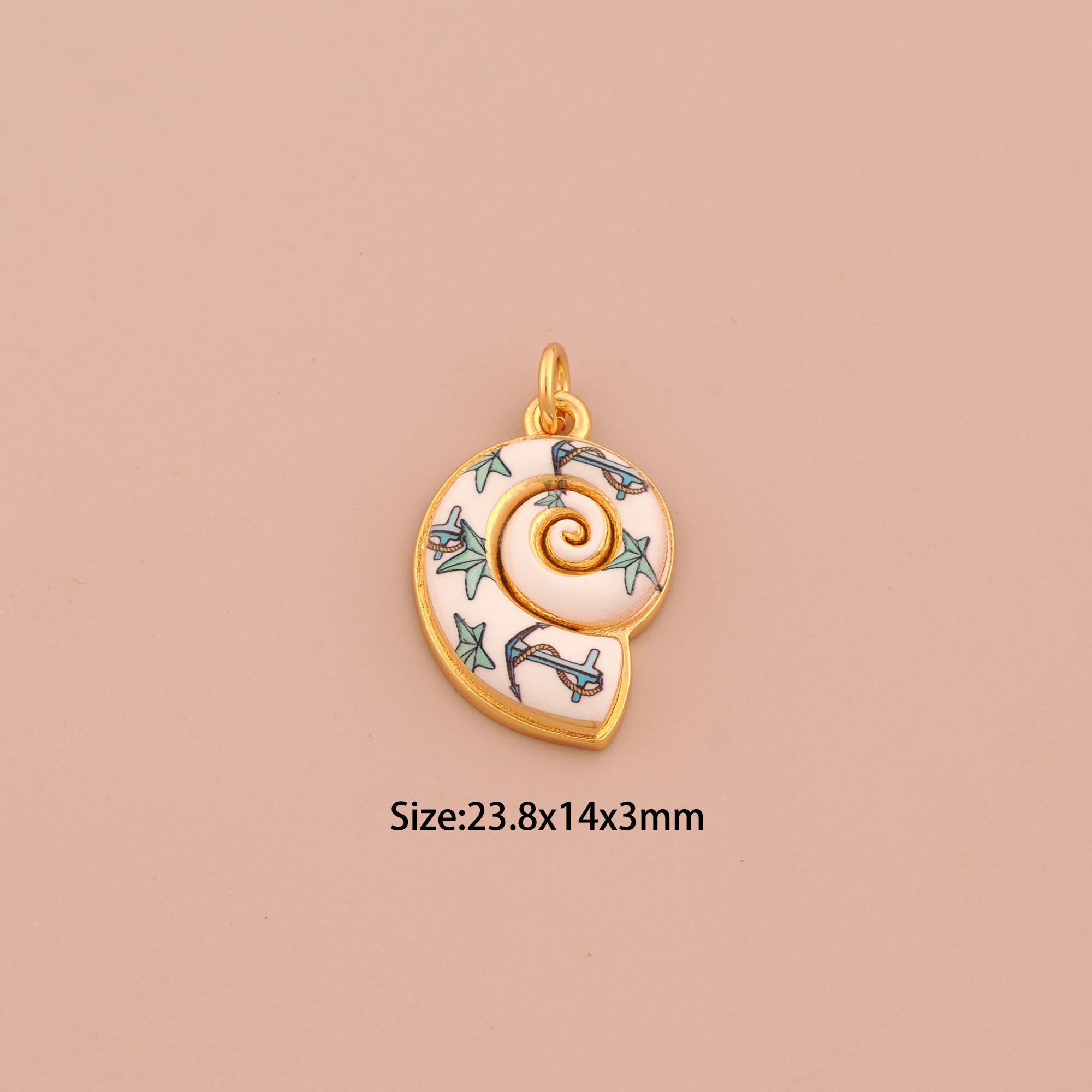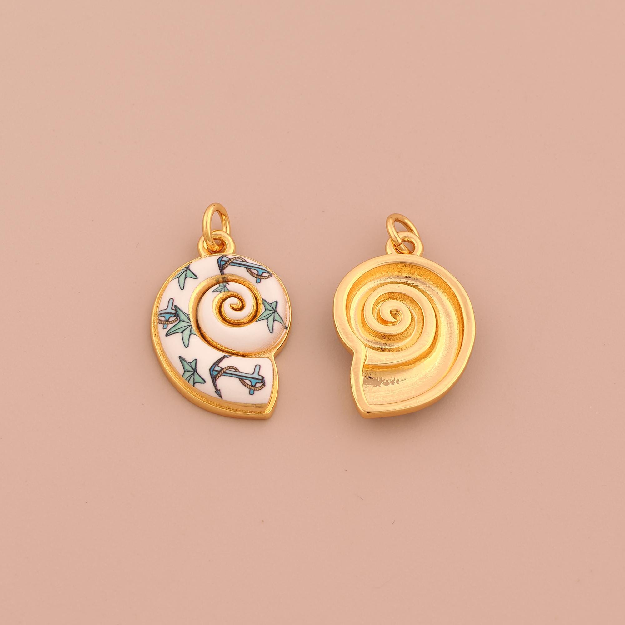 18K Gold Snail Shell Charms,Enamel Shell Charms Pendants,Snail Shell Charm for DIY Jewelry Making Supply