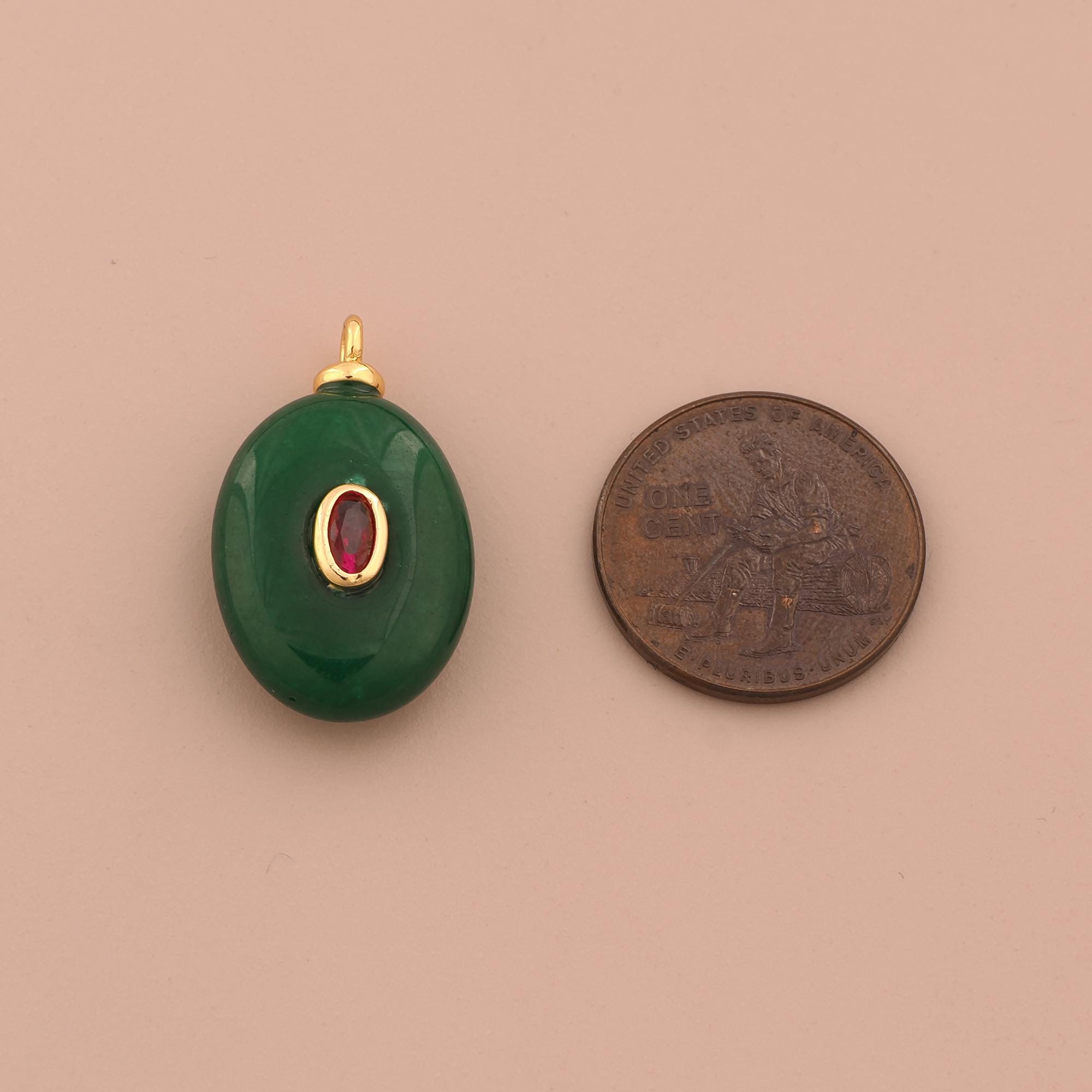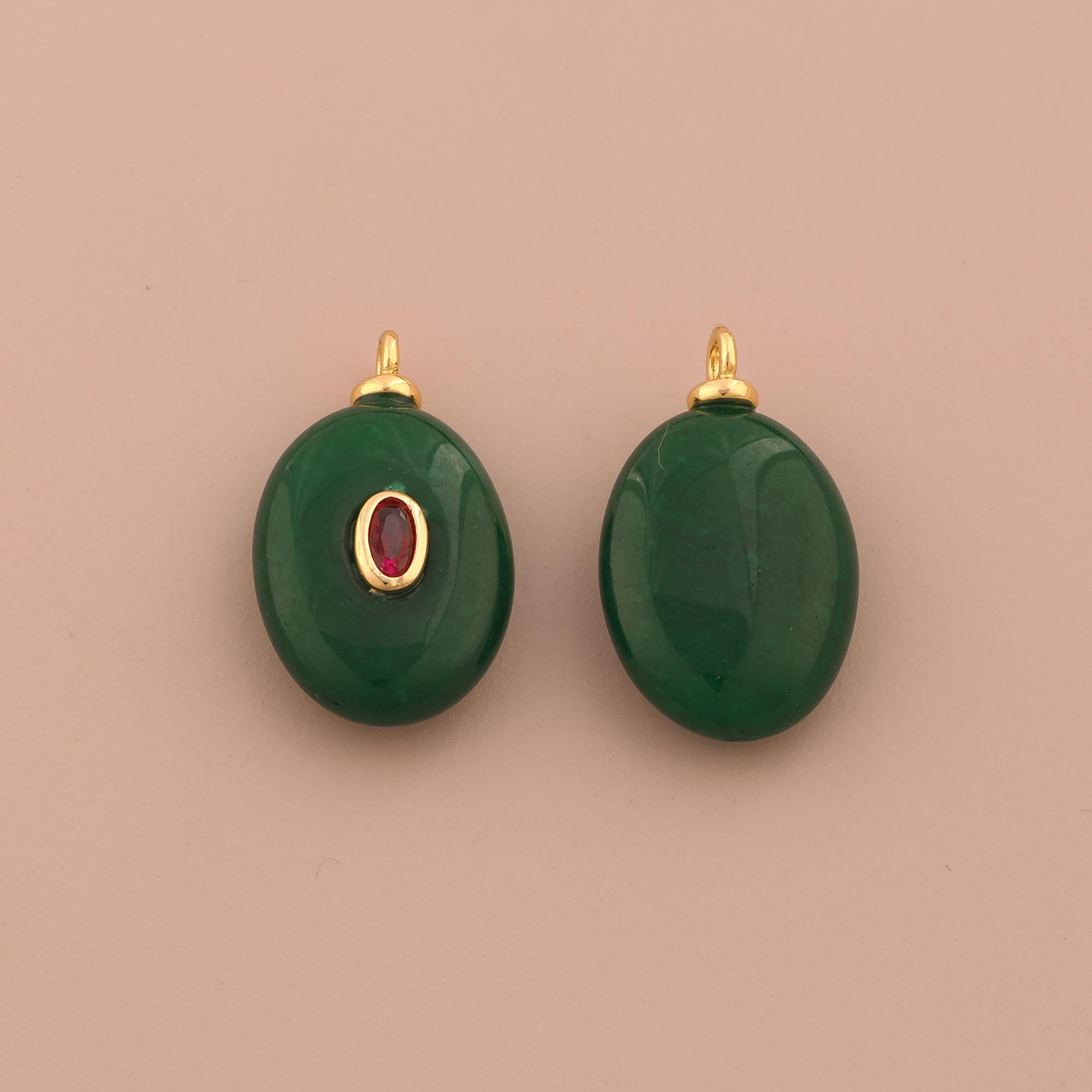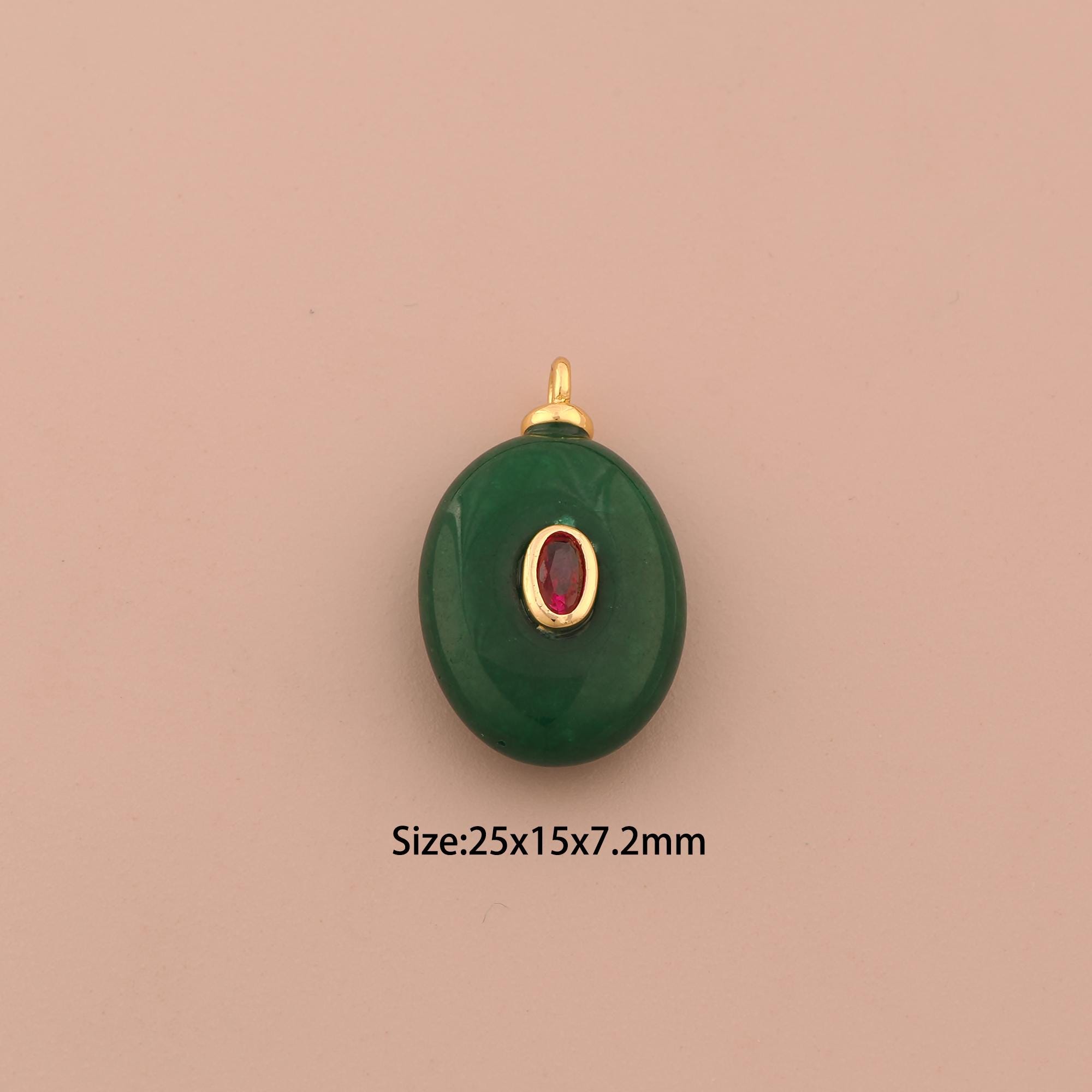18K Gold Energy Stone Charms,Natural Stone Charms Pendants,Green Jade Charm for DIY Jewelry Making Supply