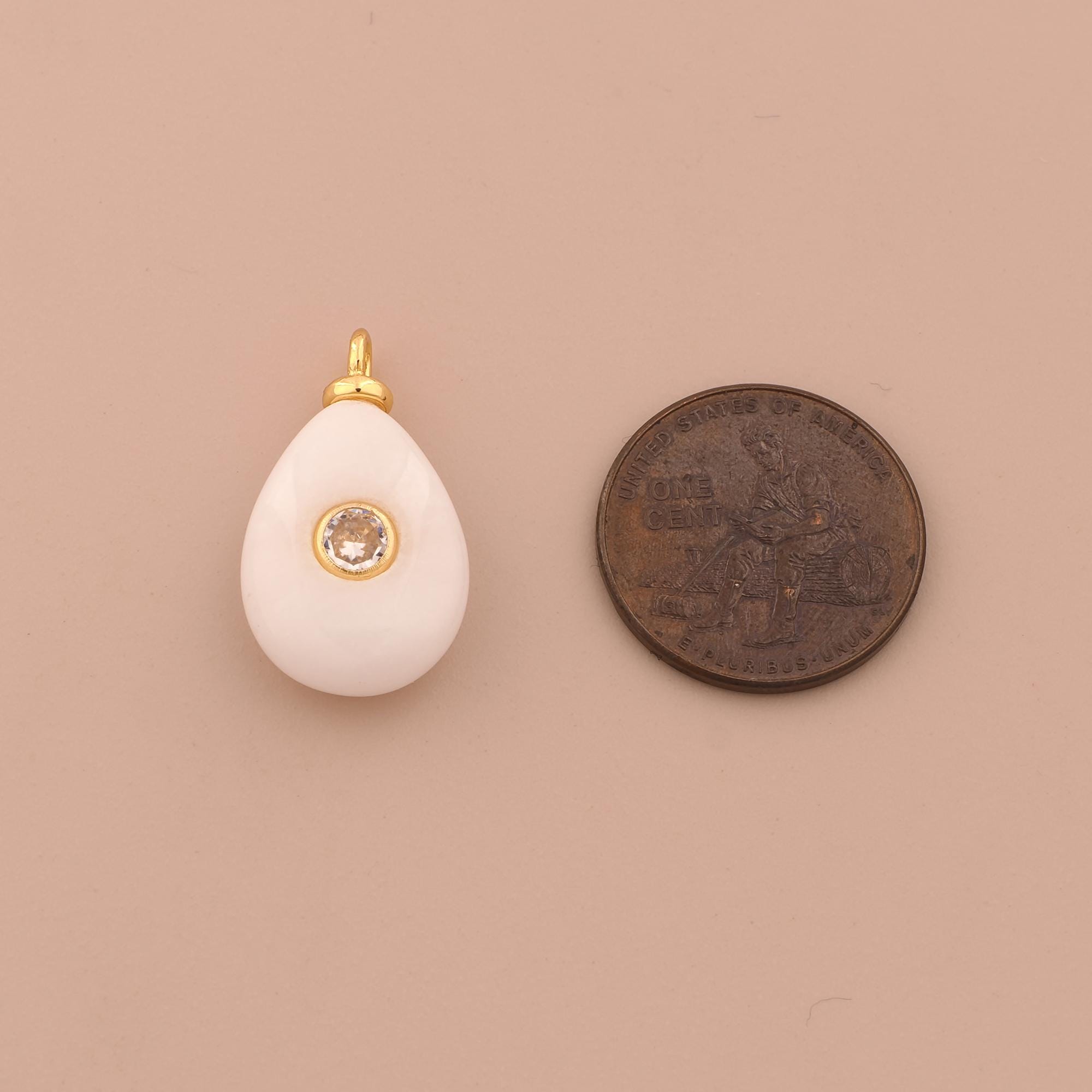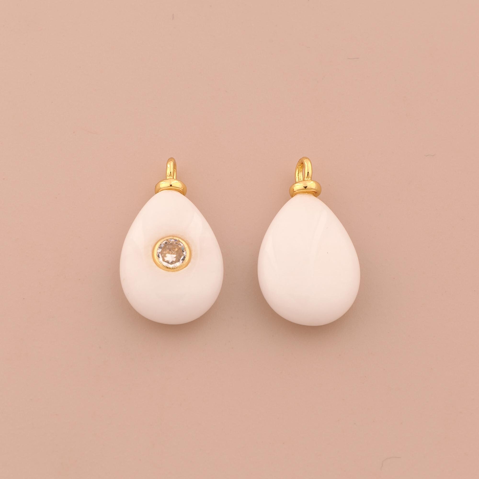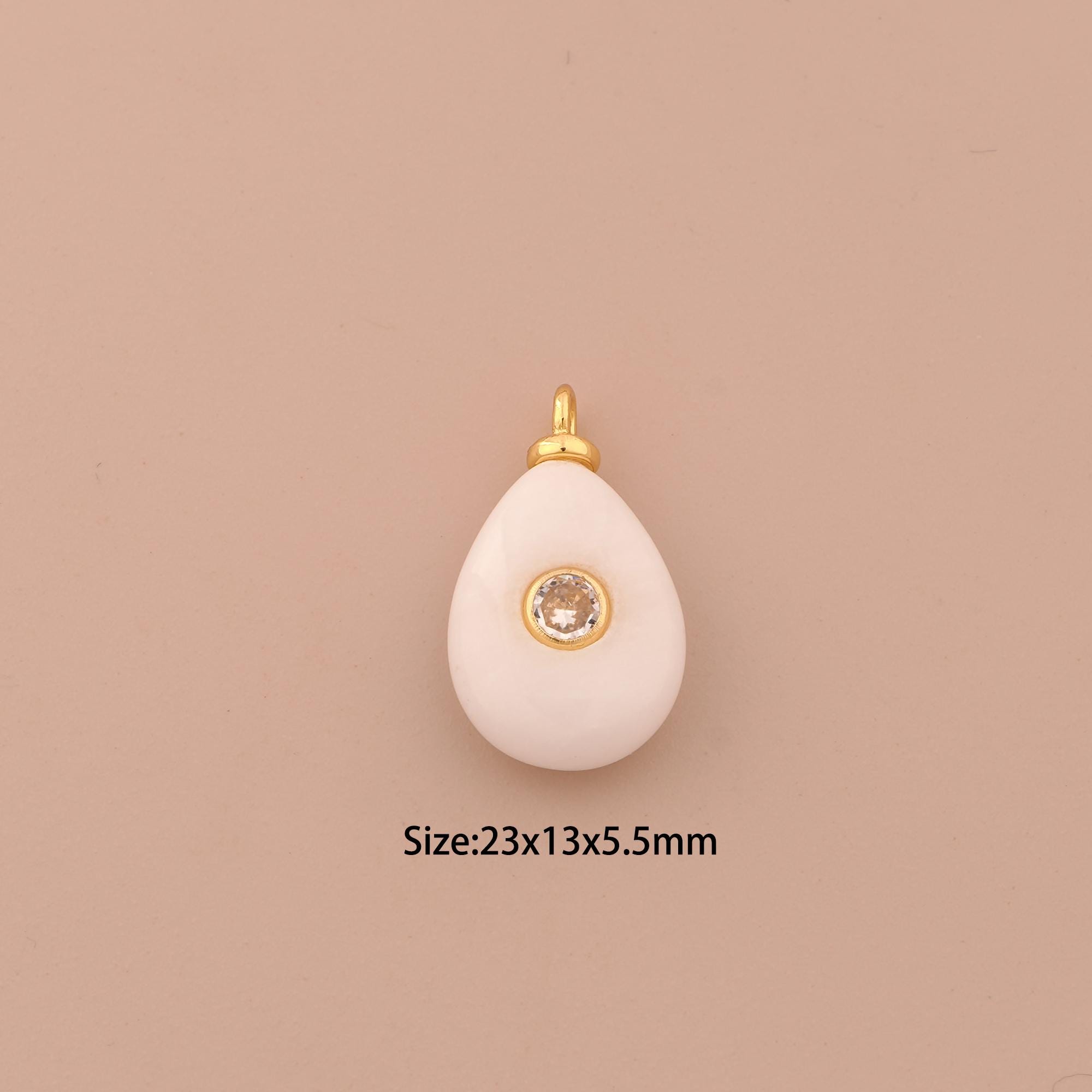 18K Gold Energy Stone Charms,Natural Stone Charms Pendants,White Jade Charm for DIY Jewelry Making Supply
