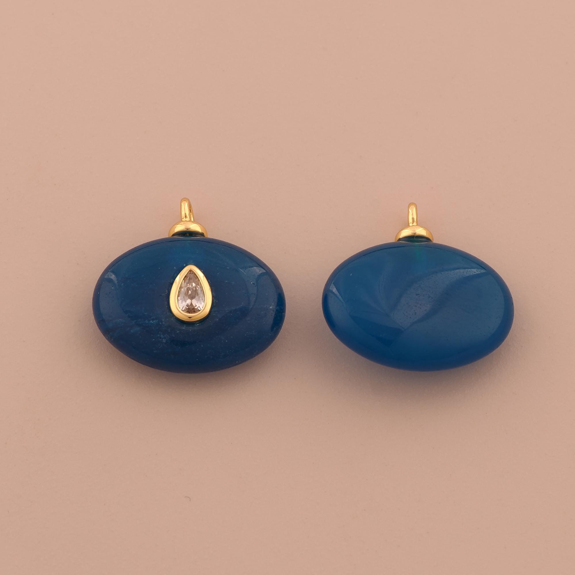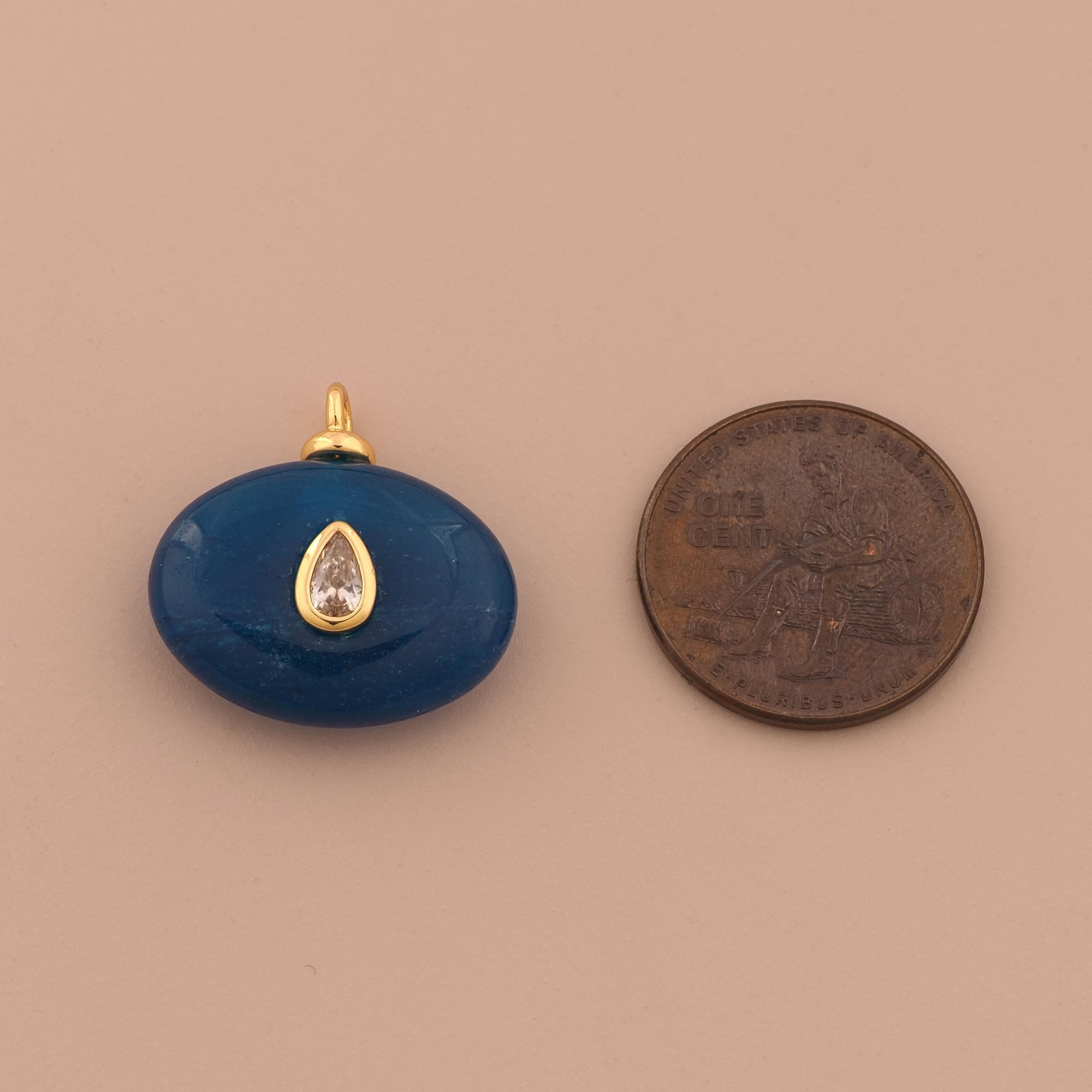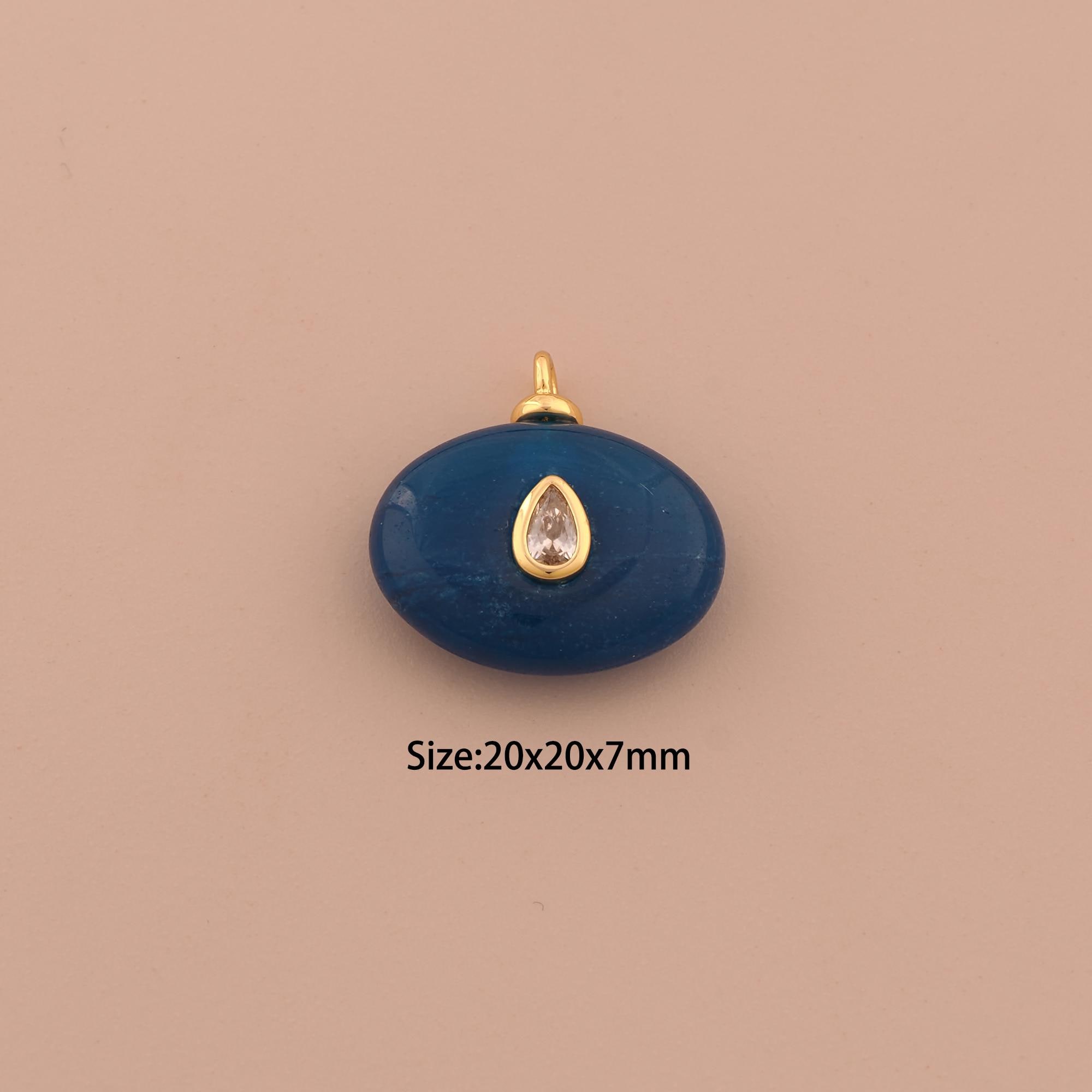 18K Gold Energy Stone Charms,Natural Stone Charms Pendants,Blue Jade Charm for DIY Jewelry Making Supply