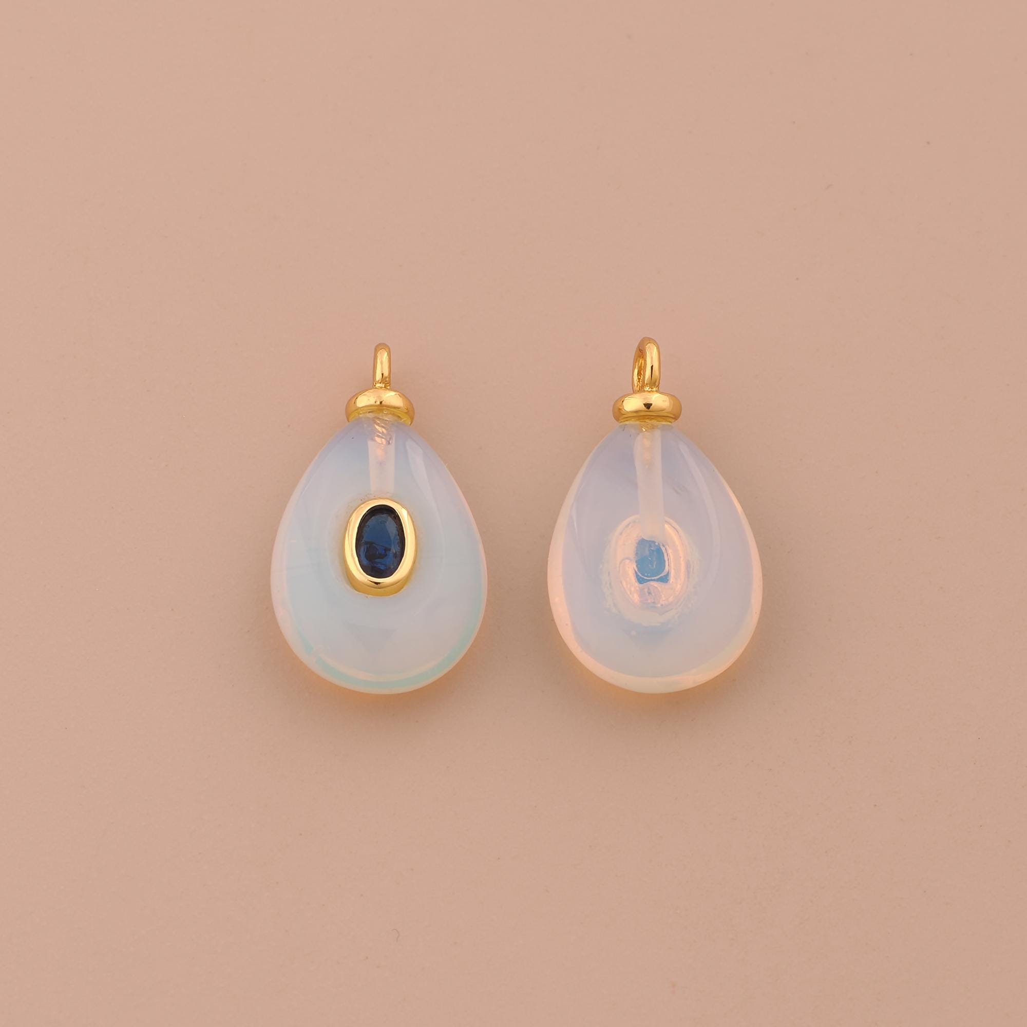 18K Gold Energy Stone Charms,Natural Stone Charms Pendants,Opal Charm for DIY Jewelry Making Supply
