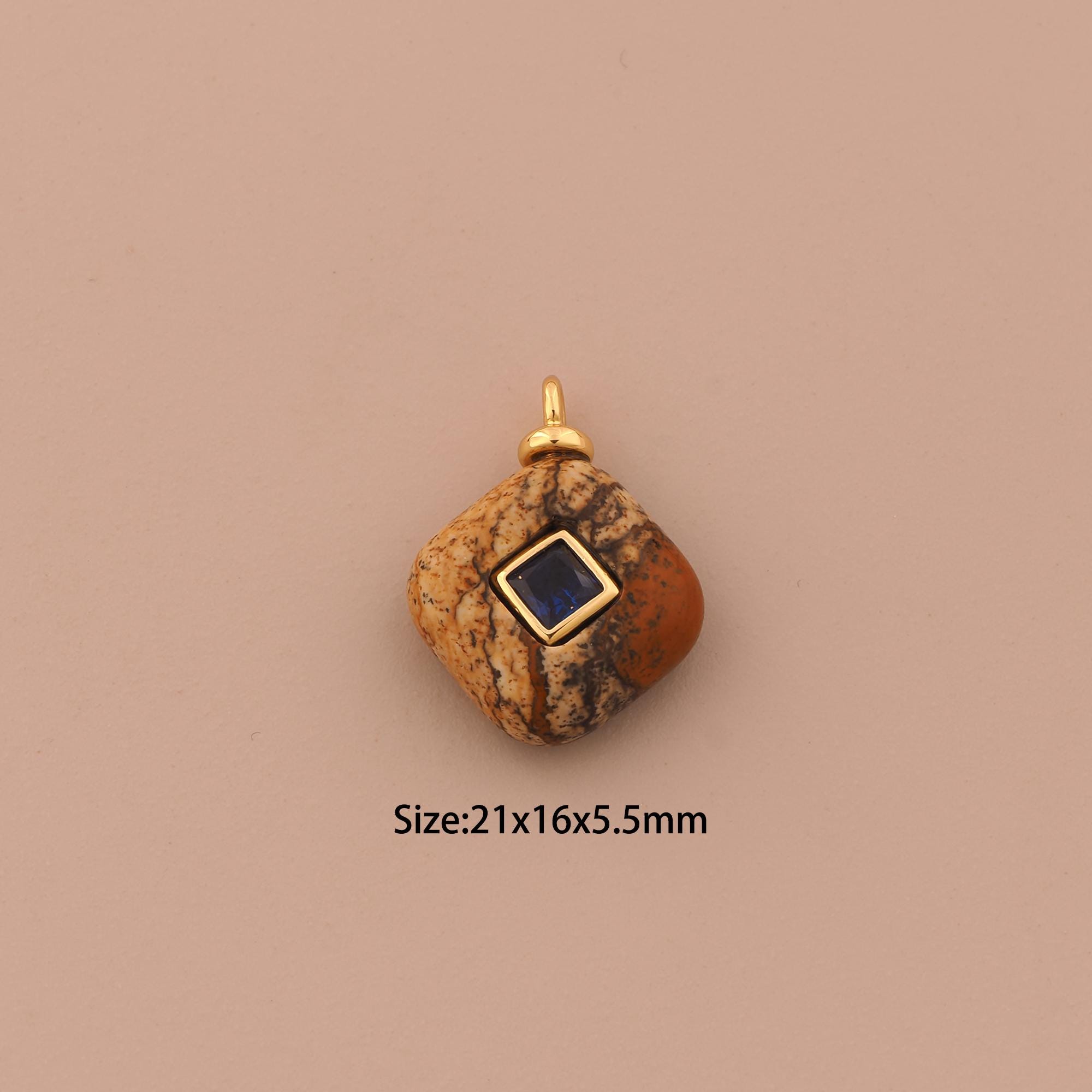 18K Gold Energy Stone Charms,Natural Stone Charms Pendants,Stone Charm for DIY Jewelry Making Supply