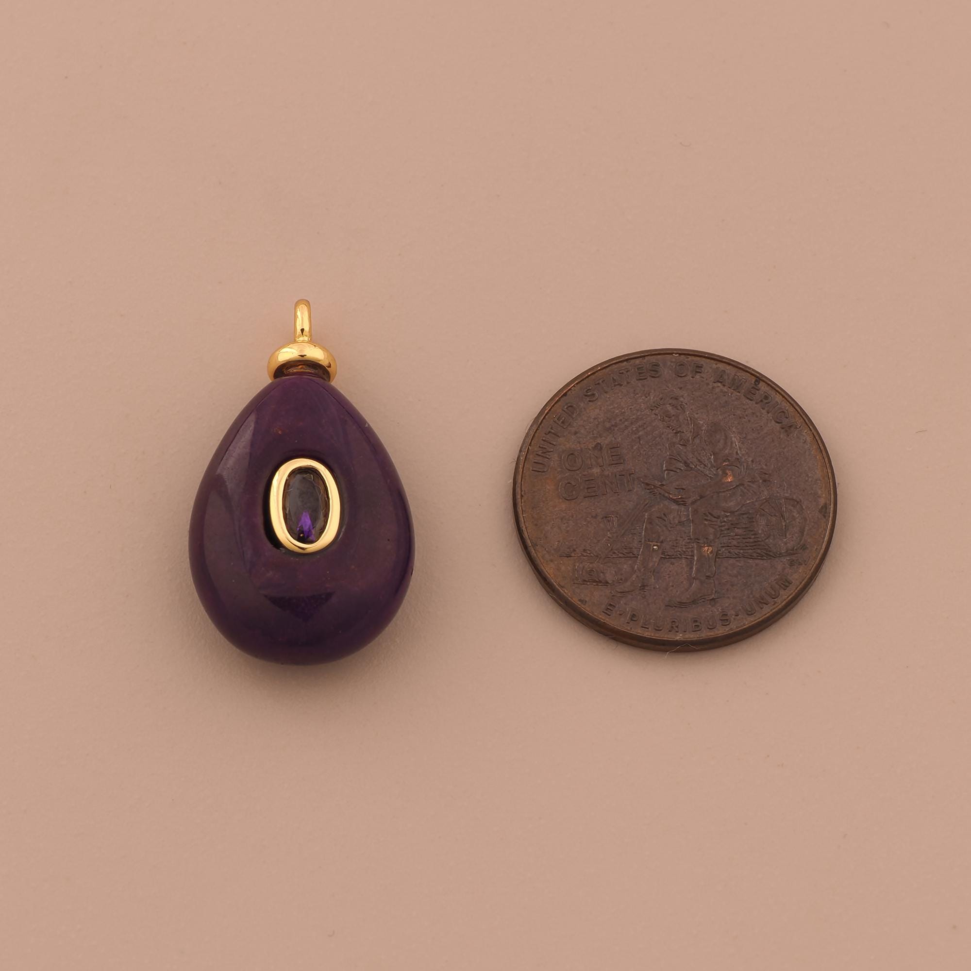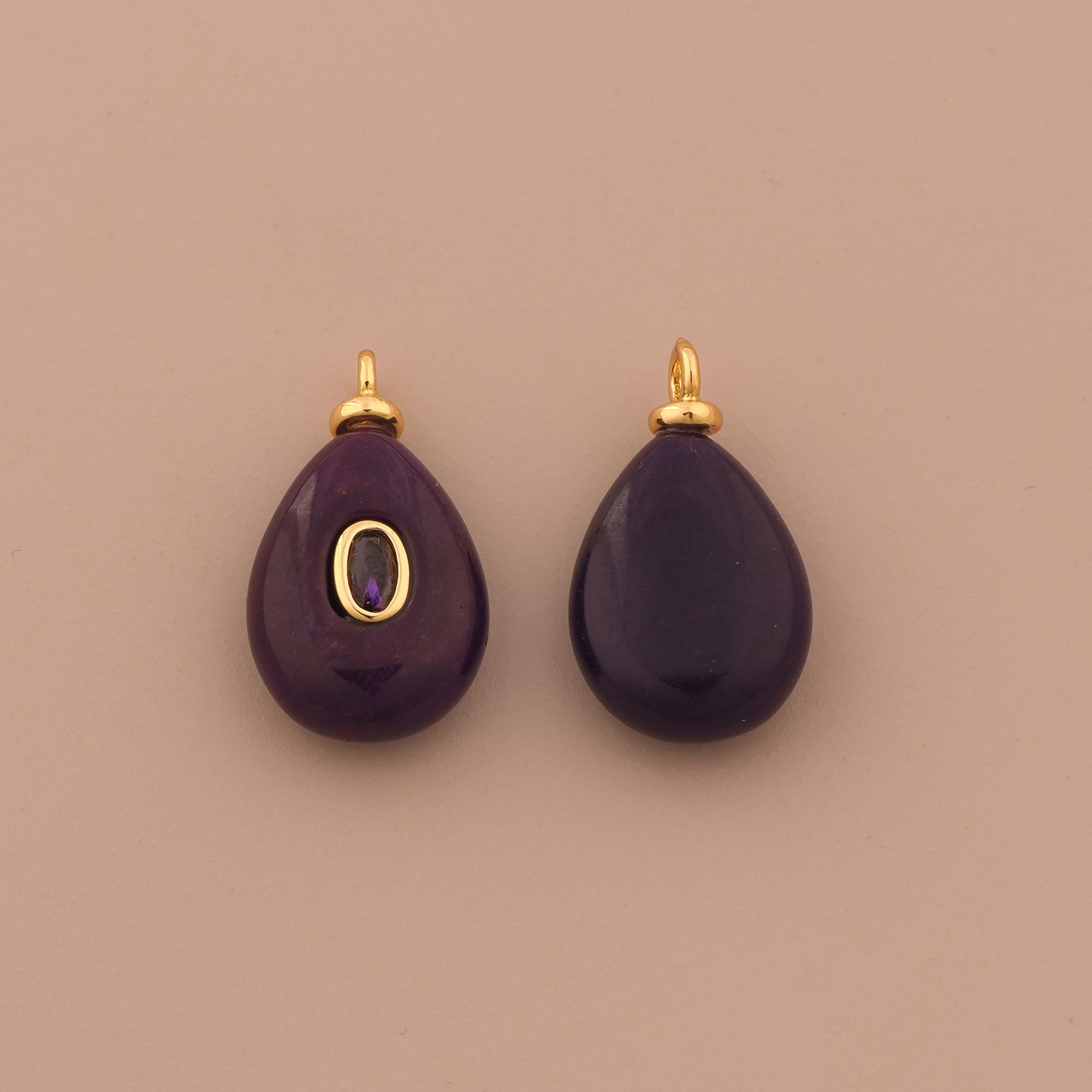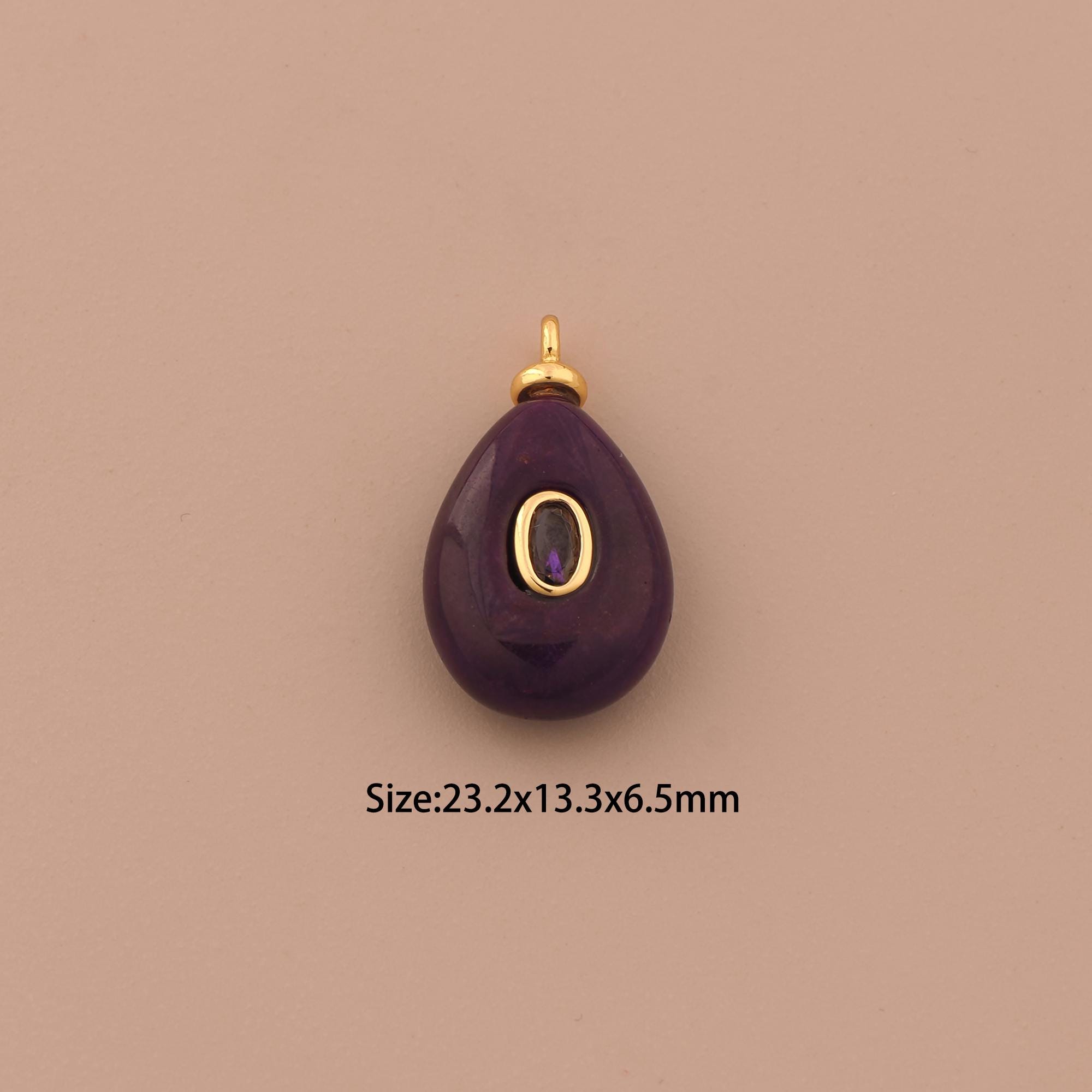 18K Gold Energy Stone Charms,Natural Stone Charms Pendants,Purple Jade Charm for DIY Jewelry Making Supply
