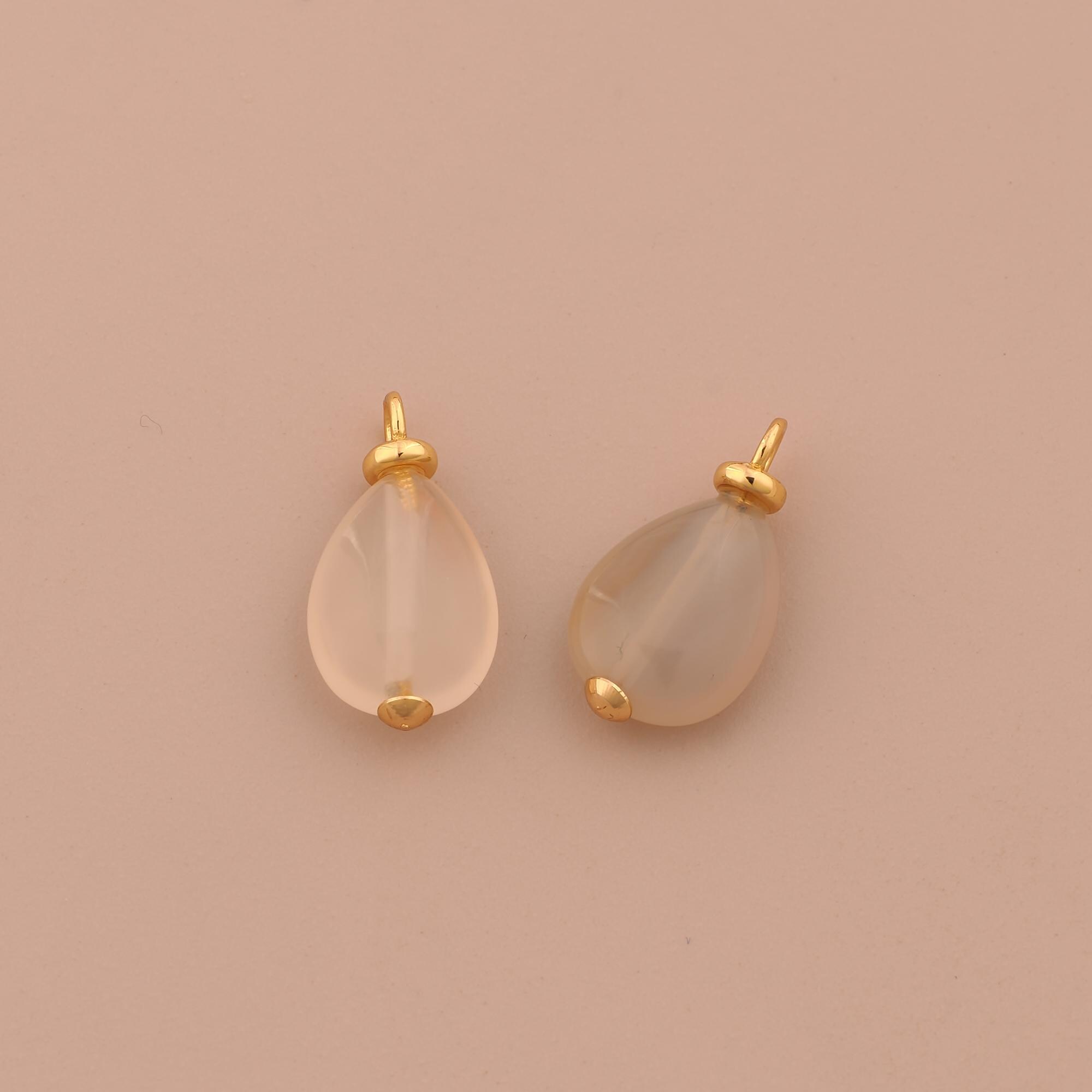 18K Gold Energy Stone Charms,Natural Stone Charms Pendants,Gray Agate Charm for DIY Jewelry Making Supply