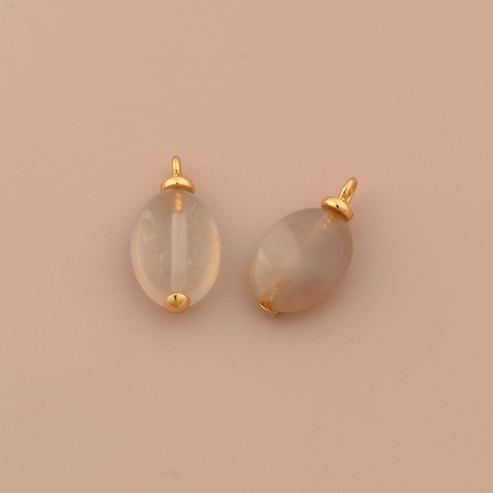 18K Gold Energy Stone Charms,Natural Stone Charms Pendants,Gray Agate Charm for DIY Jewelry Making Supply