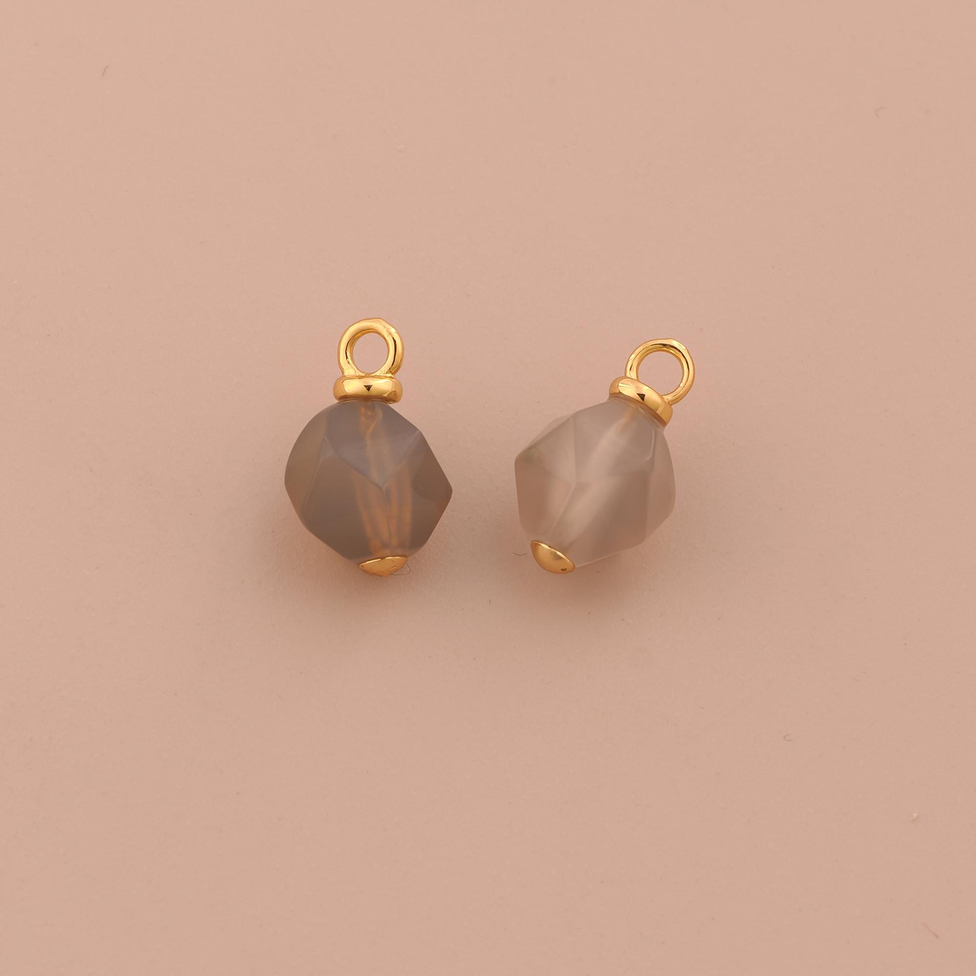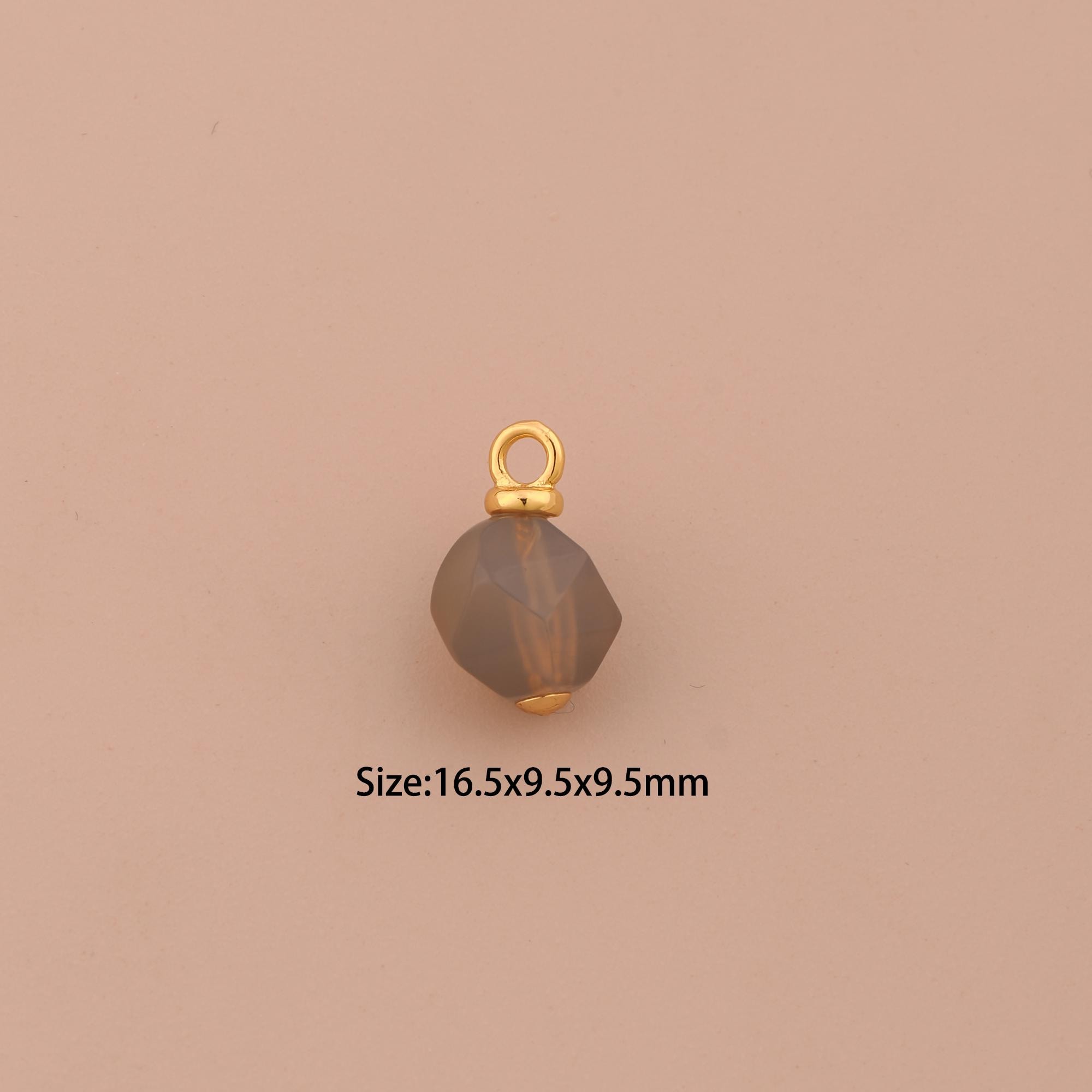 18K Gold Energy Stone Charms,Natural Stone Charms Pendants,Gray Agate Charm for DIY Jewelry Making Supply