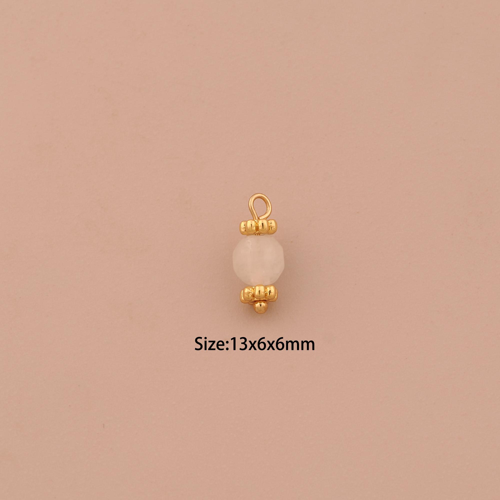 18K Gold Energy Stone Charms,Natural Stone Charms Pendants,White Jade Charm for DIY Jewelry Making Supply