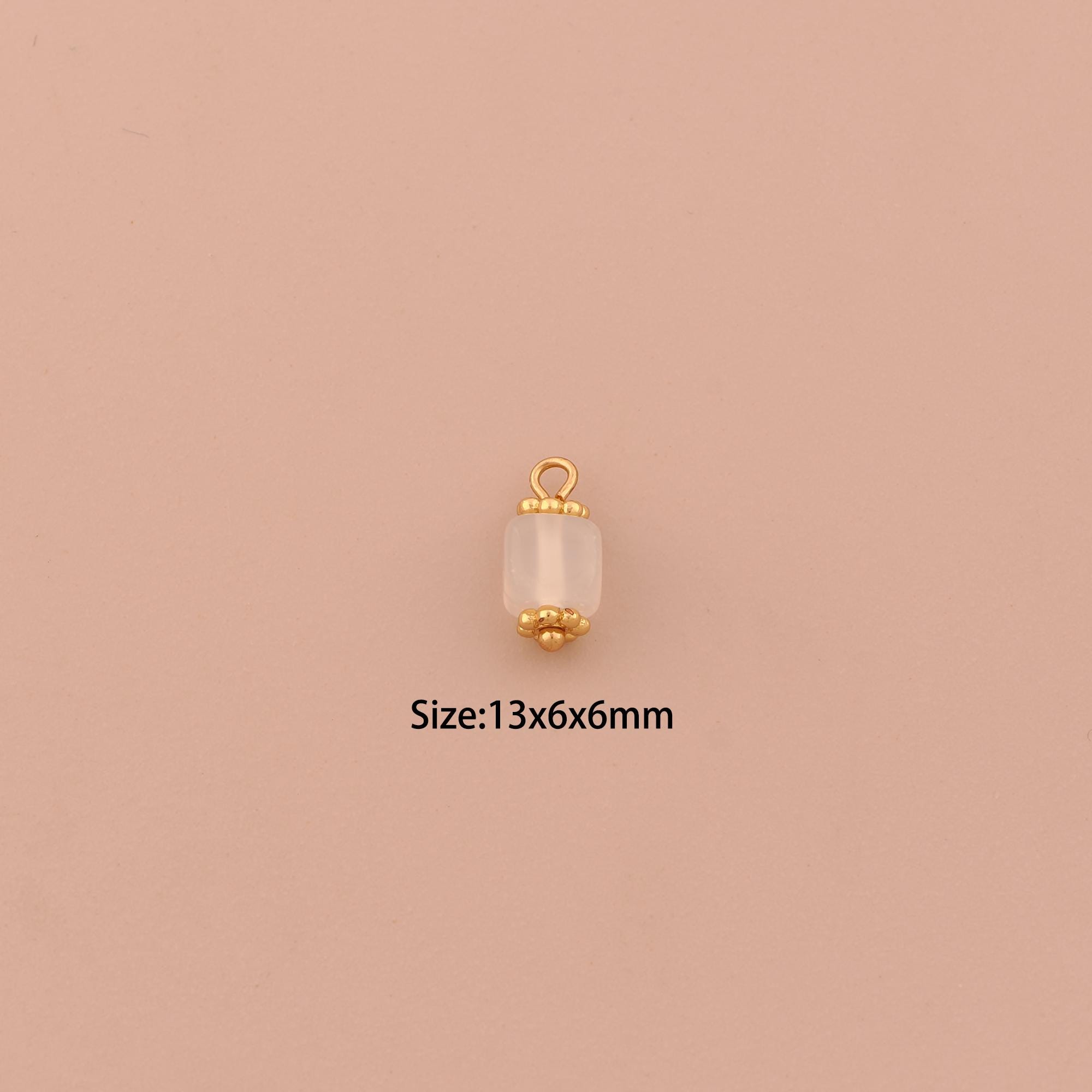 18K Gold Energy Stone Charms,Natural Stone Charms Pendants,White Agate Charm for DIY Jewelry Making Supply
