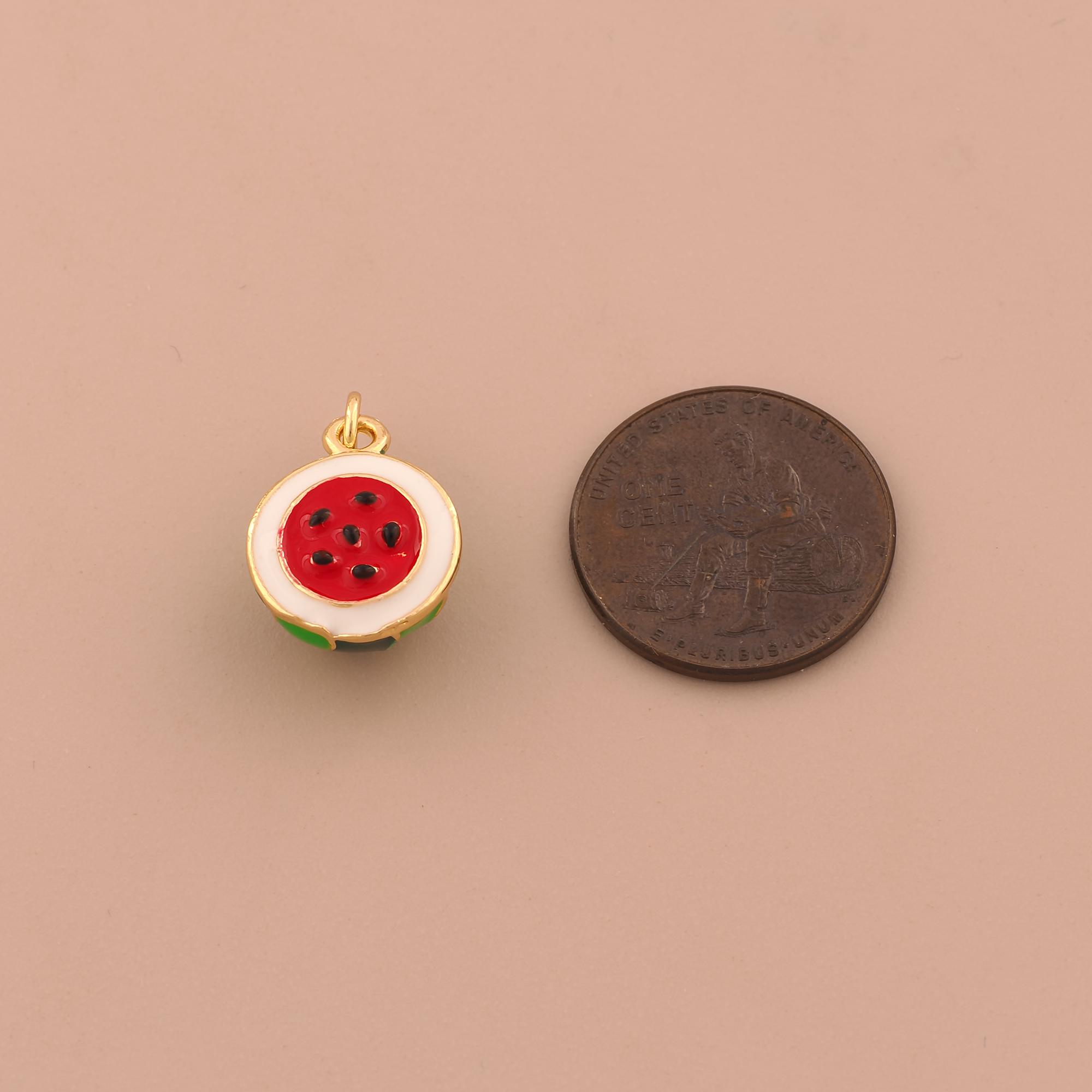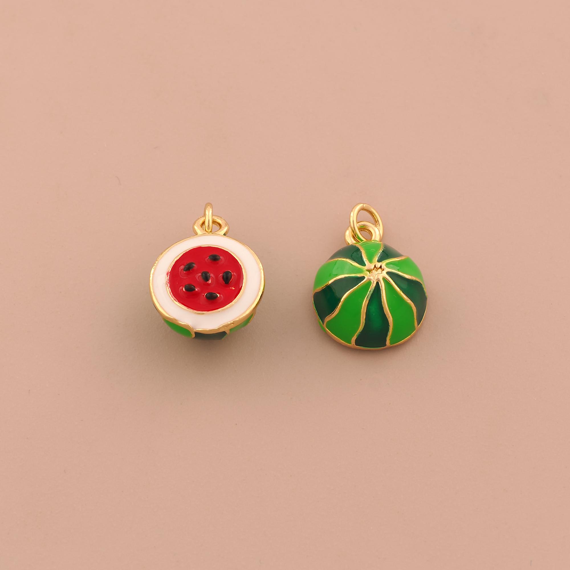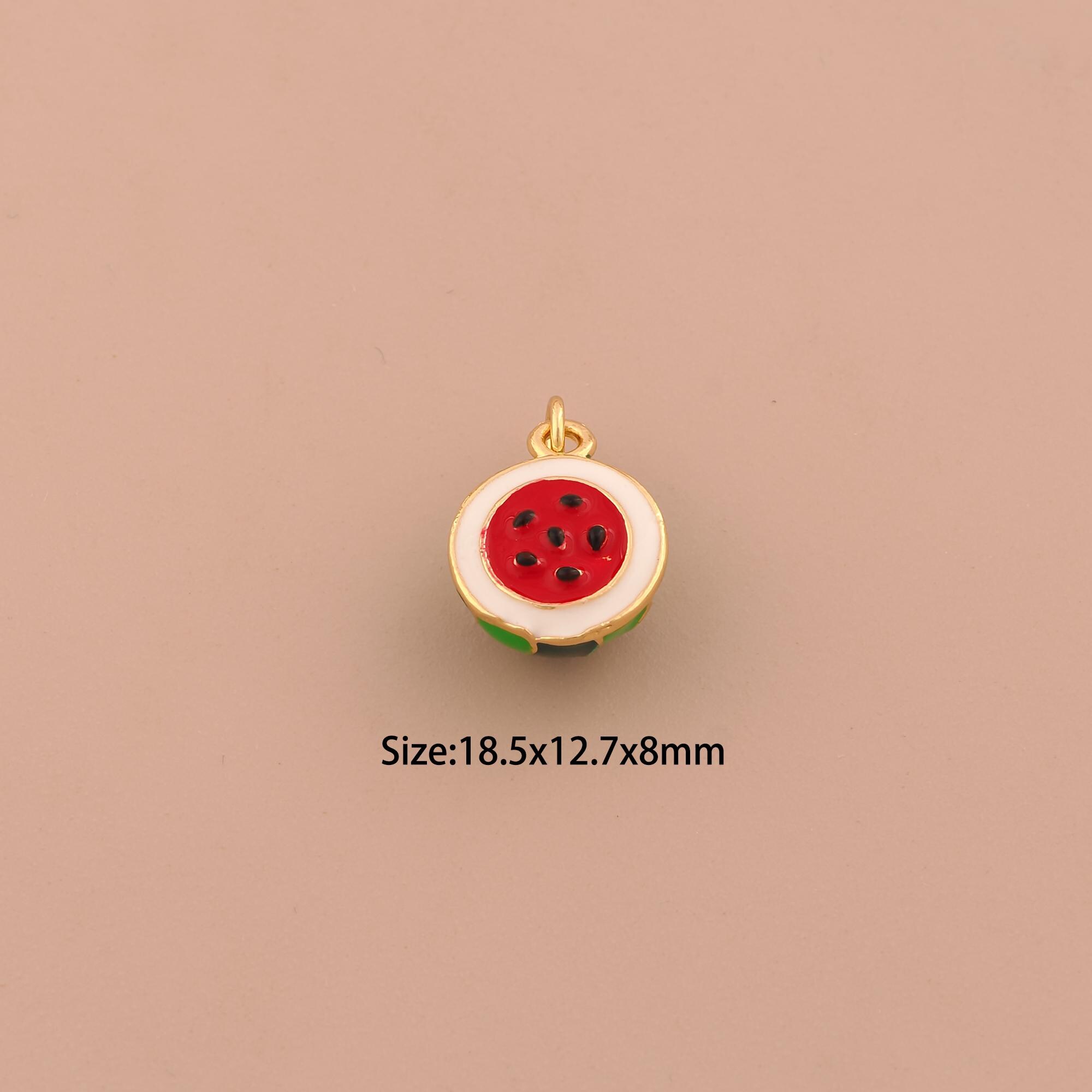 18K Gold Watermelon Charms,Enamel Fruit Charms Pendants,Watermelon Charm for DIY Jewelry Making Supply