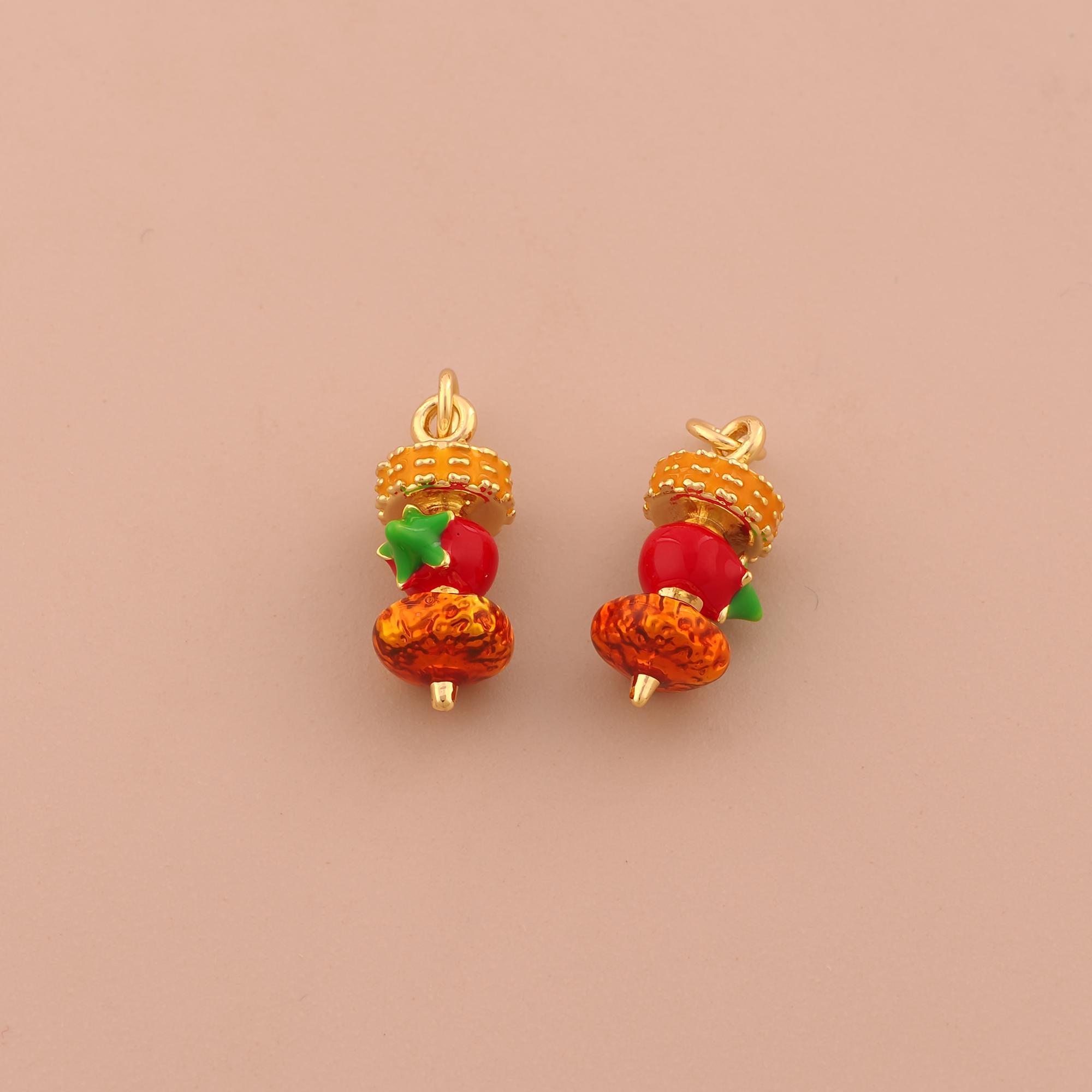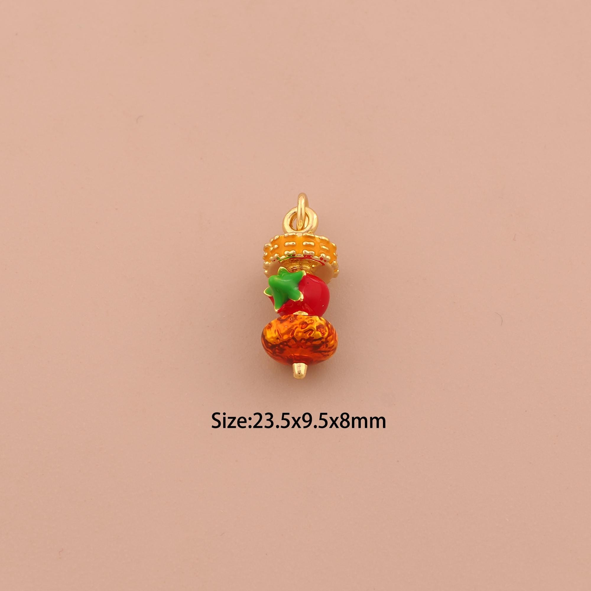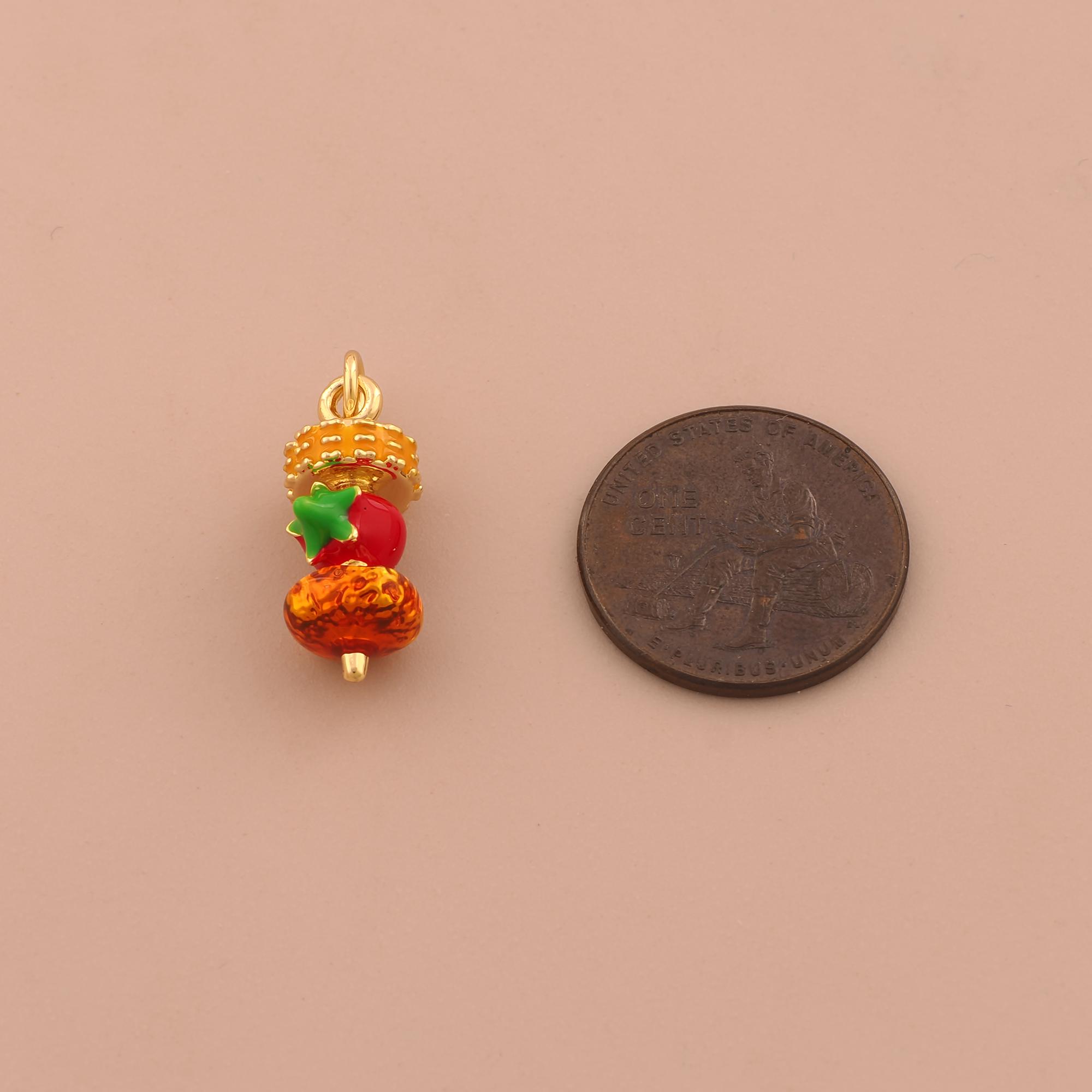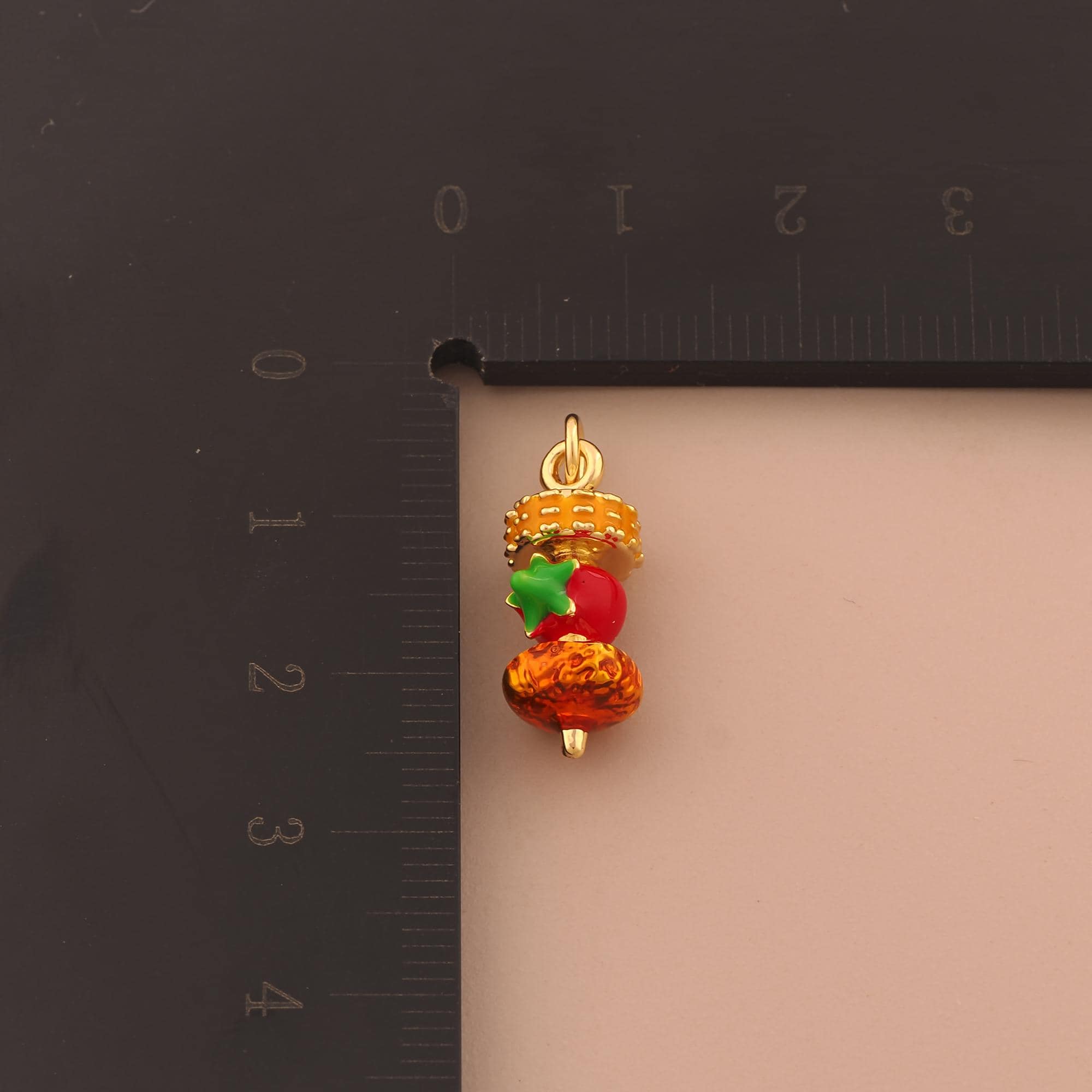 18K Gold Barbecue Charms,Enamel Kebab Charms Pendants,BBQ Charm for DIY Jewelry Making Supply