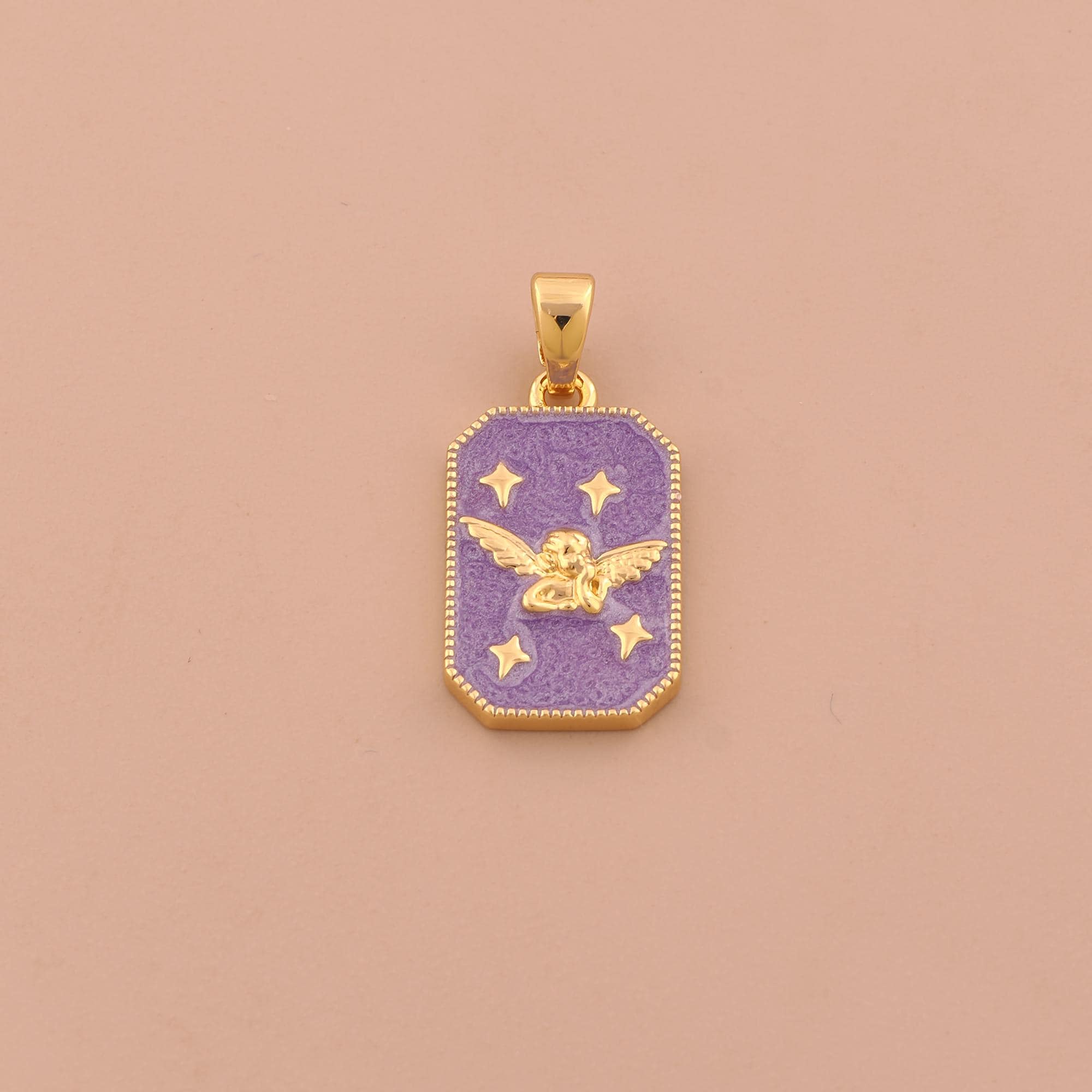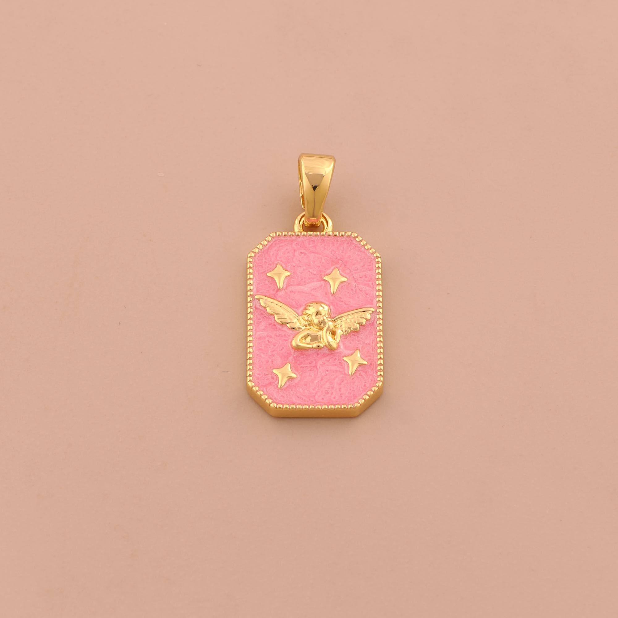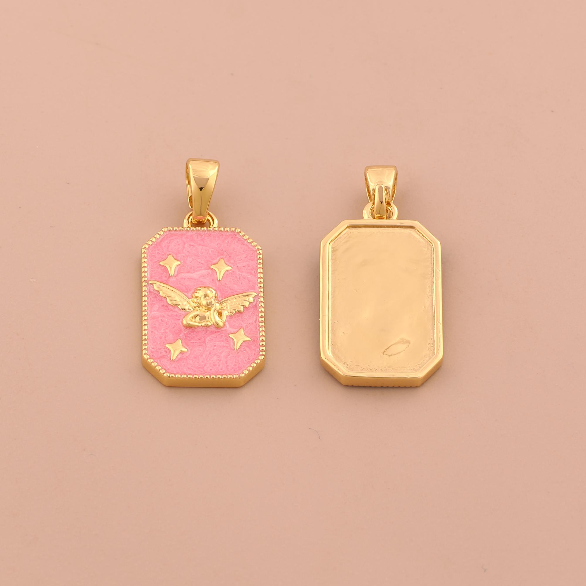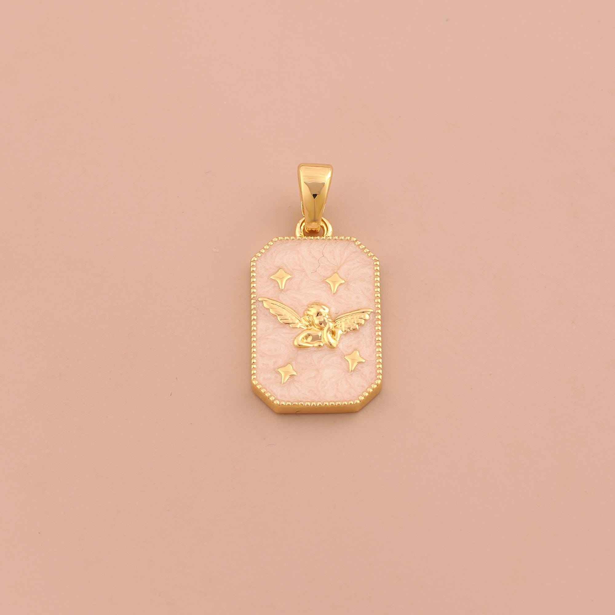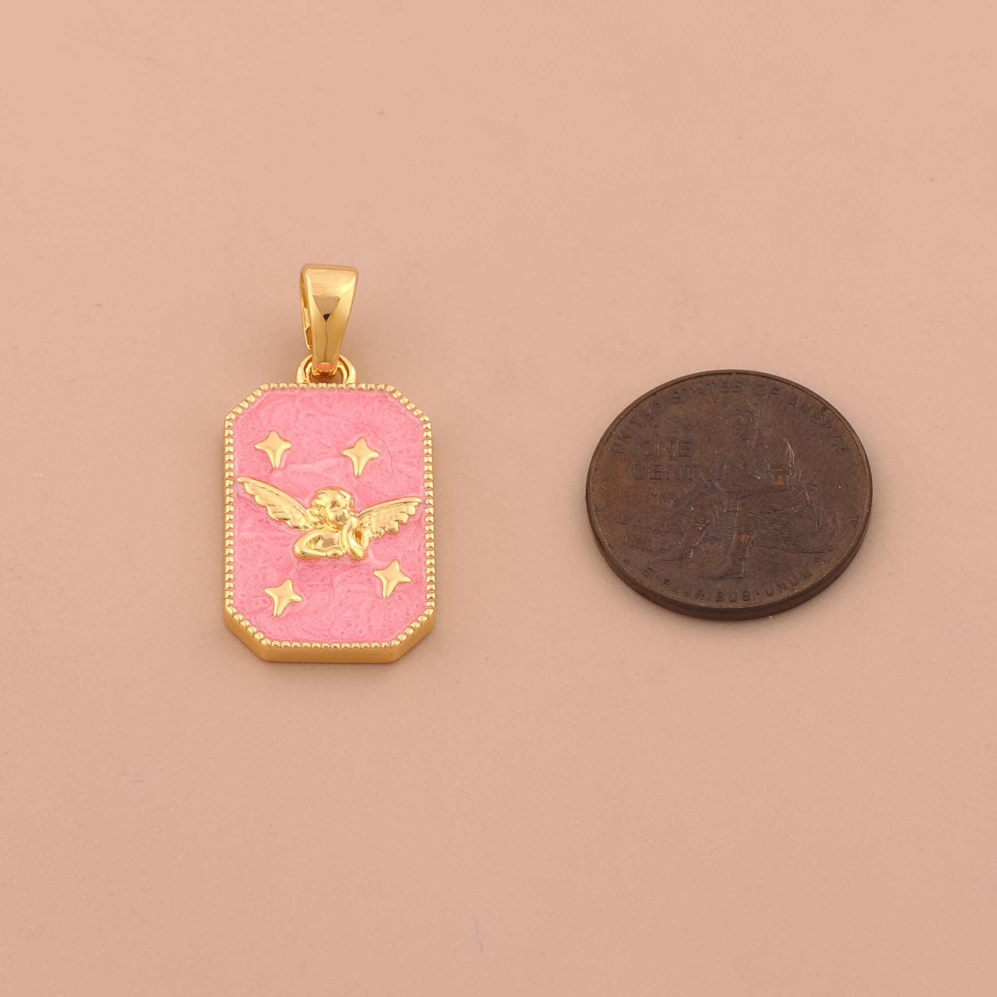 18K Gold Angel Charms,Enamel Cupid Charms Pendants,Angel Wings Charm for DIY Jewelry Making Supply