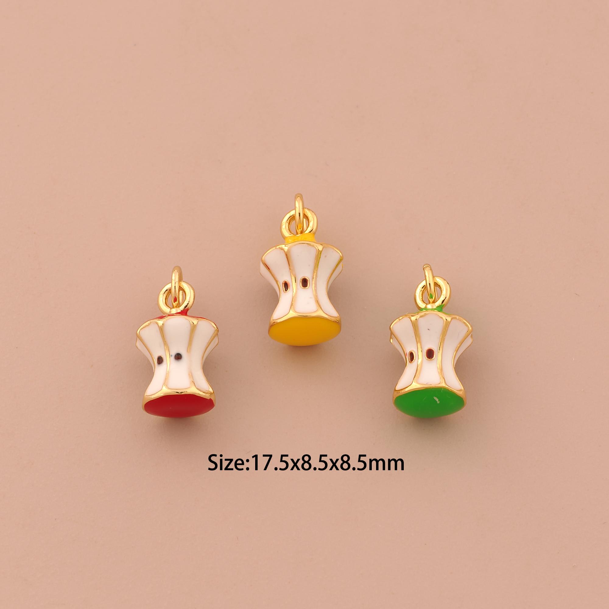 18K Gold Apple Charms,Enamel Apple Core Charms Pendants,Fruit Charm for DIY Jewelry Making Supply