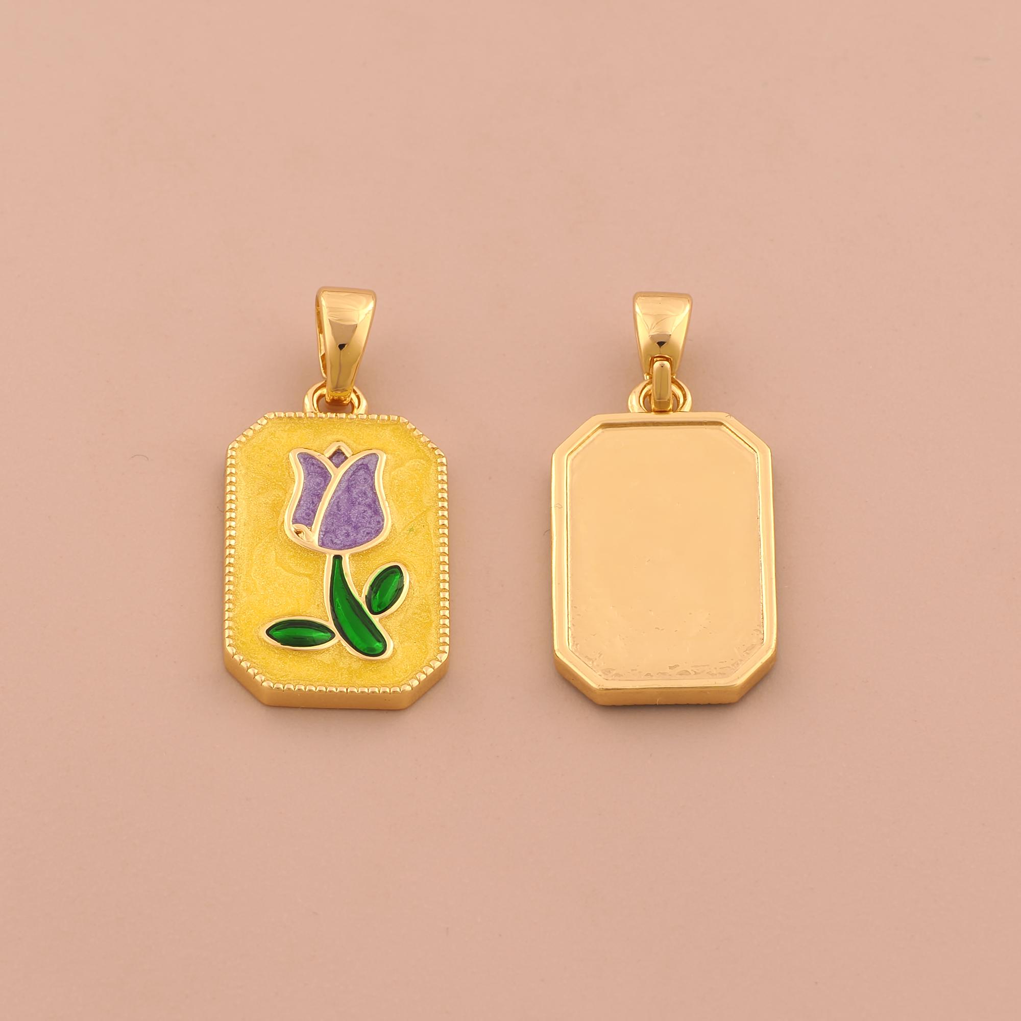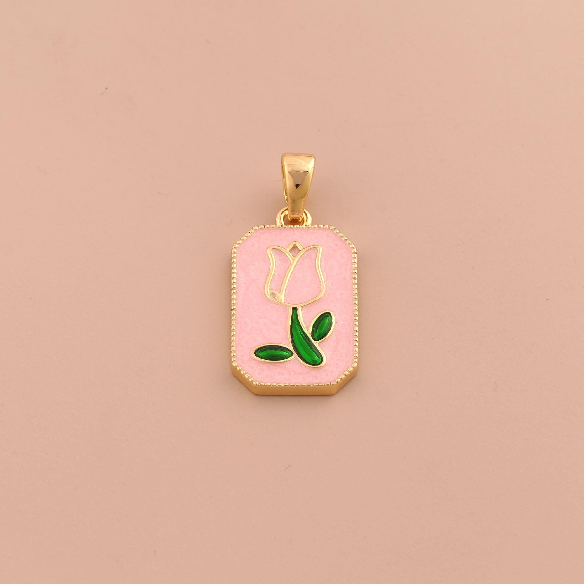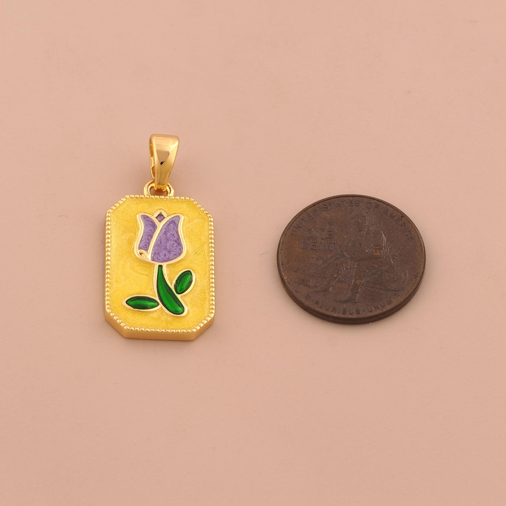18K Gold Tulip Charms,Enamel Flower Charms Pendants,Square Charm for DIY Jewelry Making Supply