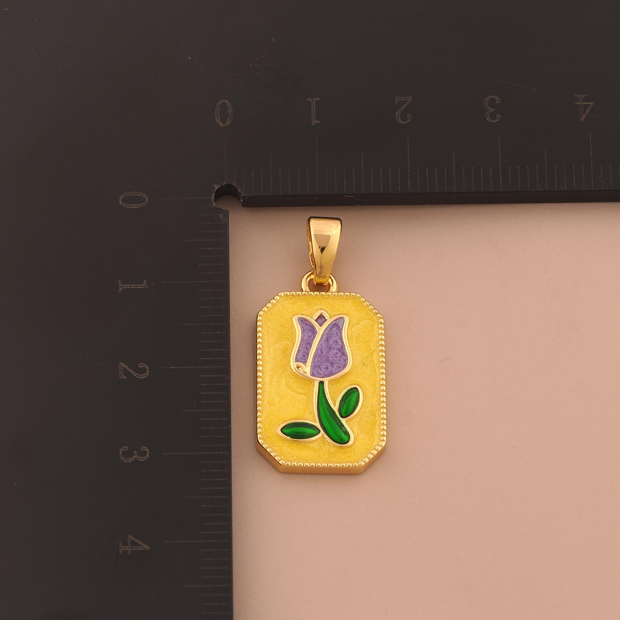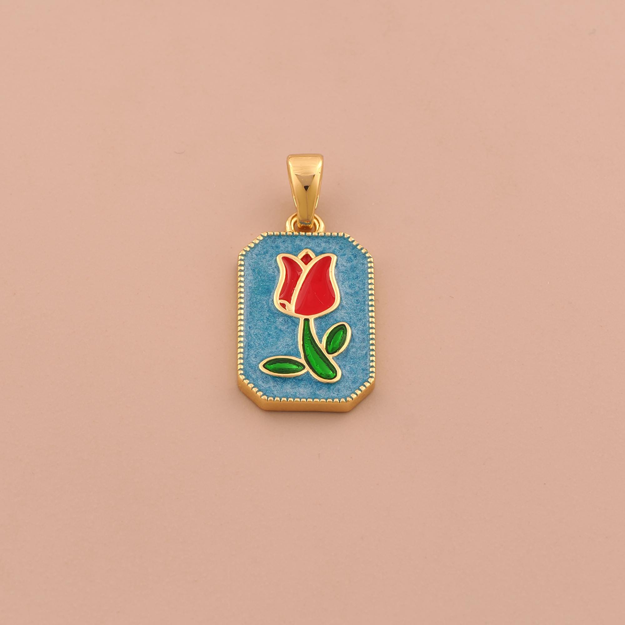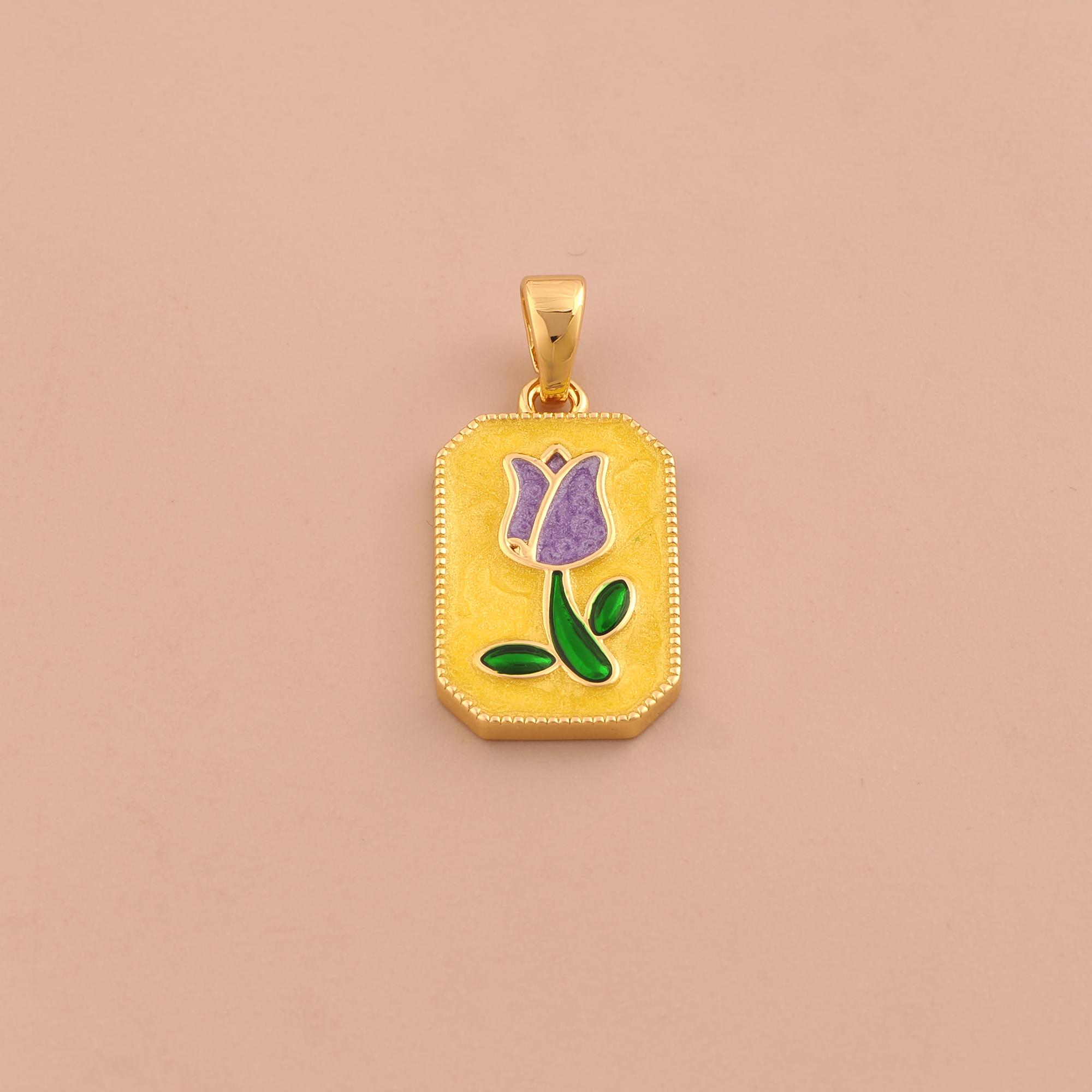 18K Gold Tulip Charms,Enamel Flower Charms Pendants,Square Charm for DIY Jewelry Making Supply