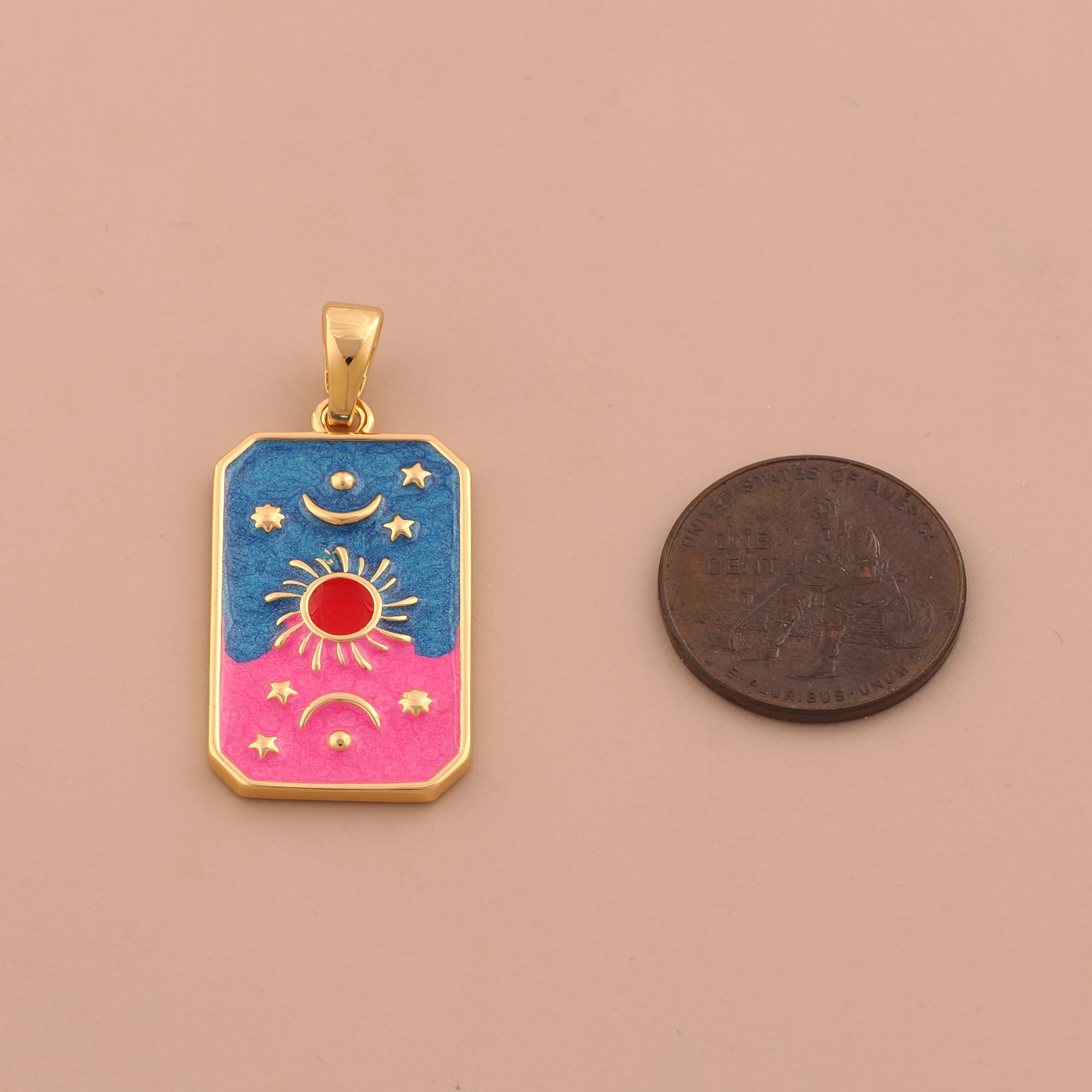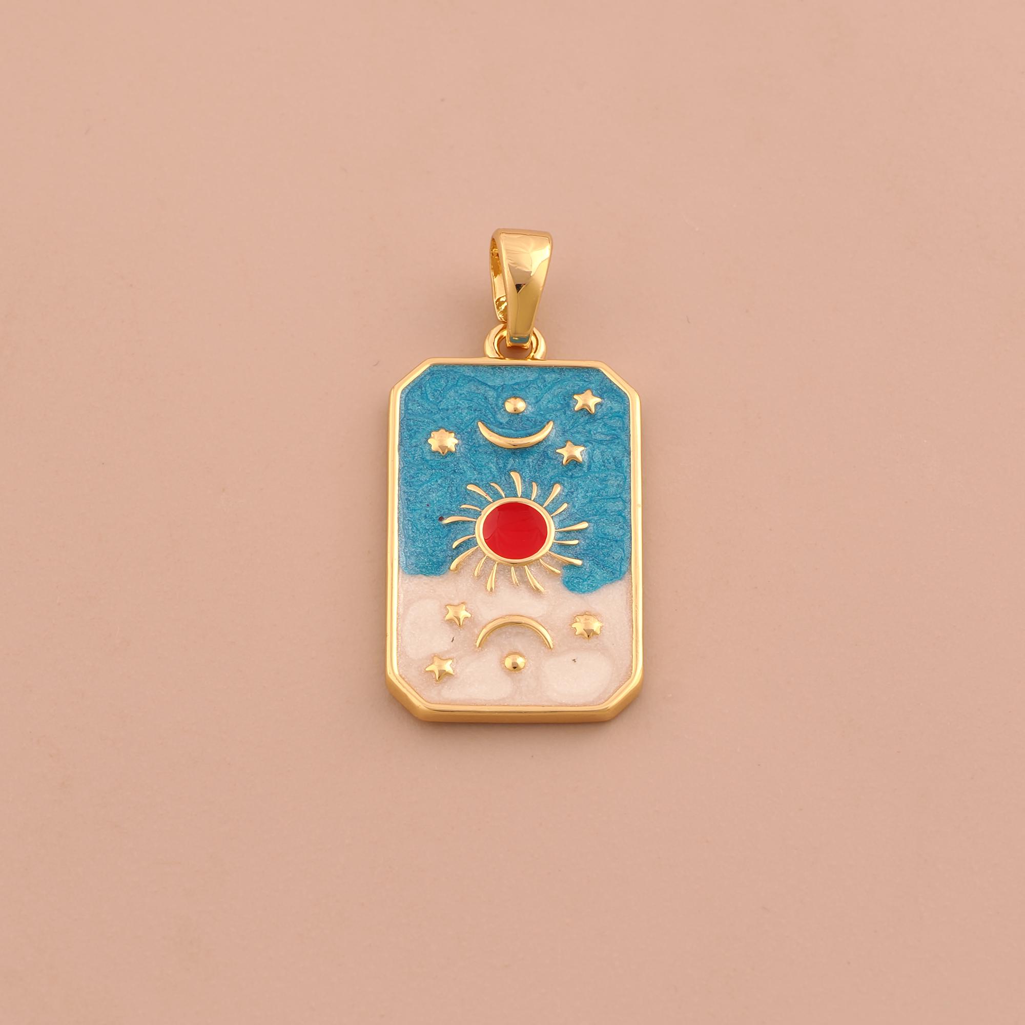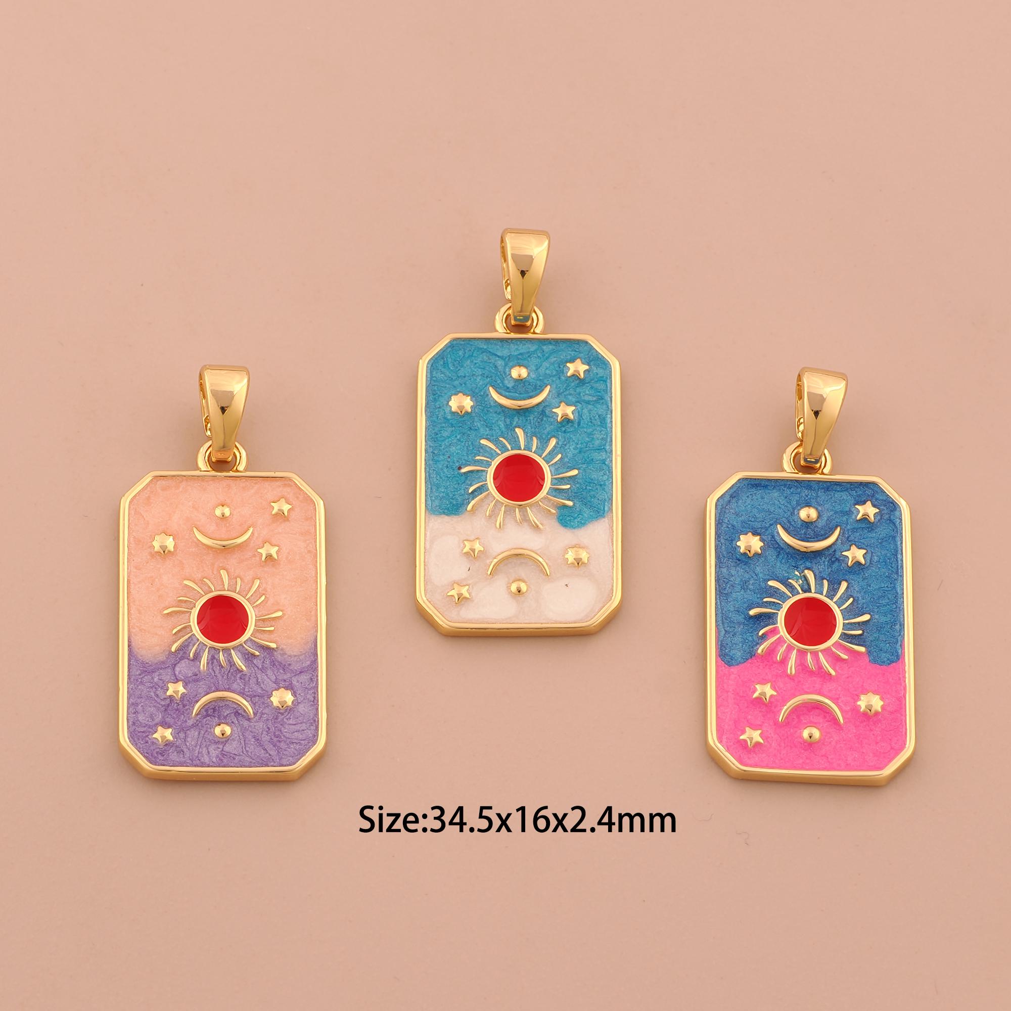18K Gold Sun Moon Star Charms,Enamel Celestial Charms Pendants,Square Charm for DIY Jewelry Making Supply