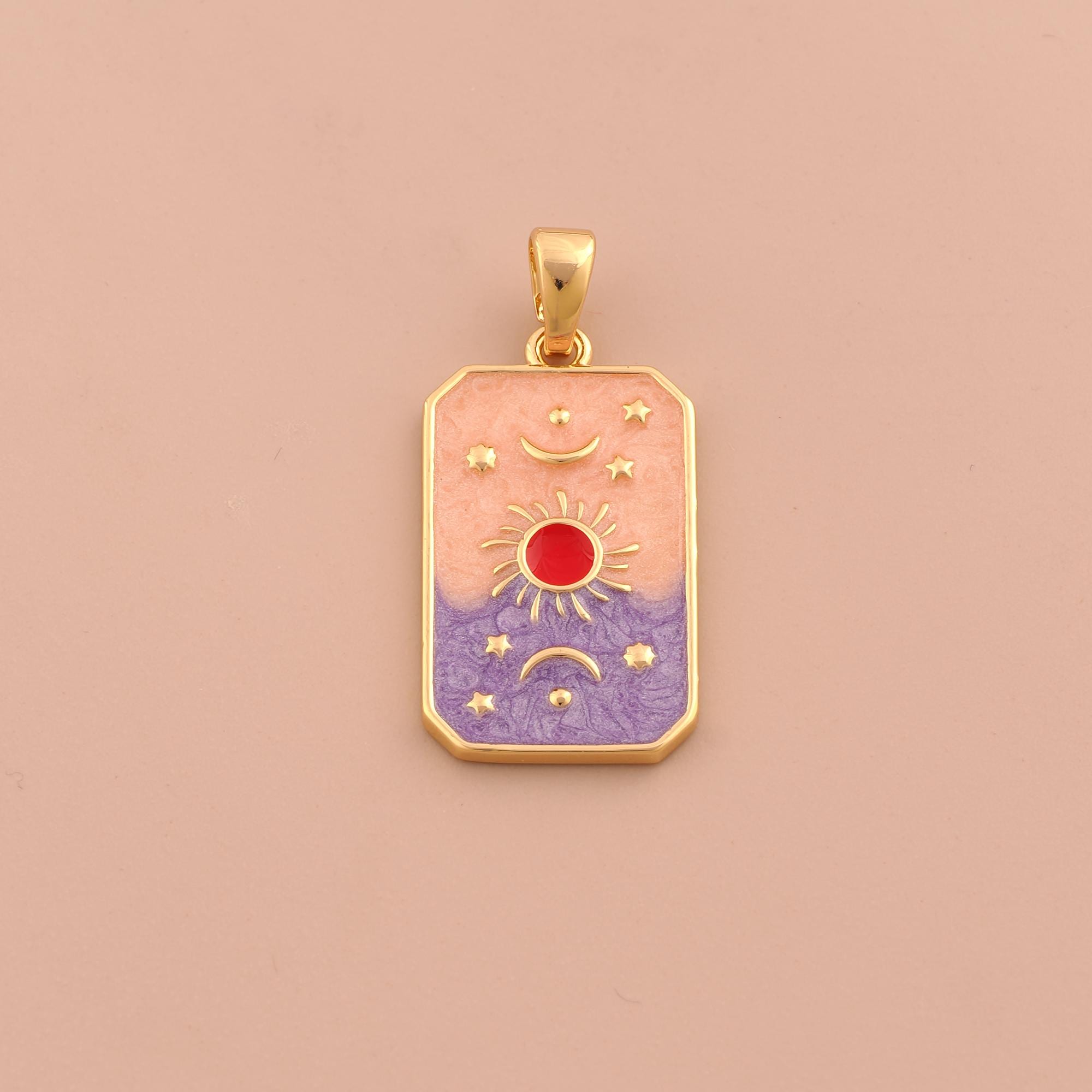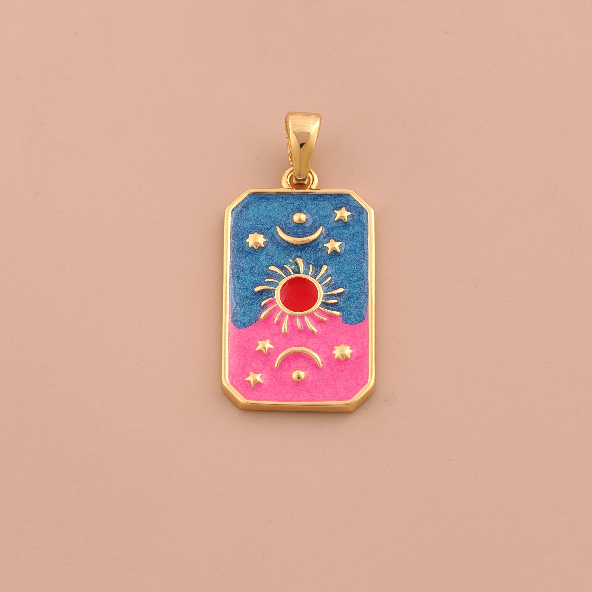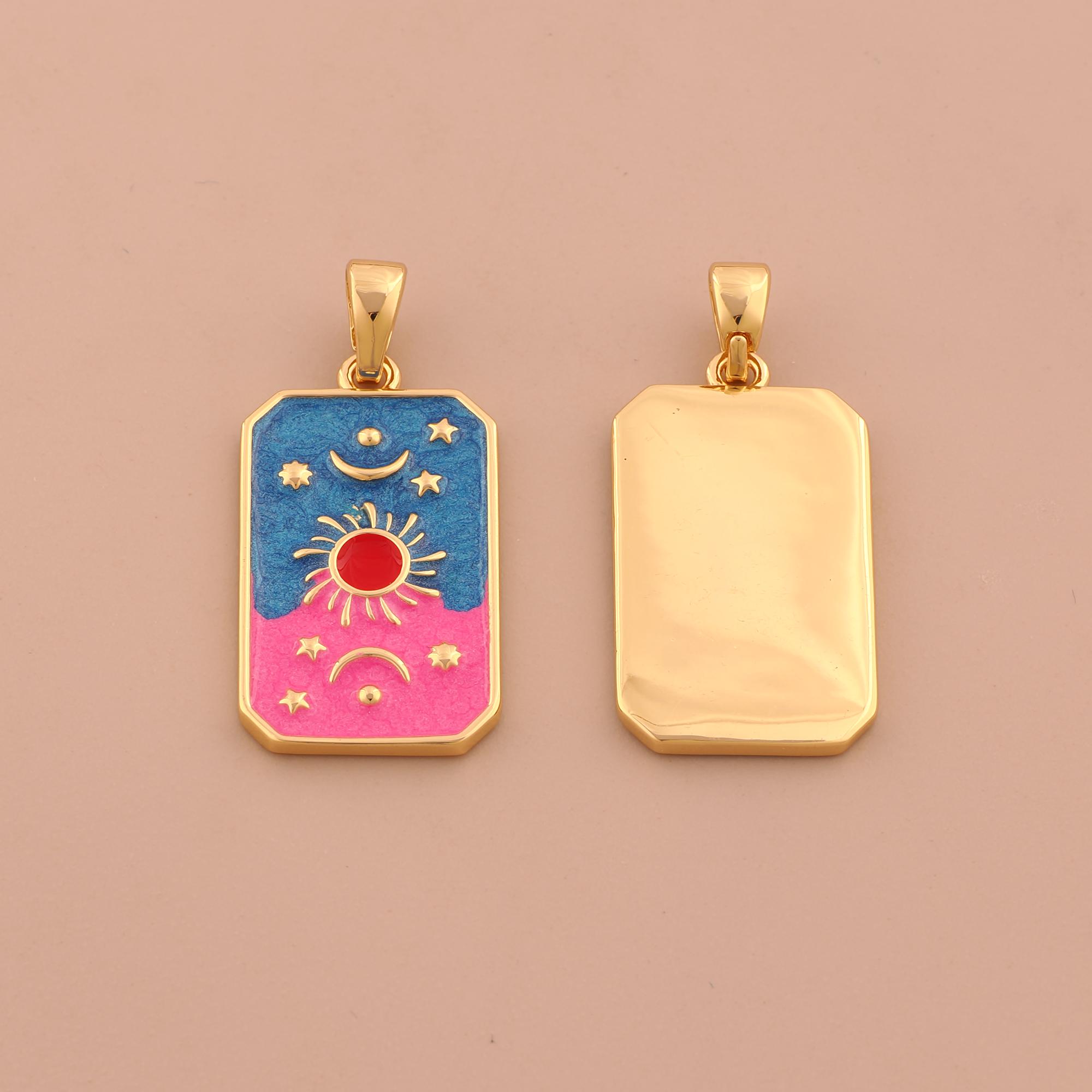18K Gold Sun Moon Star Charms,Enamel Celestial Charms Pendants,Square Charm for DIY Jewelry Making Supply