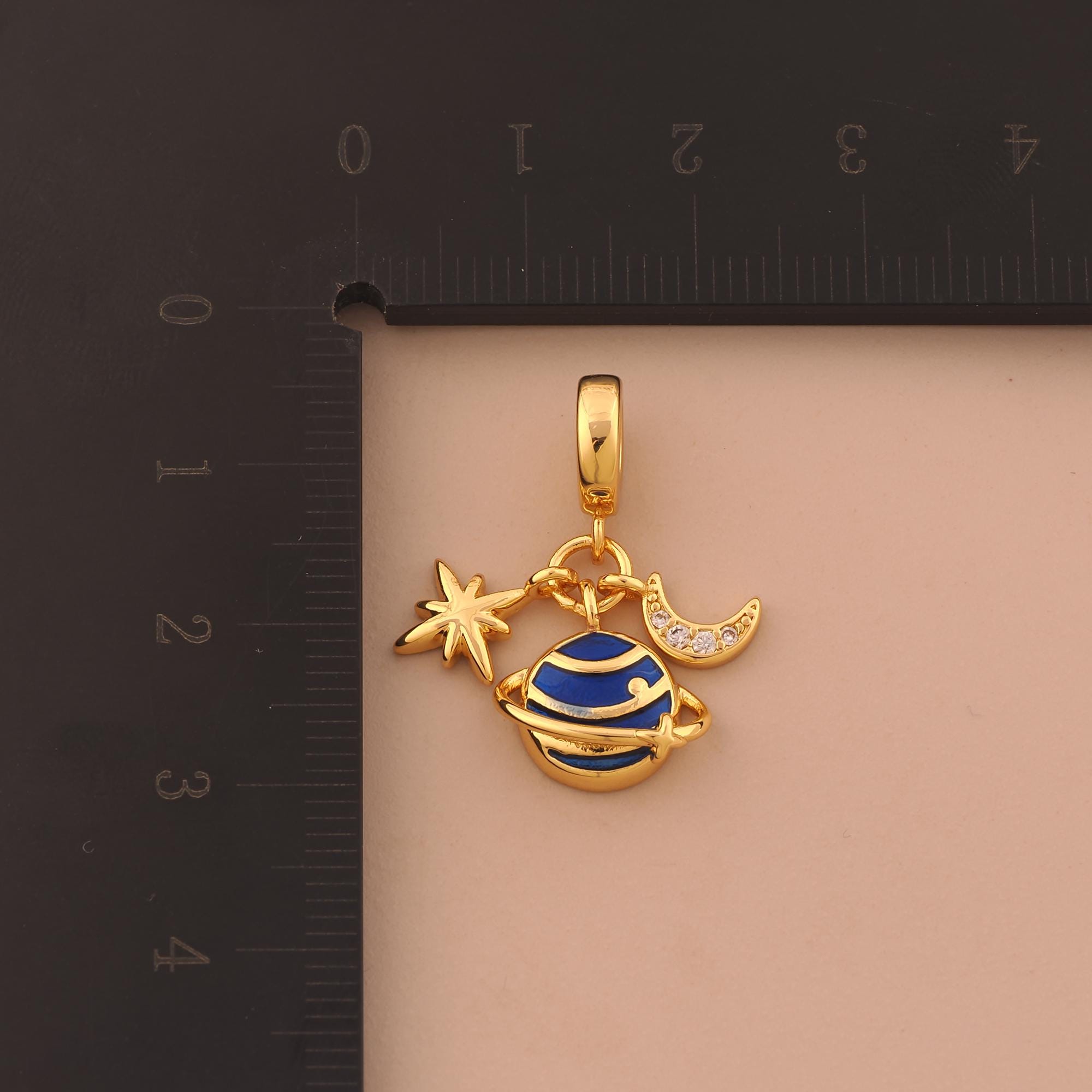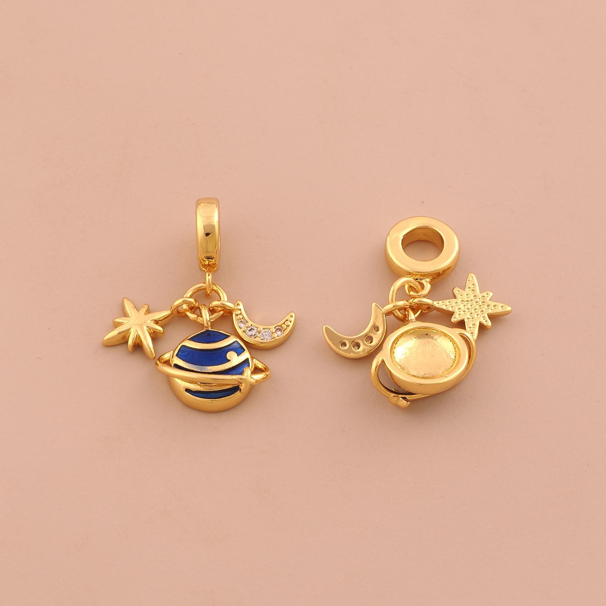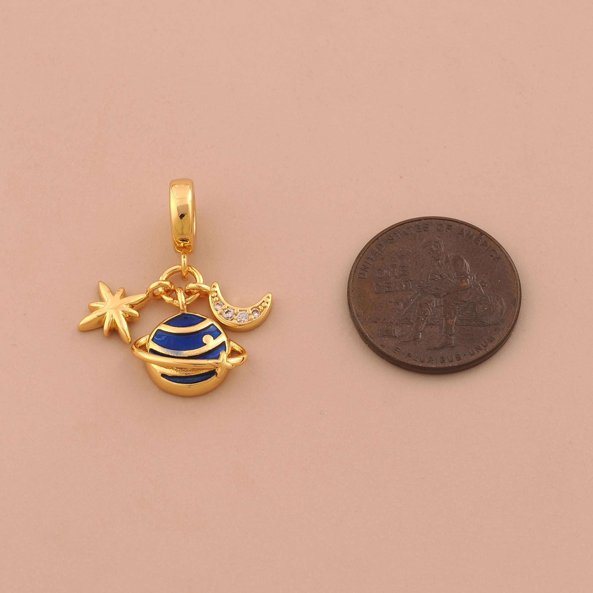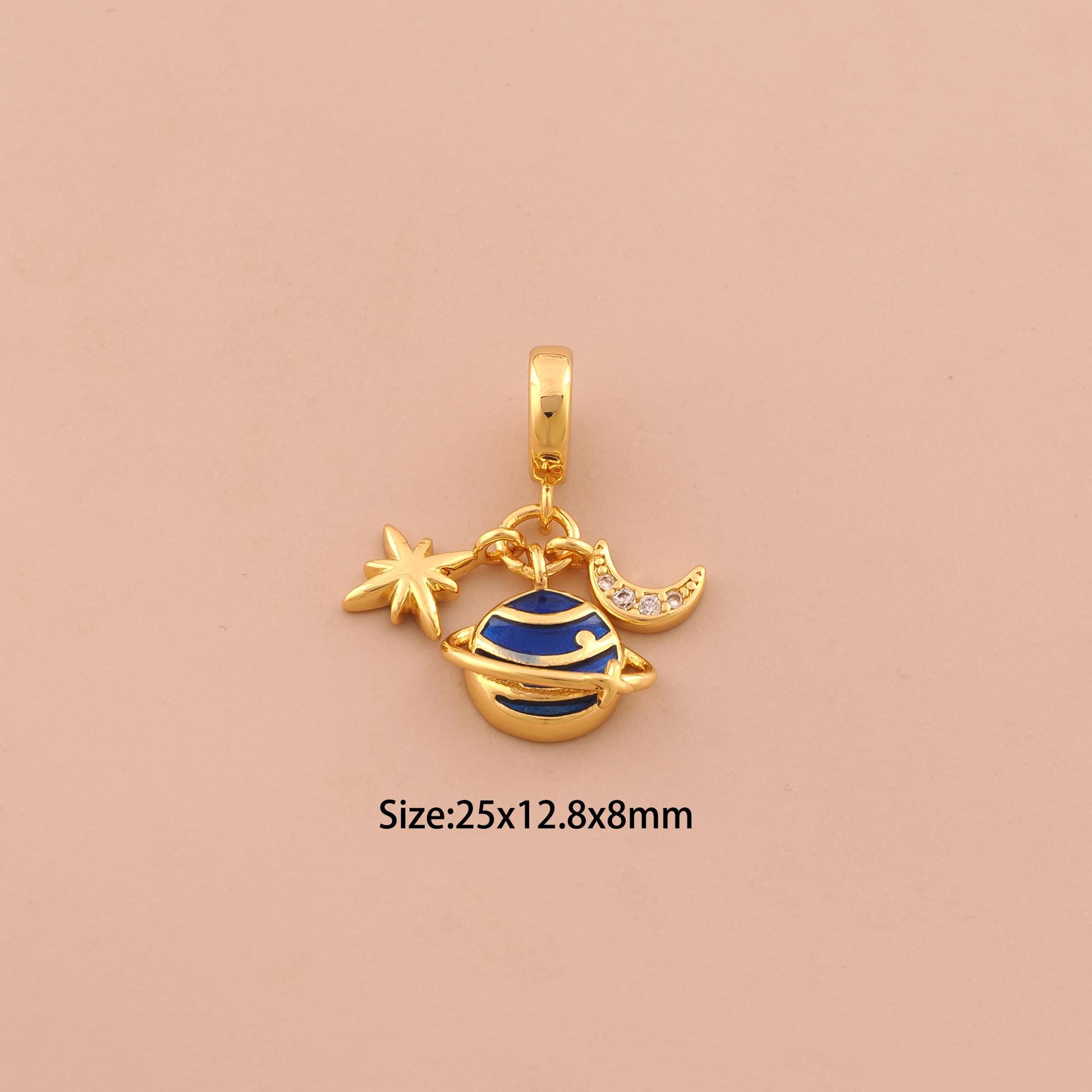18K Gold Saturn Charms,Enamel Crescent Moon Charms Pendants,CZ Pave Polaris Charm for DIY Jewelry Making Supply