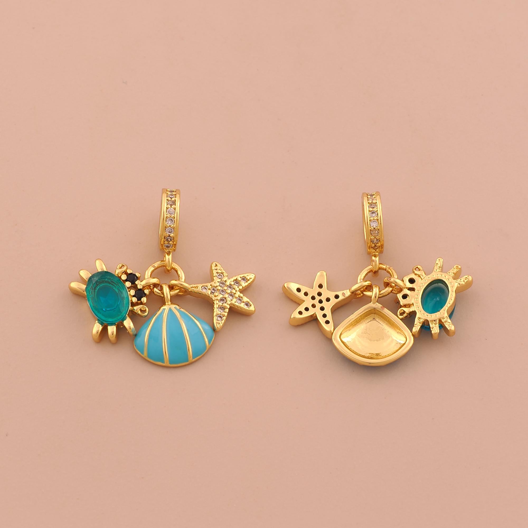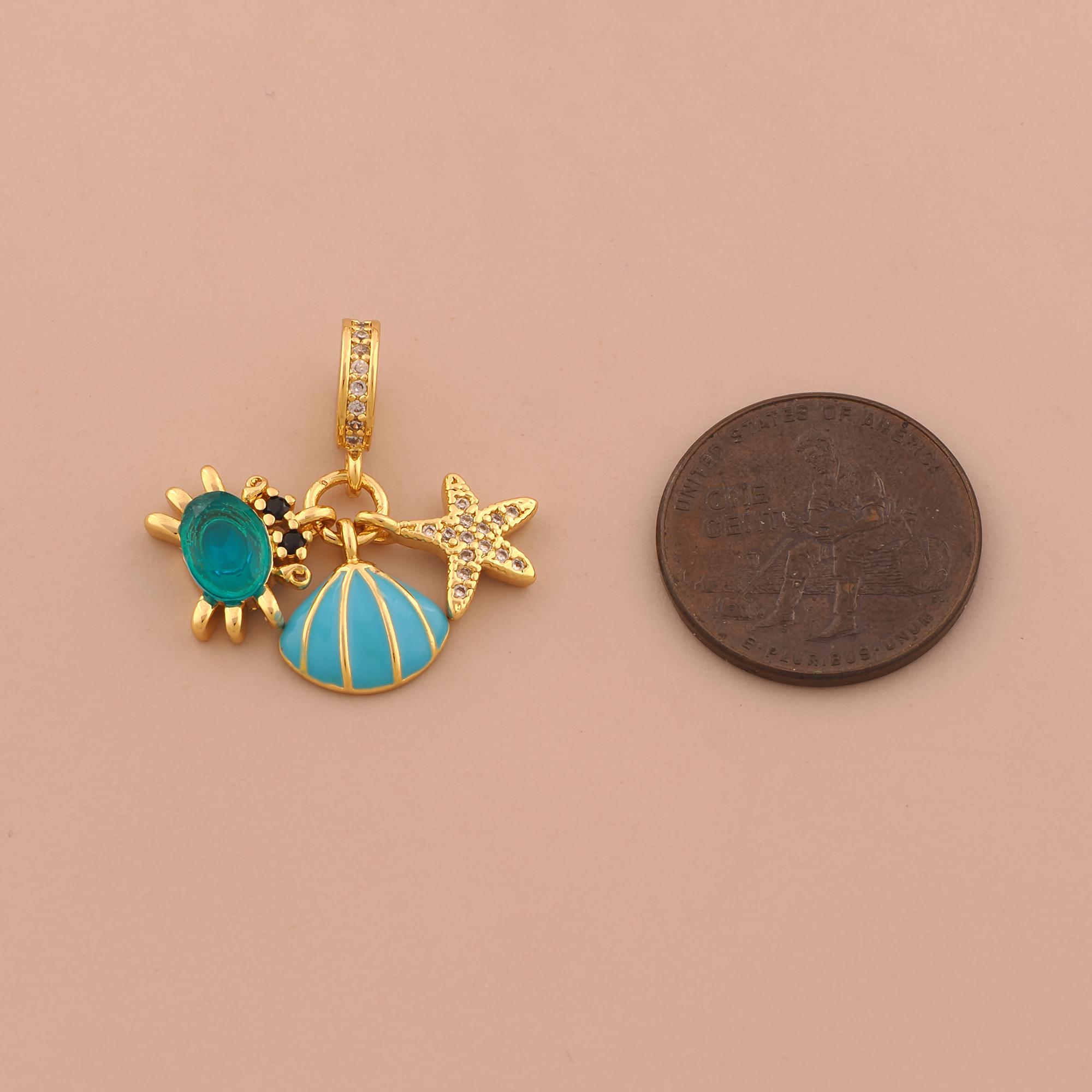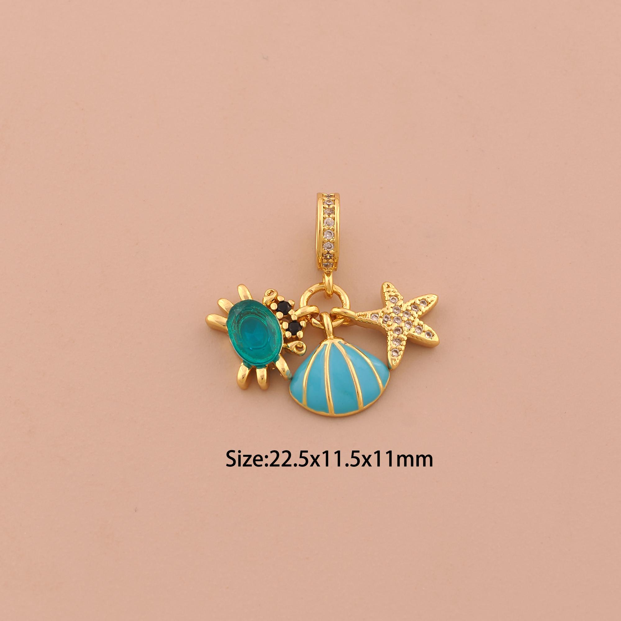 18K Gold Crab Charms,Enamel Shell Charms Pendants,CZ Pave Starfish Charm for DIY Jewelry Making Supply