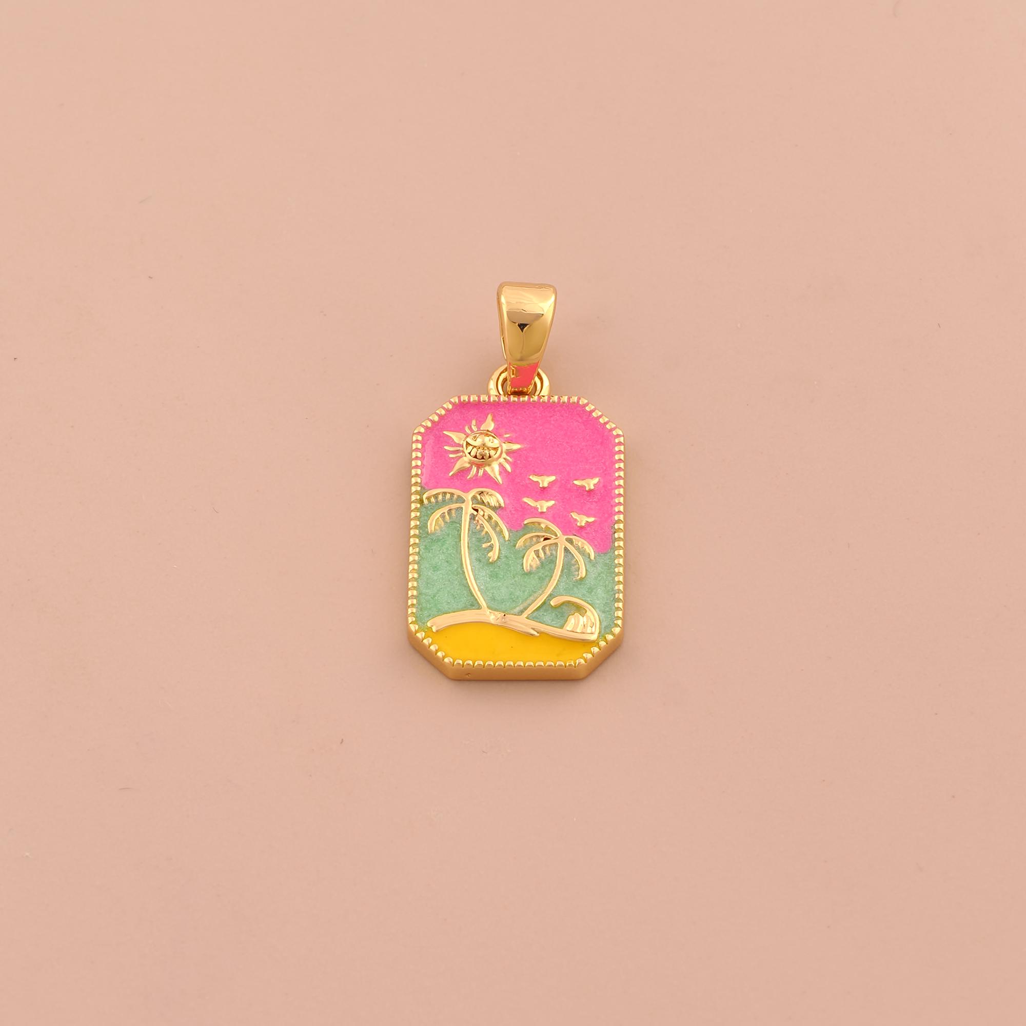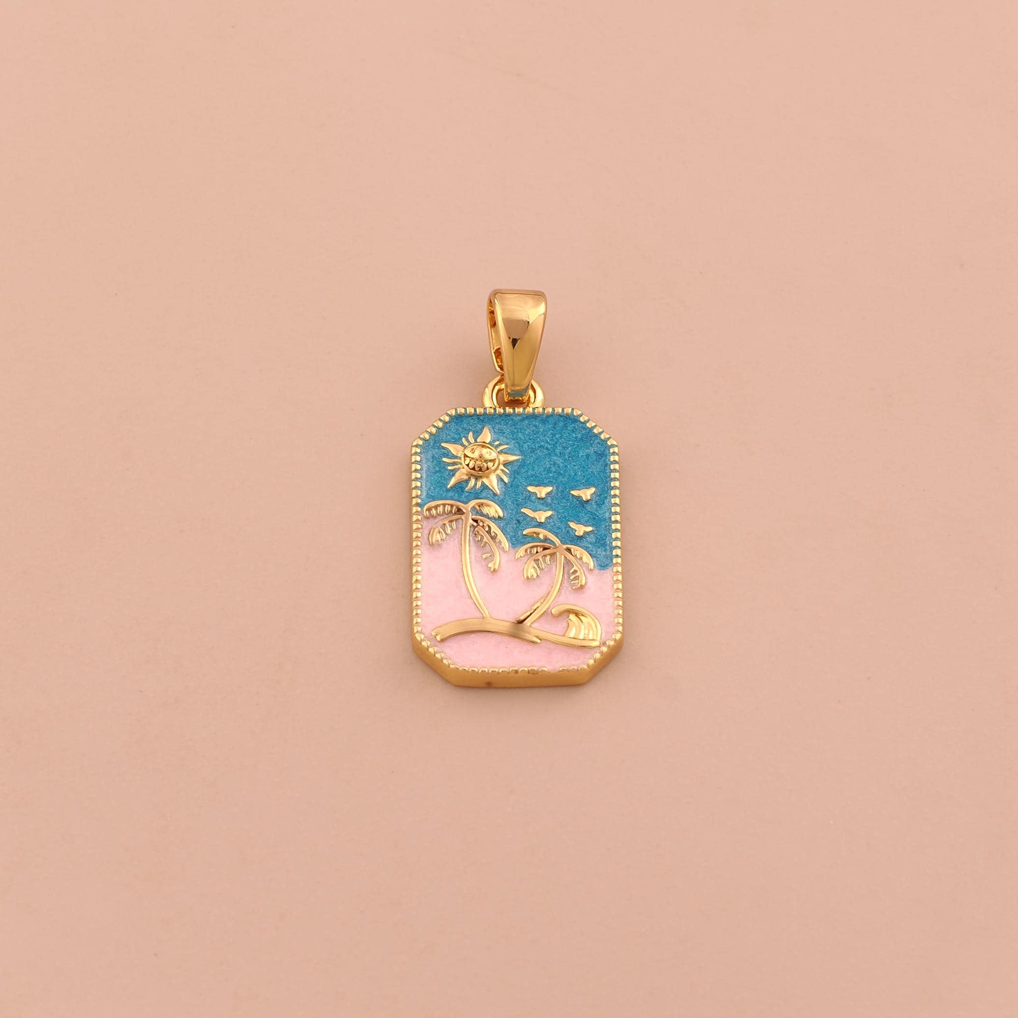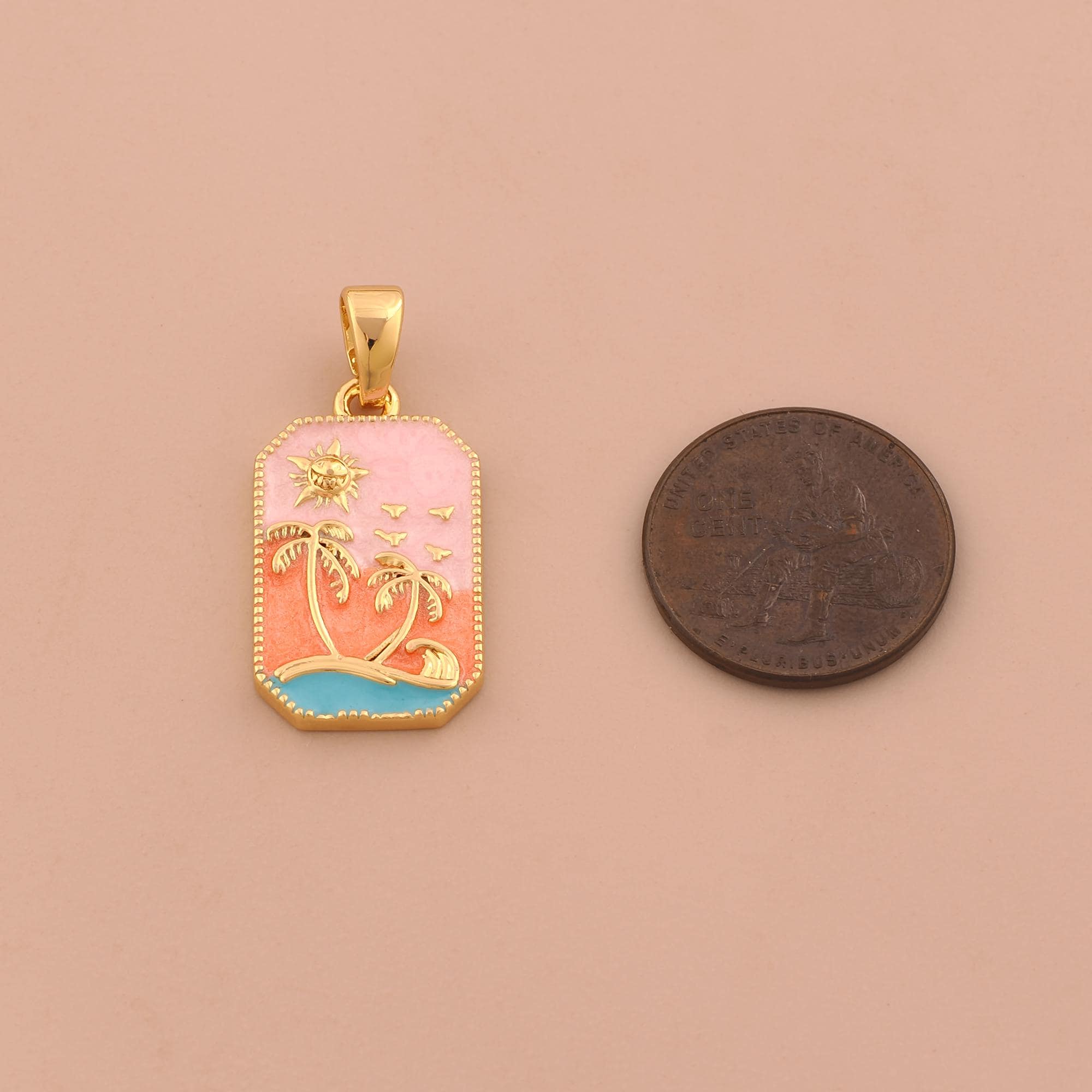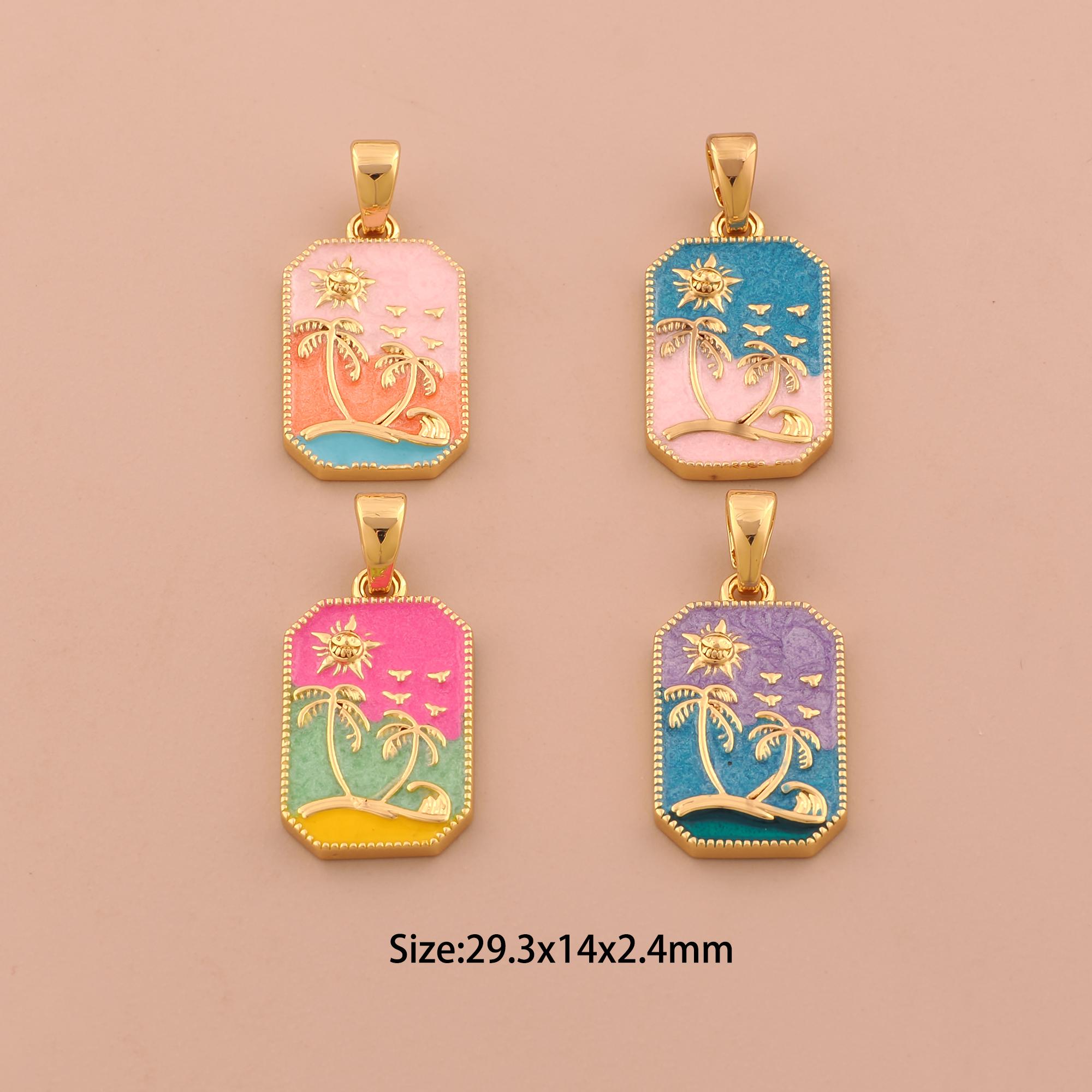 18K Gold Beach Charms,Enamel Coconut Tree Charms Pendants,Palm Tree Charm for DIY Jewelry Making Supply