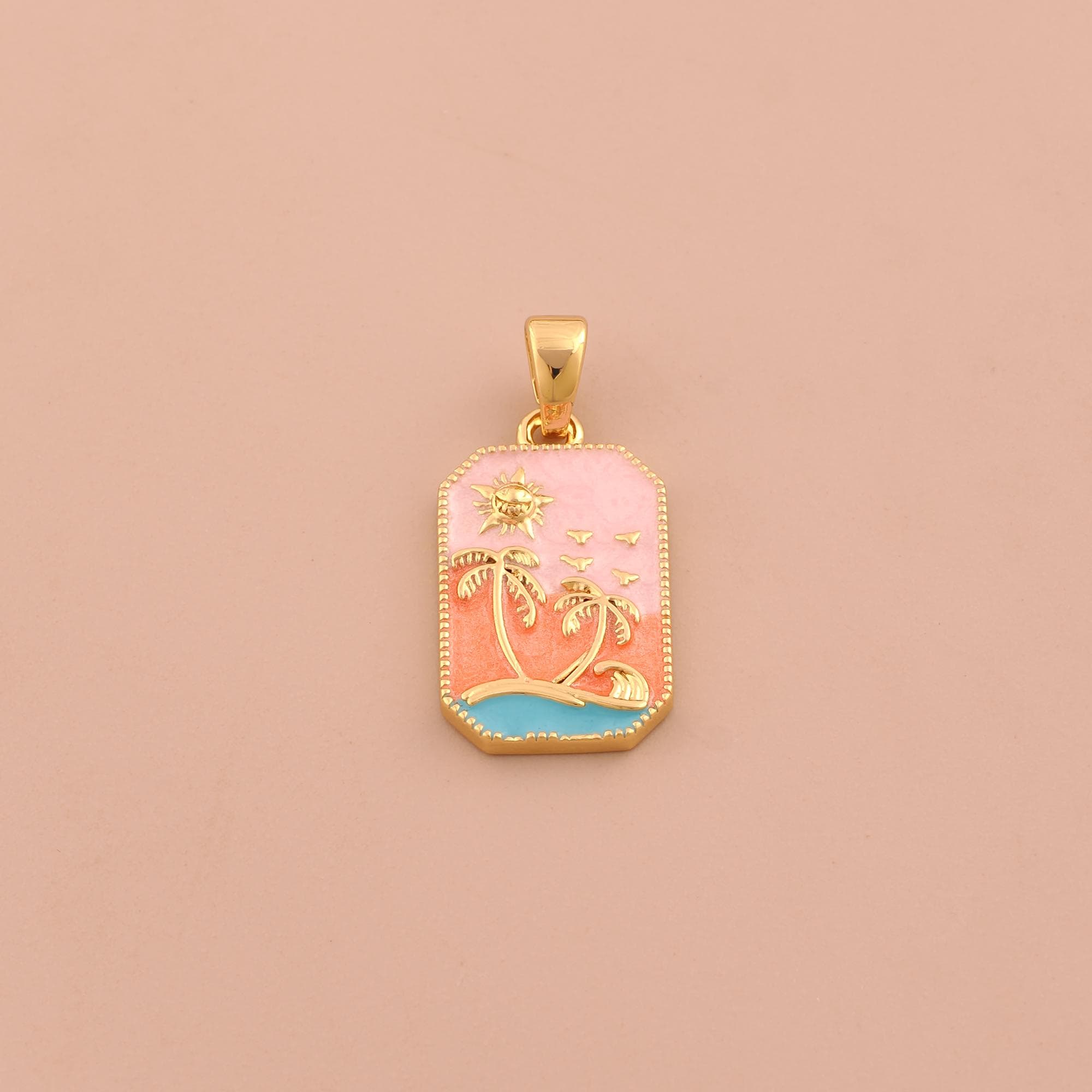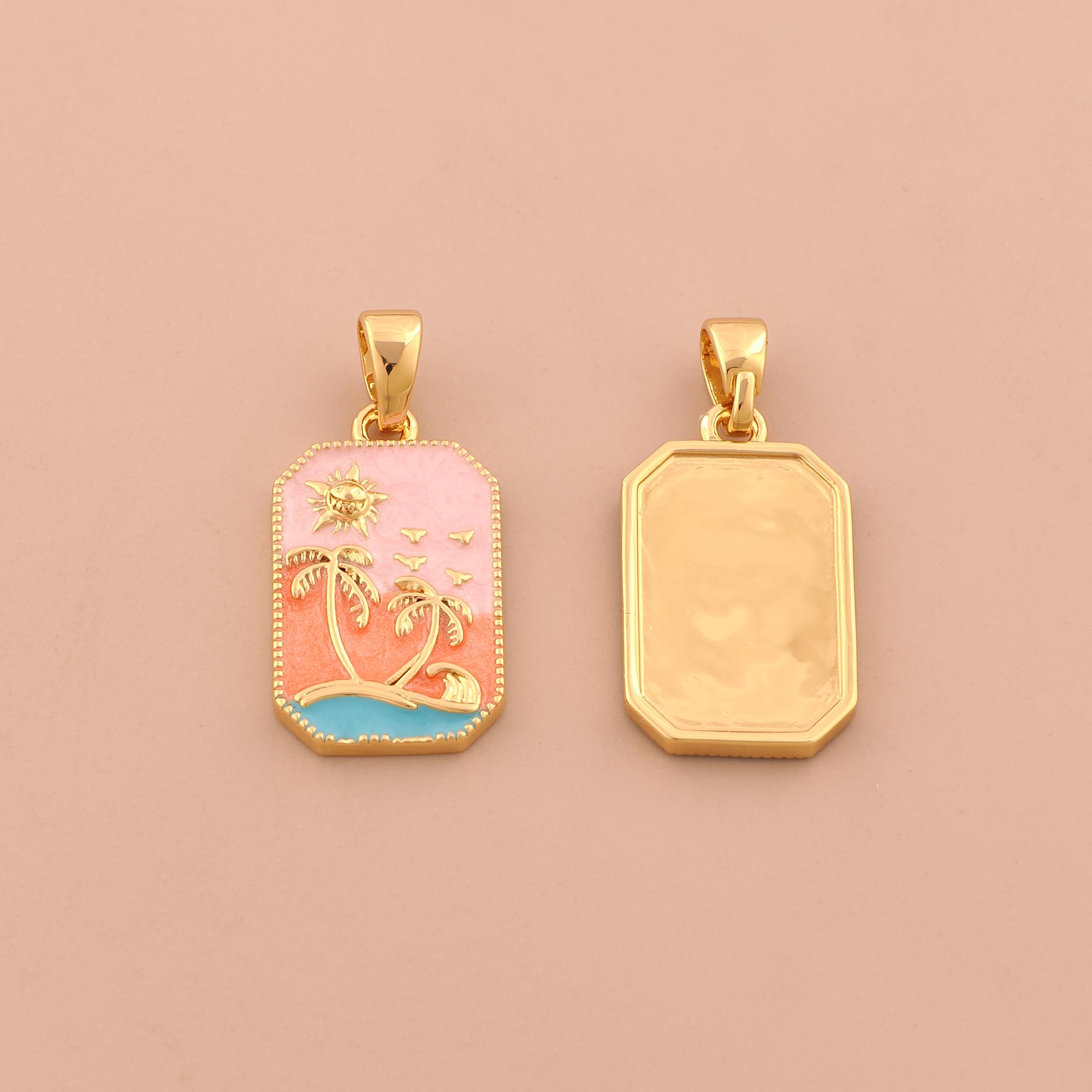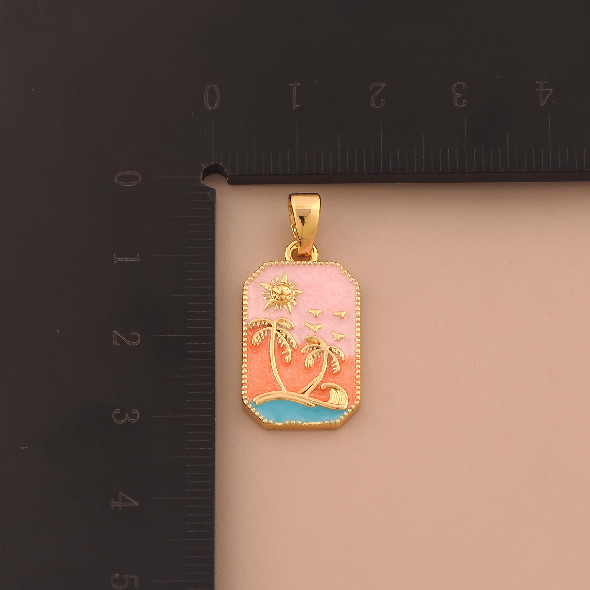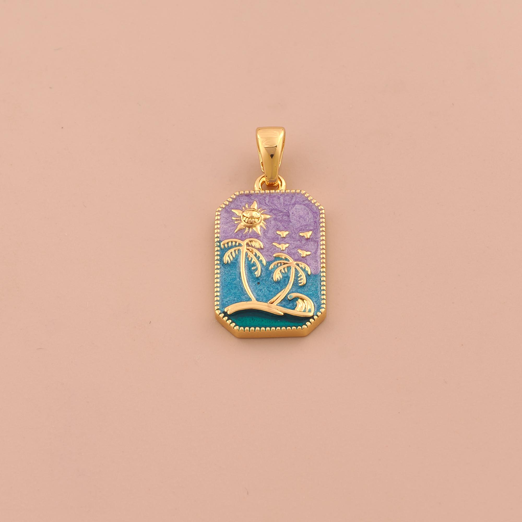18K Gold Beach Charms,Enamel Coconut Tree Charms Pendants,Palm Tree Charm for DIY Jewelry Making Supply