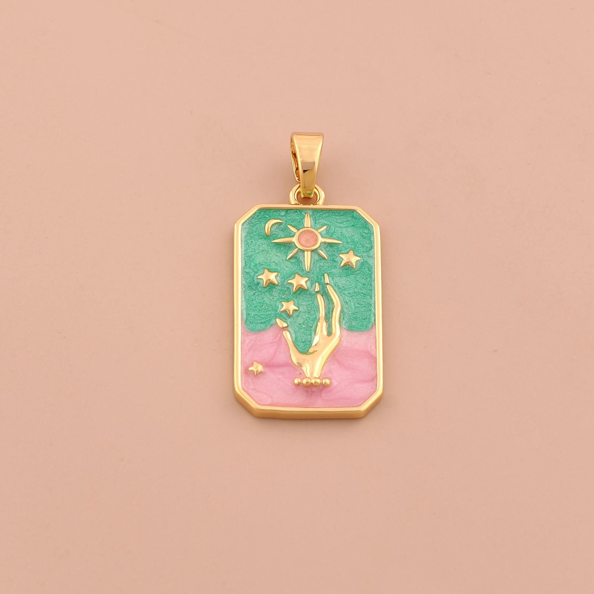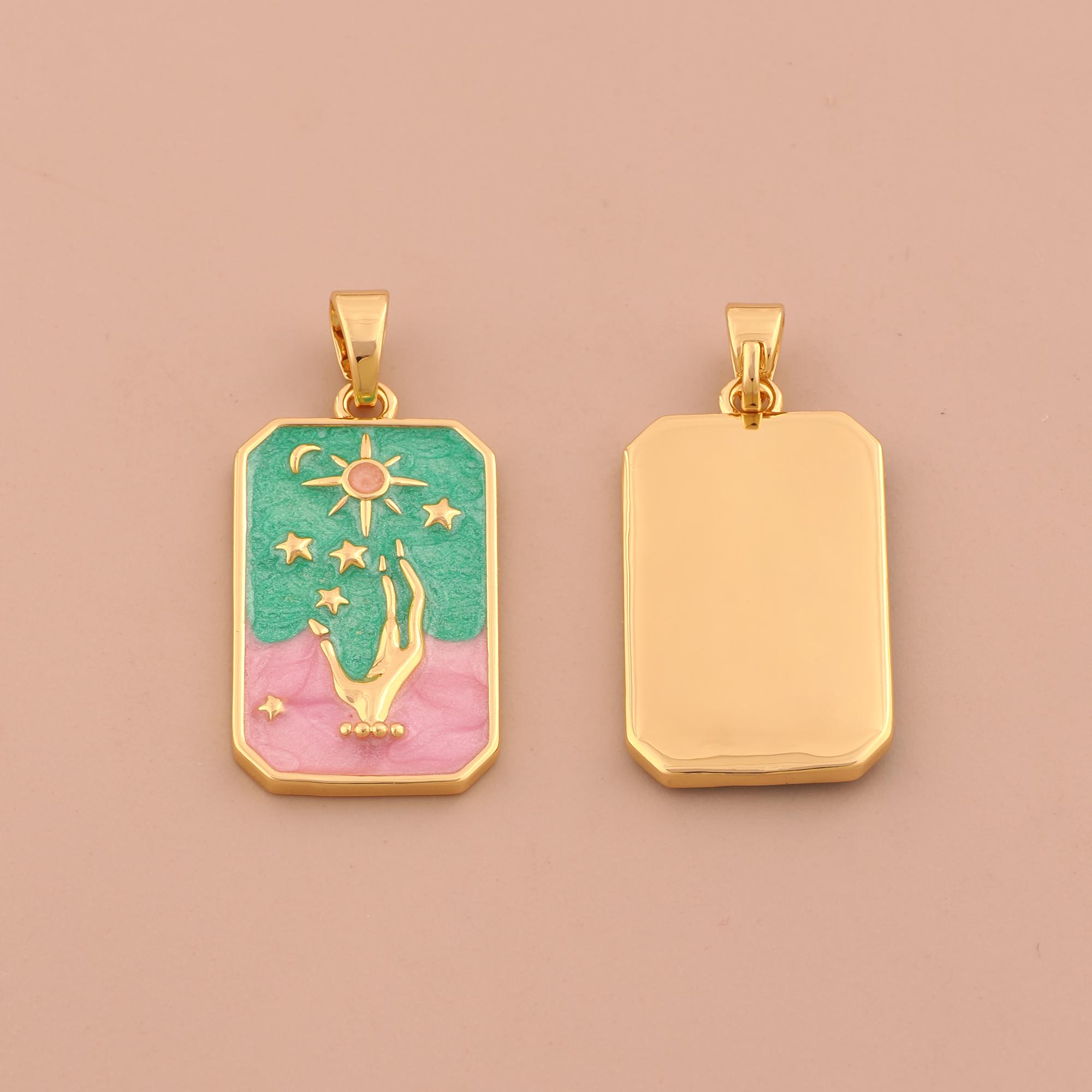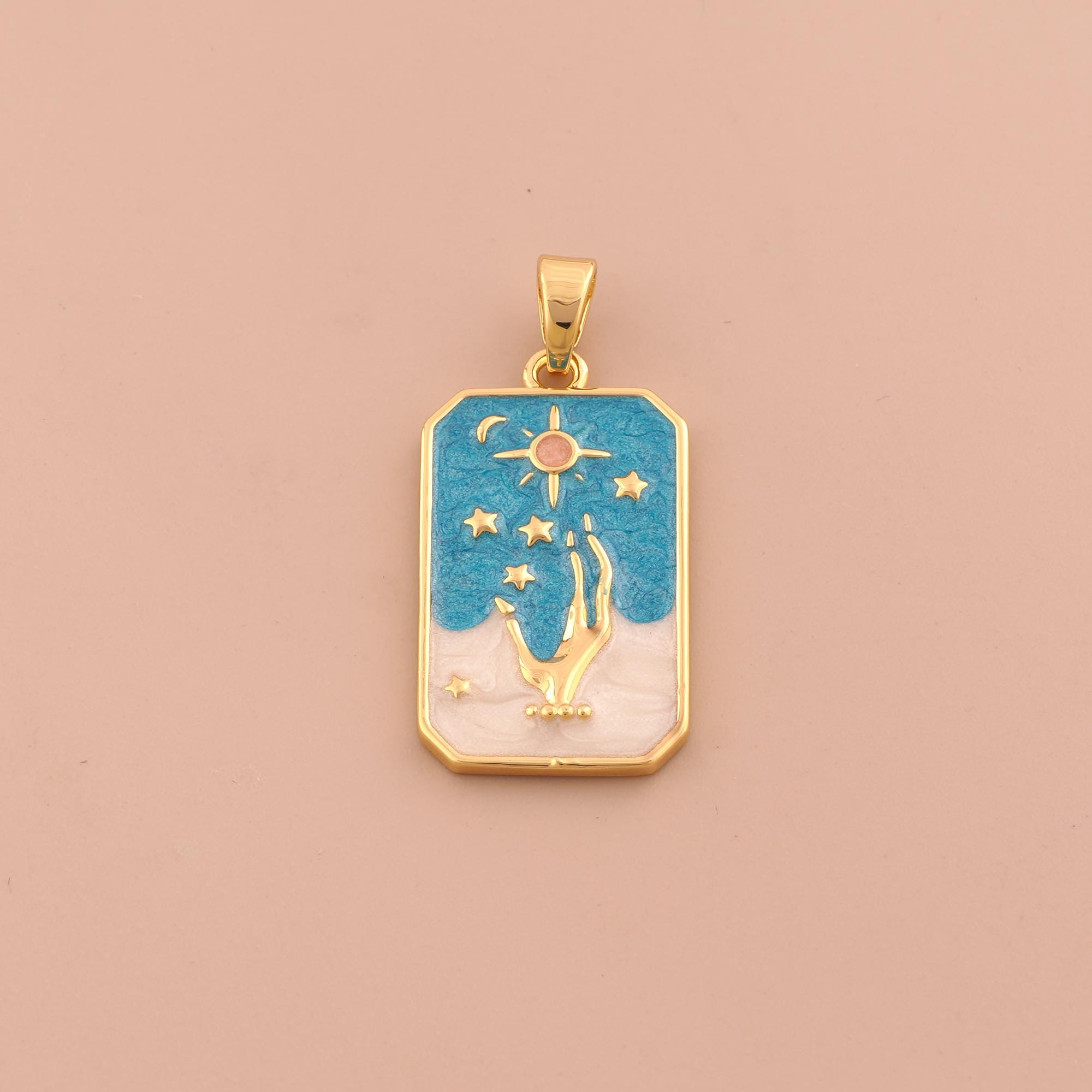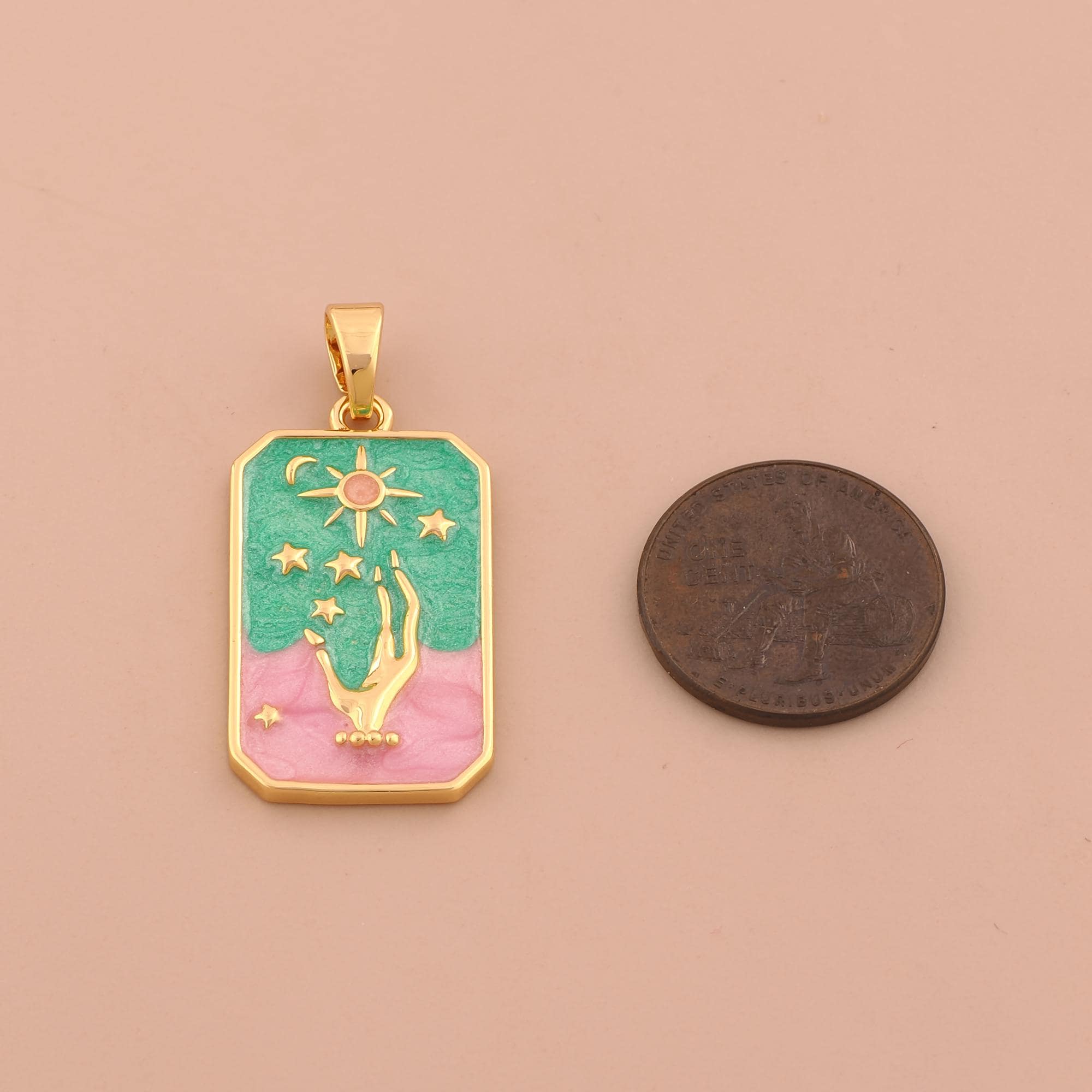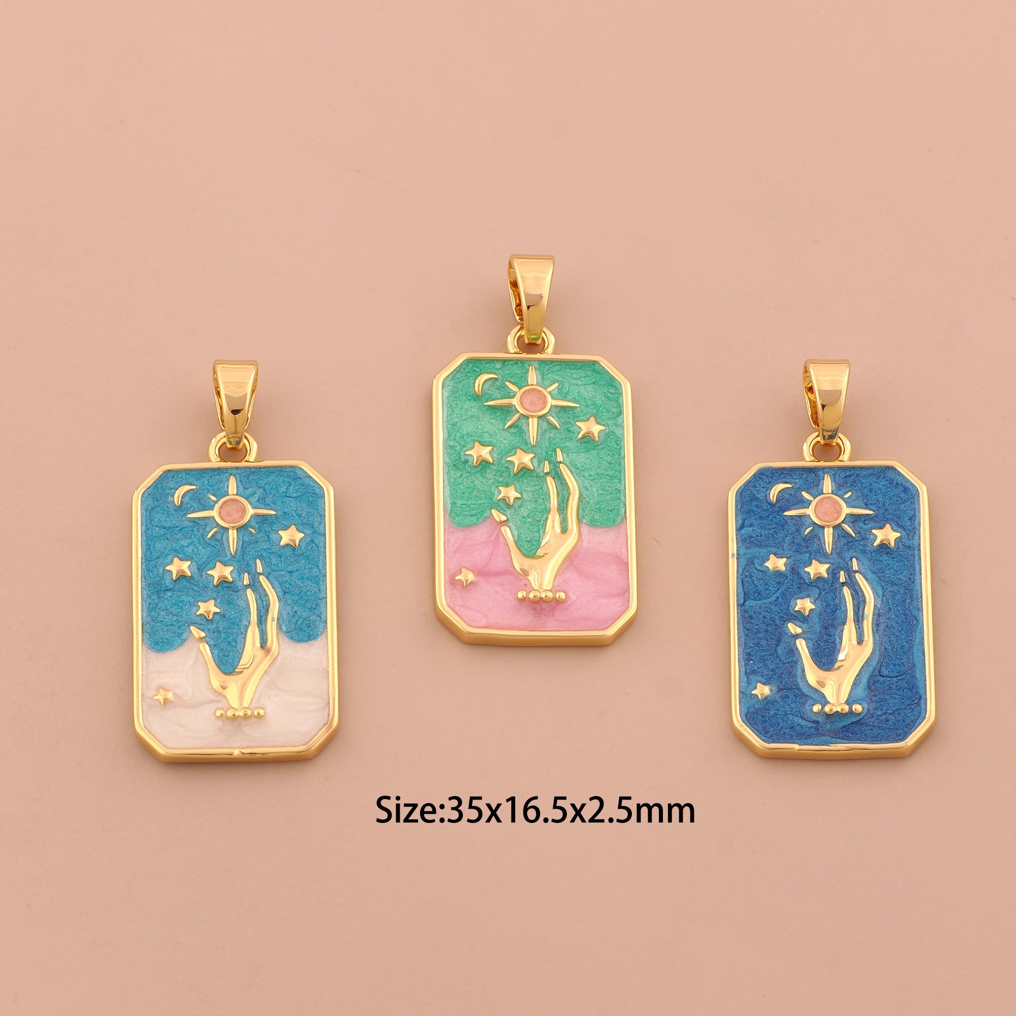 18K Gold Sun Moon Star Charms,Enamel Celestial Charms Pendants,Hand Charm for DIY Jewelry Making Supply