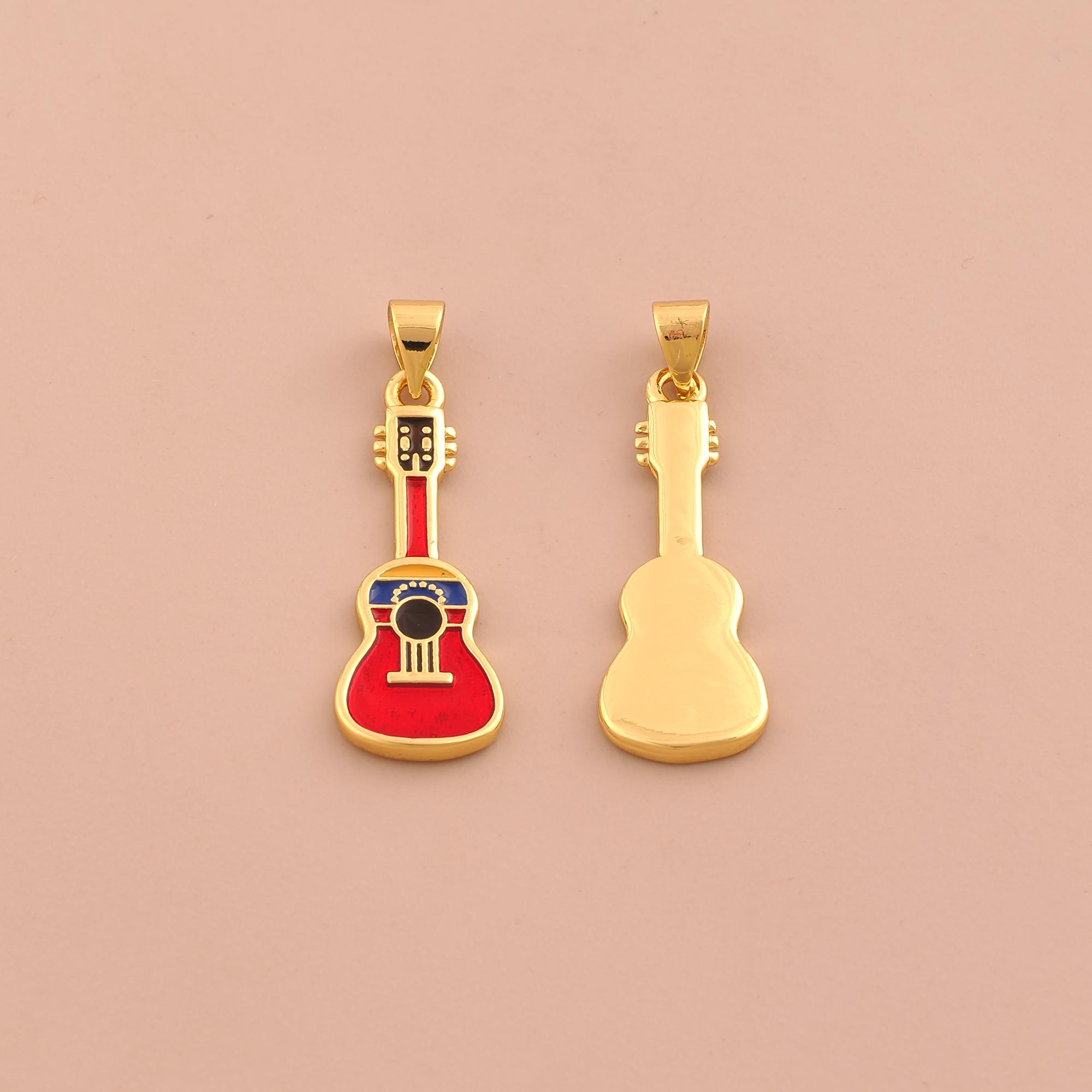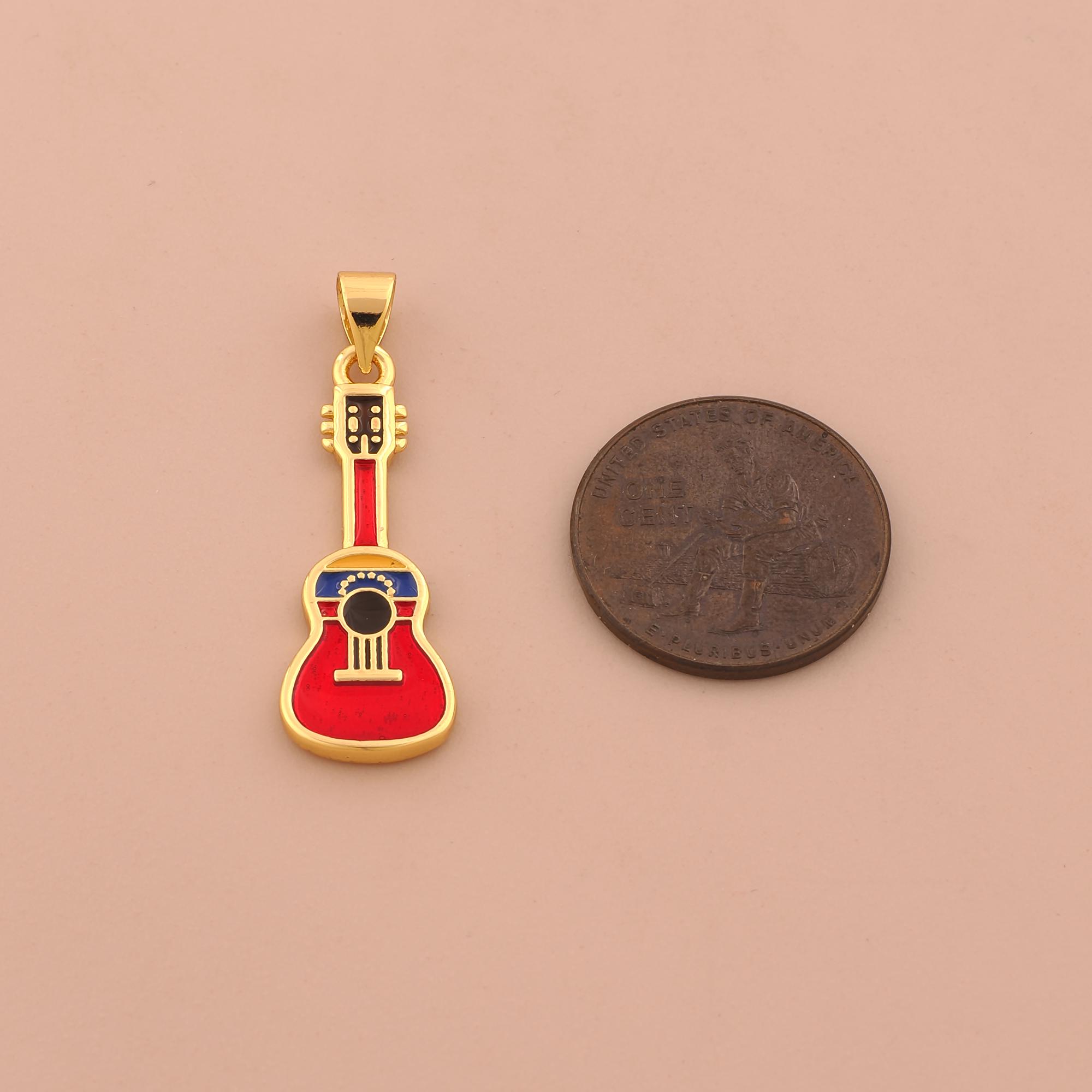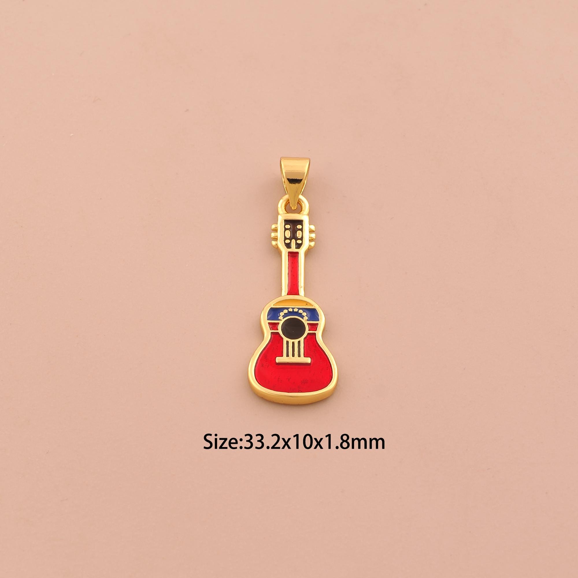 18K Gold Guitar Charms,Enamel Guitar Charms Pendants,Guitar Charm for DIY Jewelry Making Supply