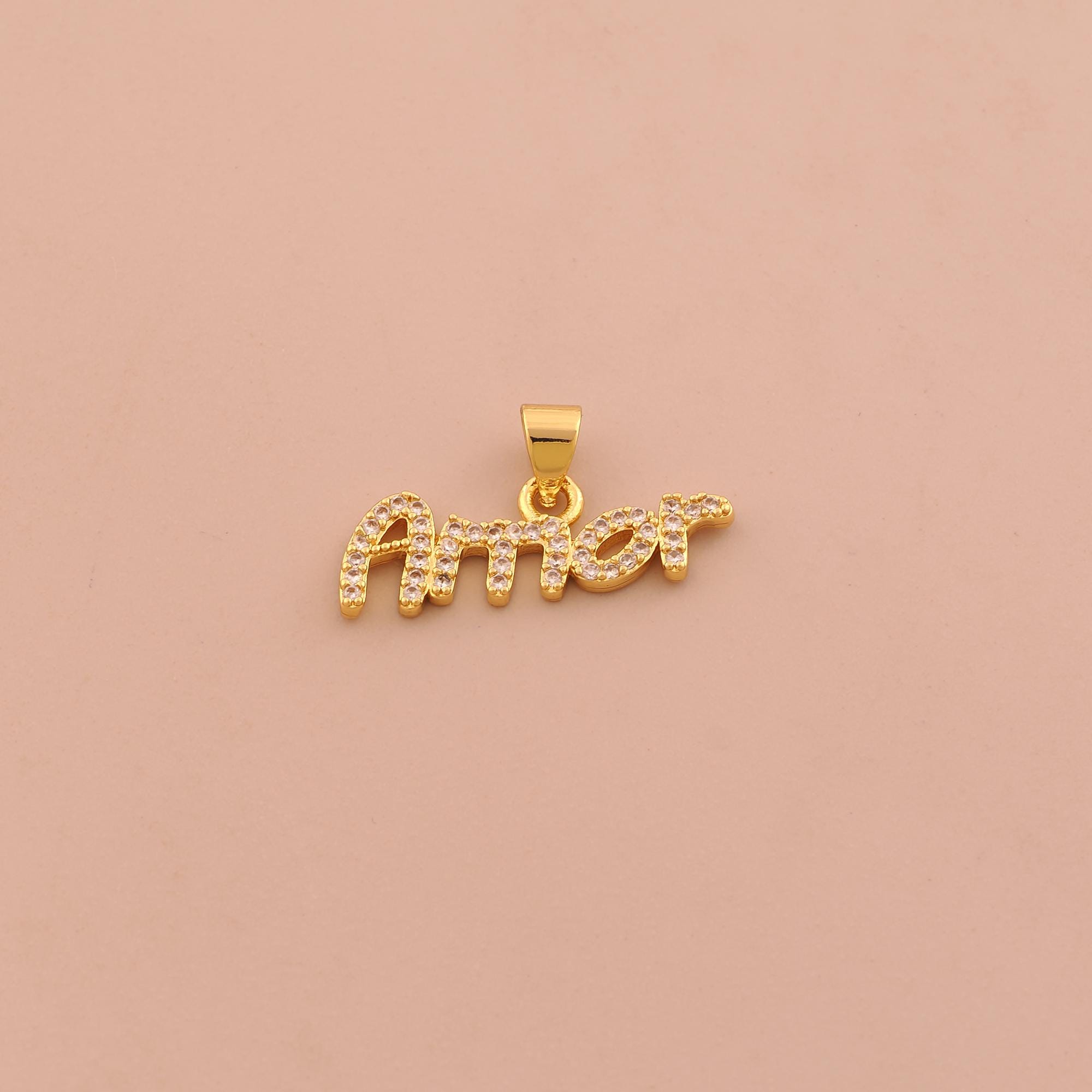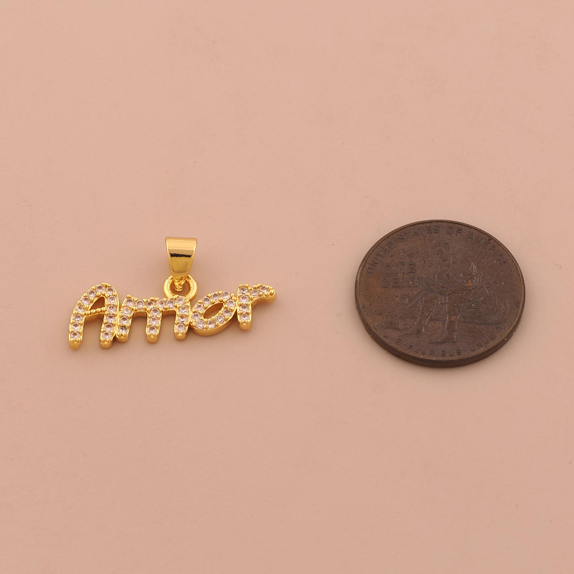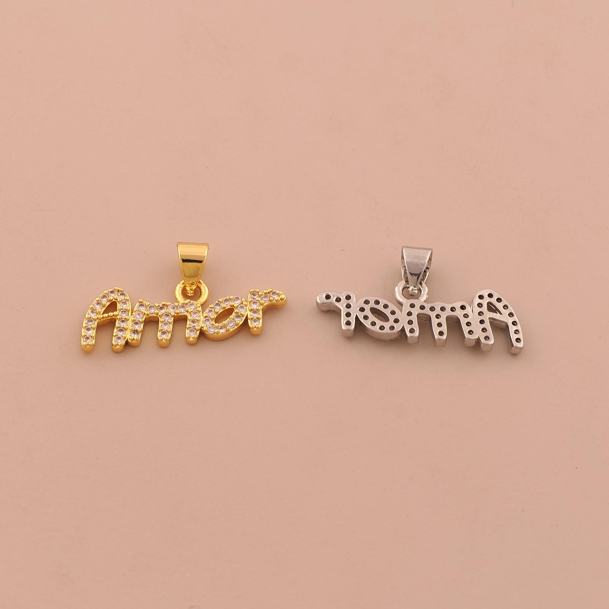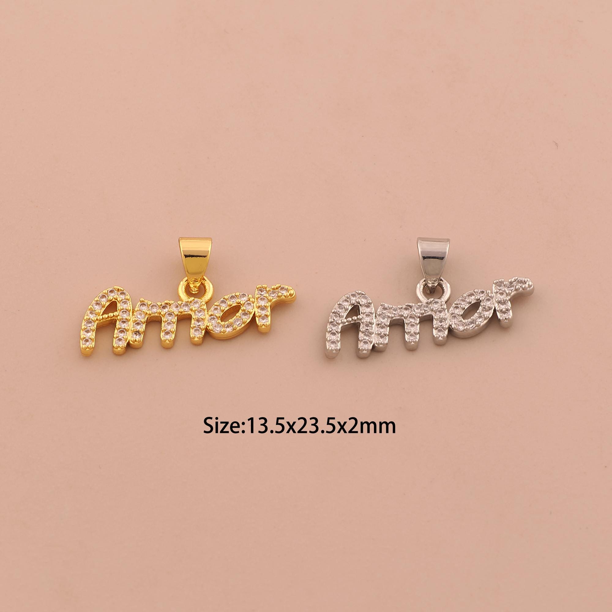 18K Gold Amor Charms,CZ Pave Letter Charms Pendants,Amor Charm for DIY Jewelry Making Supply