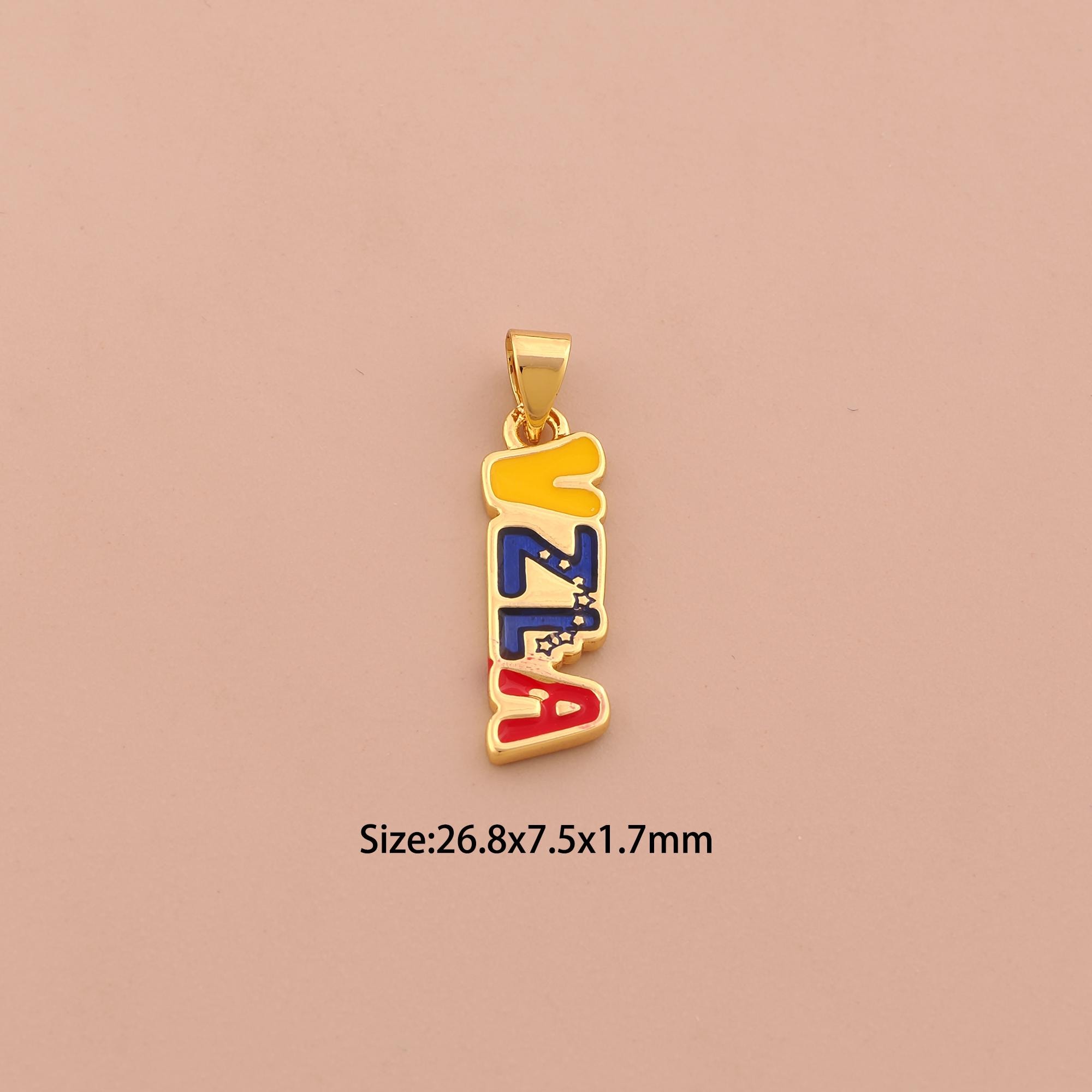 18K Gold Venezuela Charms,Enamel VZLA Charms Pendants,Letter Charm for DIY Jewelry Making Supply